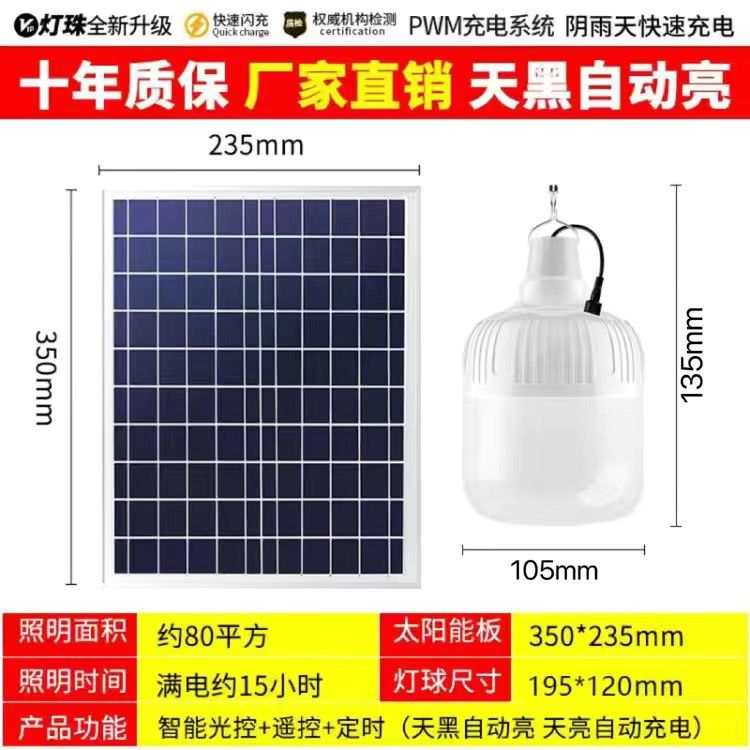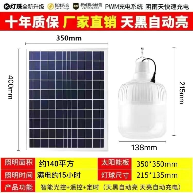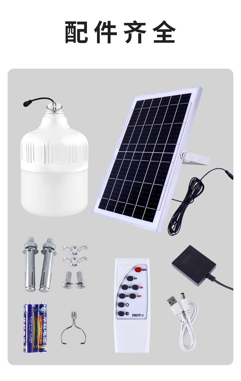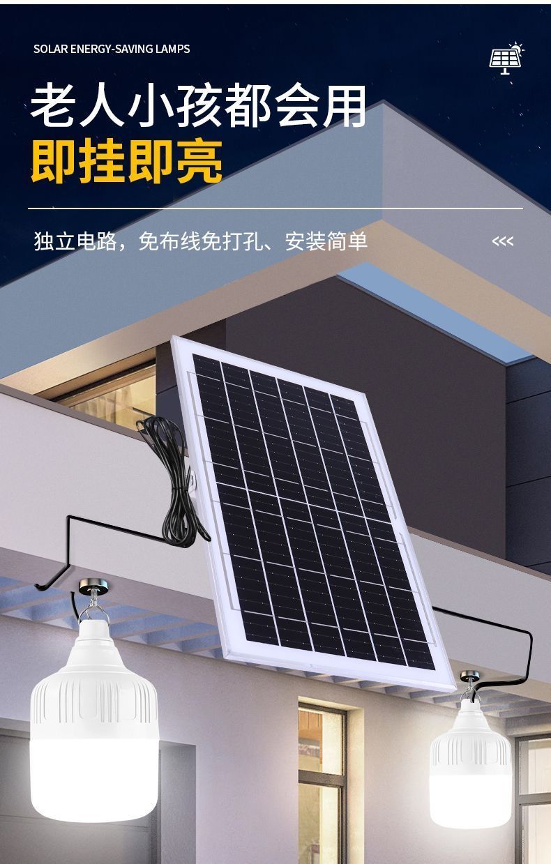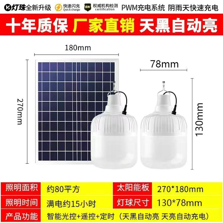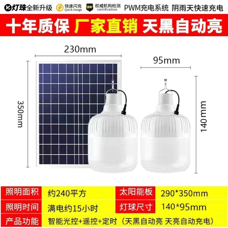 太阳能照明灯超亮LED球泡灯遥控家用应急庭院摆摊房间光控灯室内