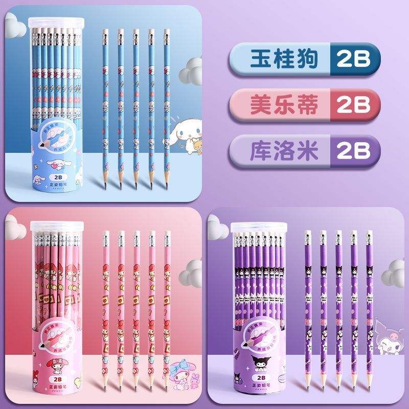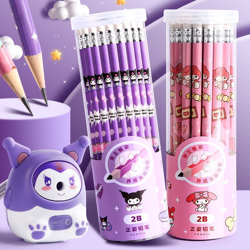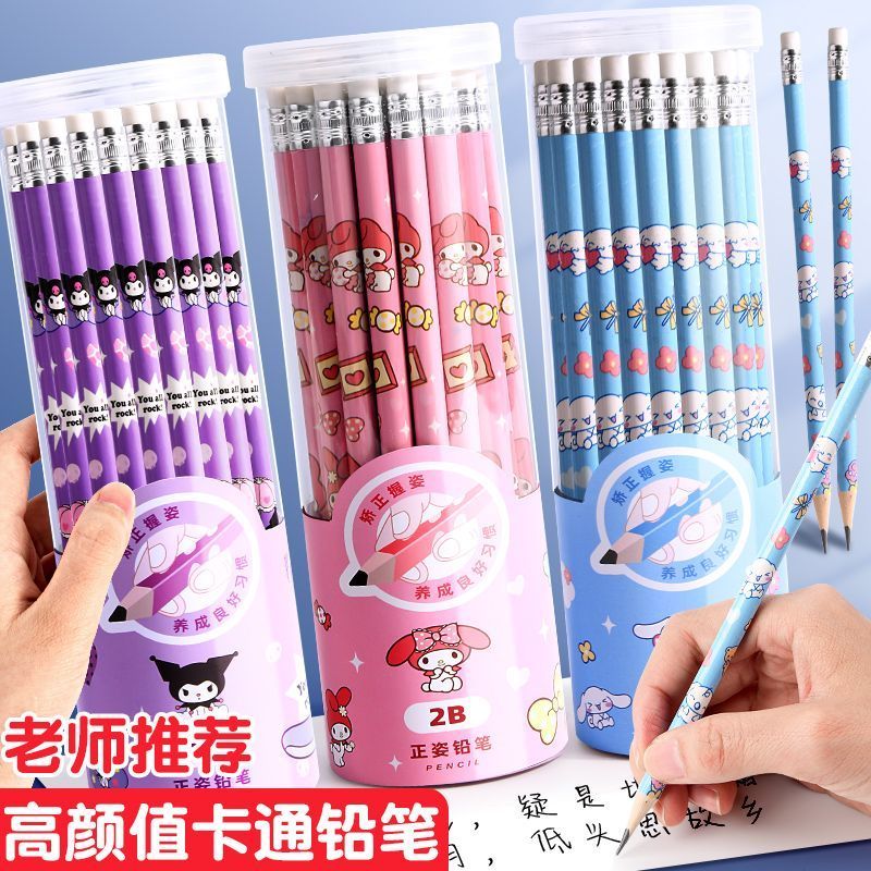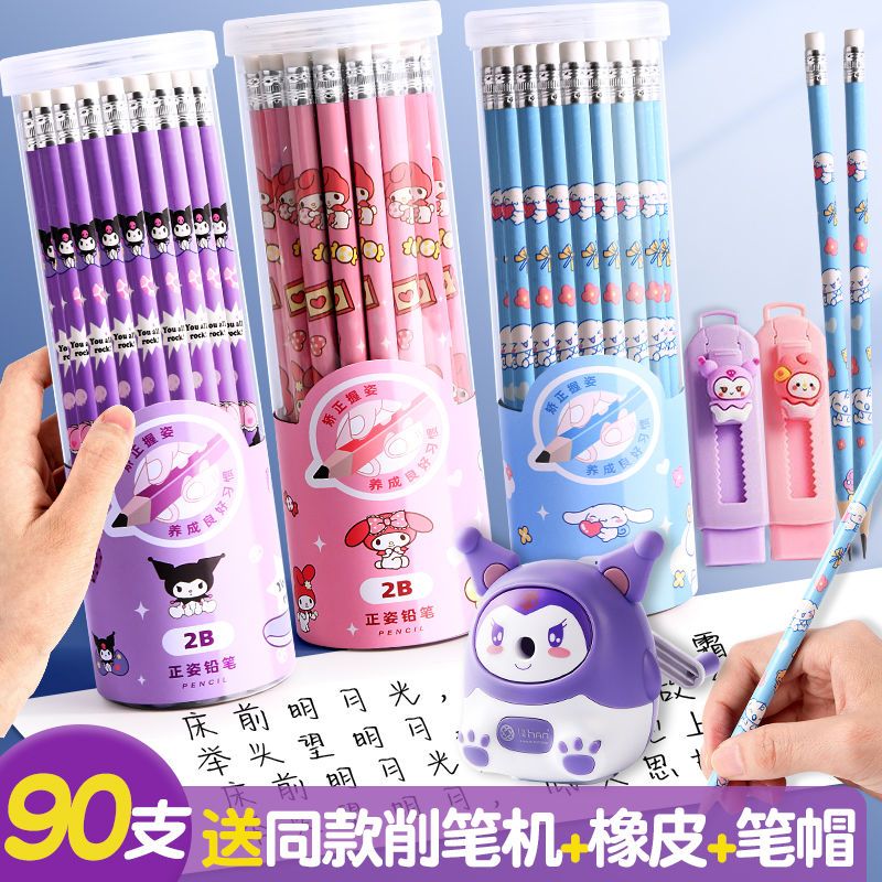 库洛米铅笔小学生专用书写三丽鸥桶装盒装儿童考试2b卡通文具套装