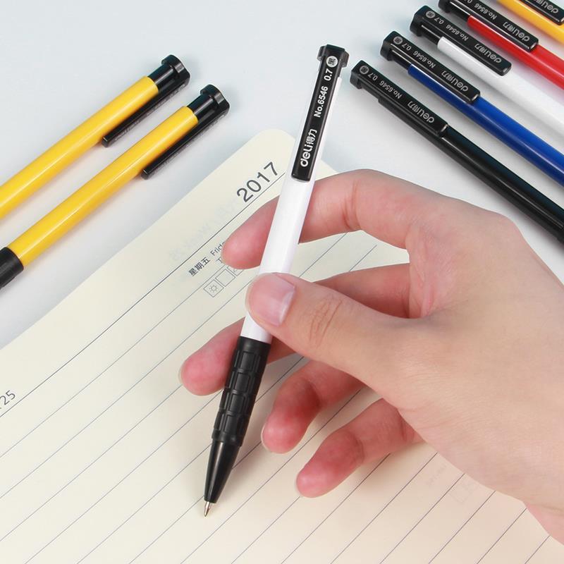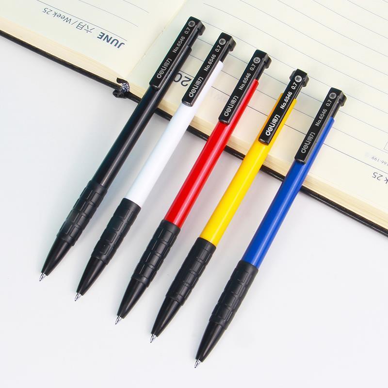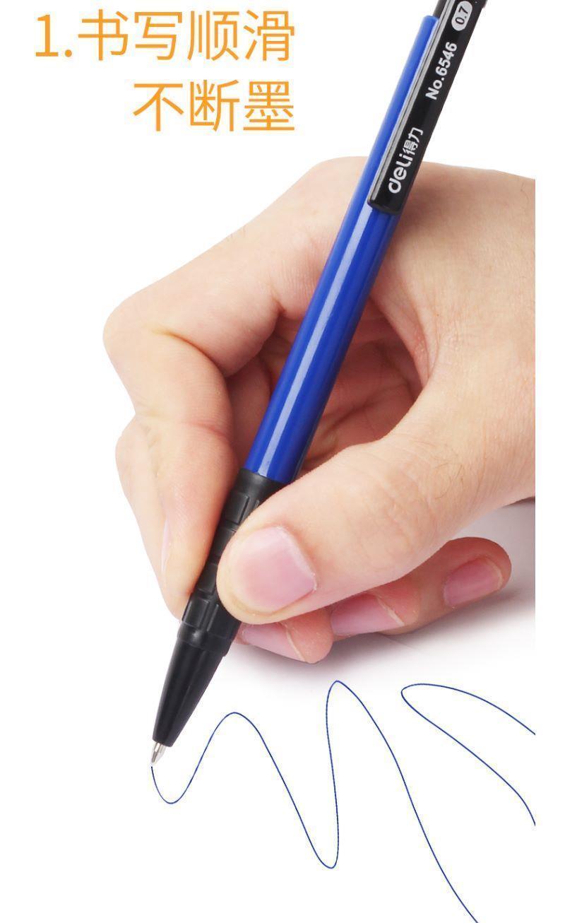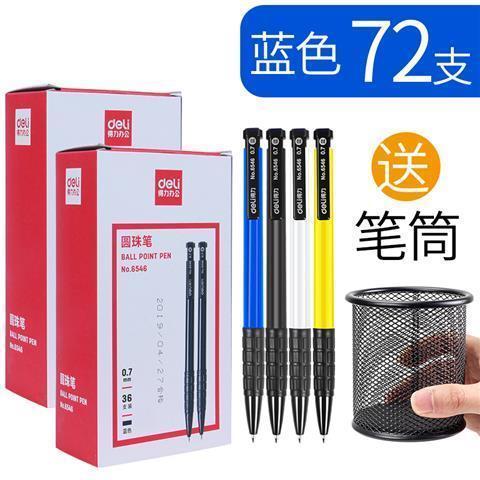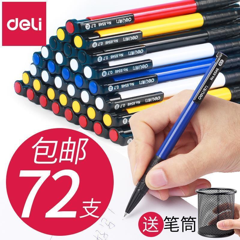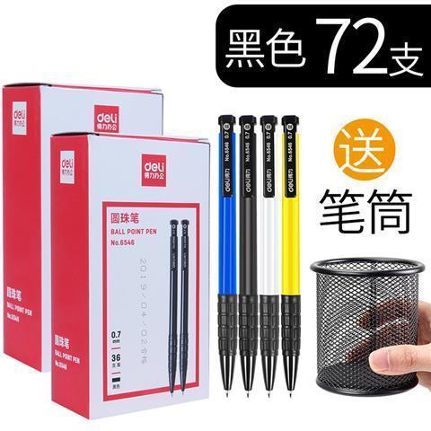 得力圆珠笔0.7mm蓝色按压式油笔黑色笔红色笔原子笔学生用中油笔