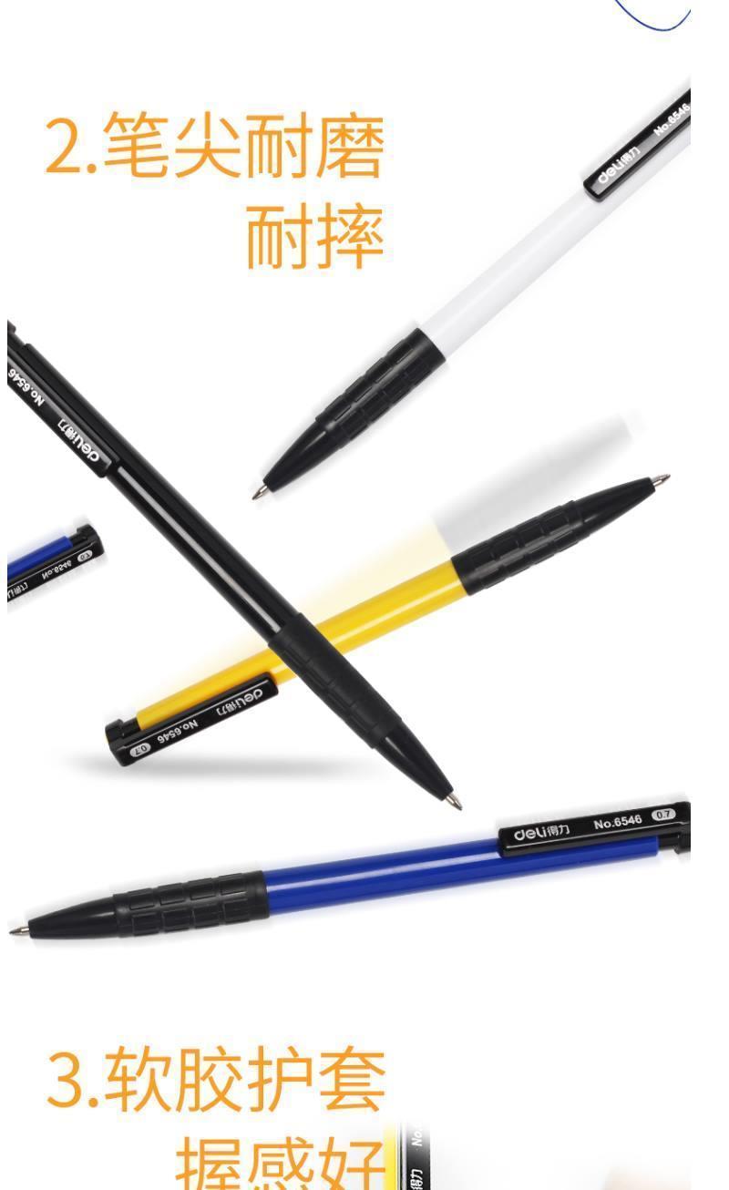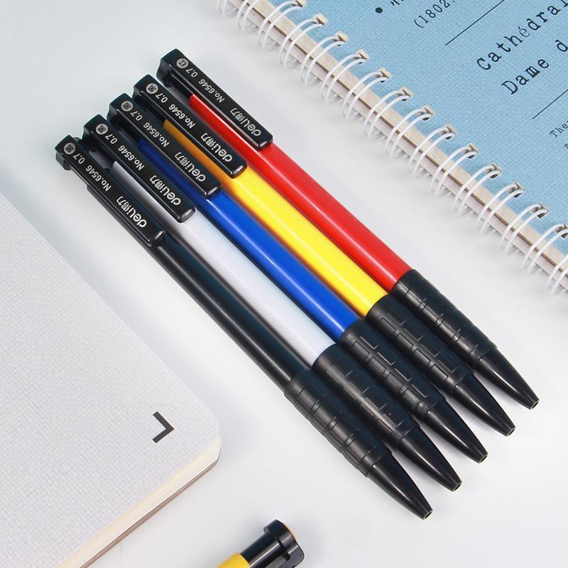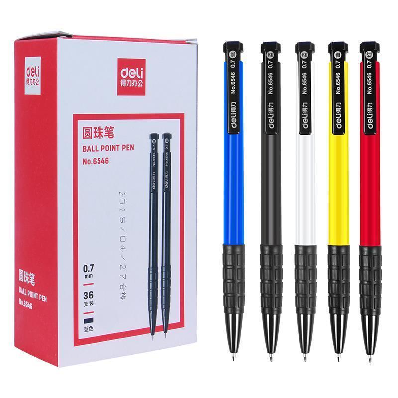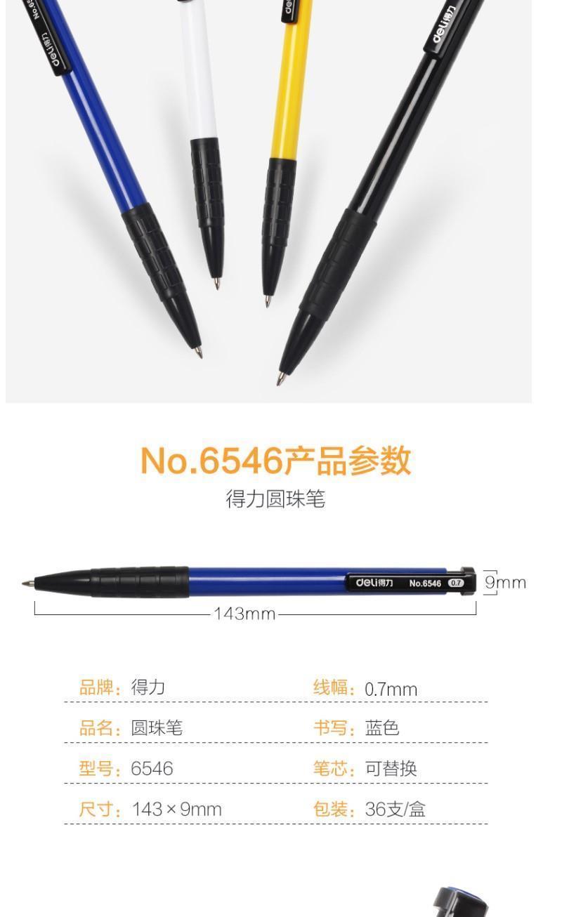 得力圆珠笔0.7mm蓝色按压式油笔黑色笔红色笔原子笔学生用中油笔