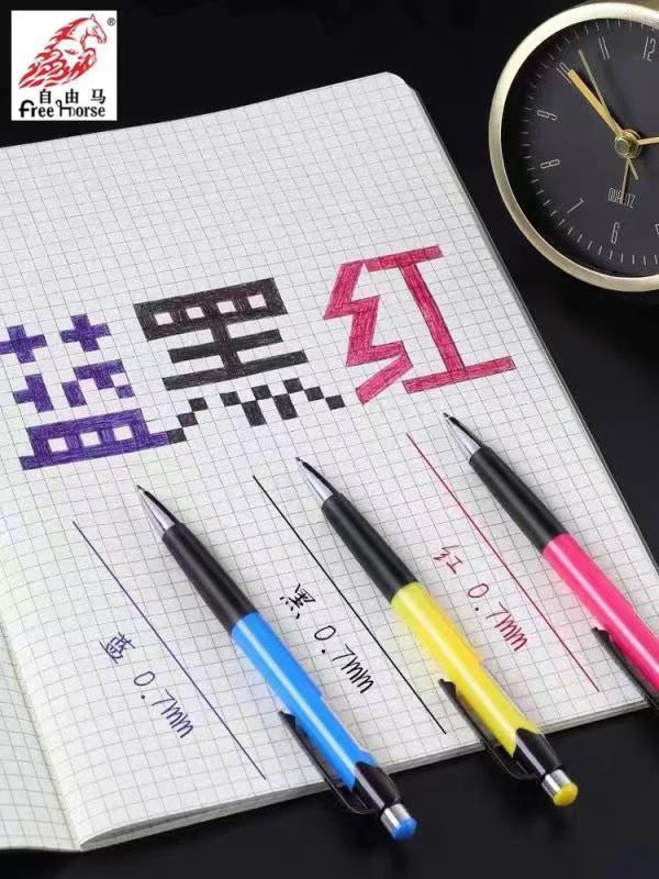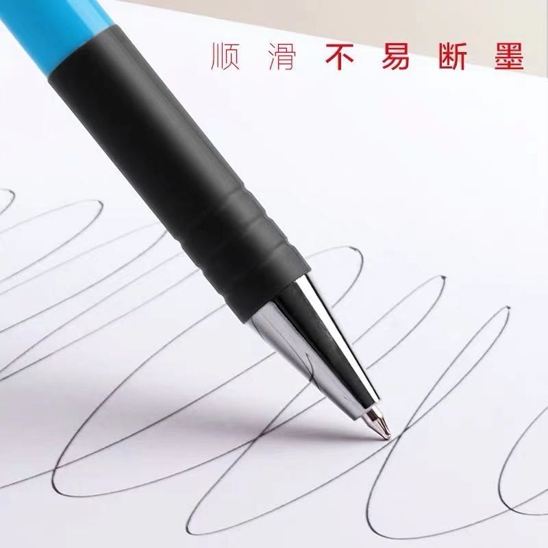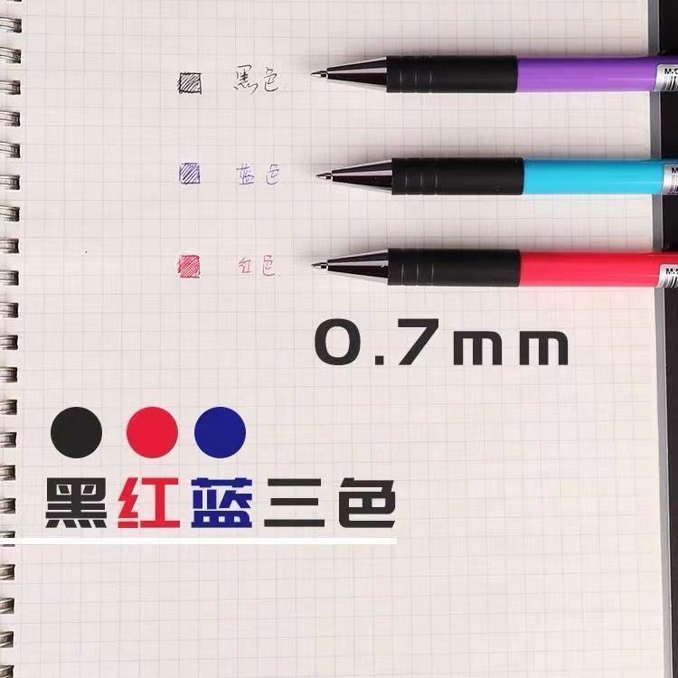 按压圆珠笔批发黑蓝笔芯0.7油笔大容量笔ins高颜值学生办公按动笔