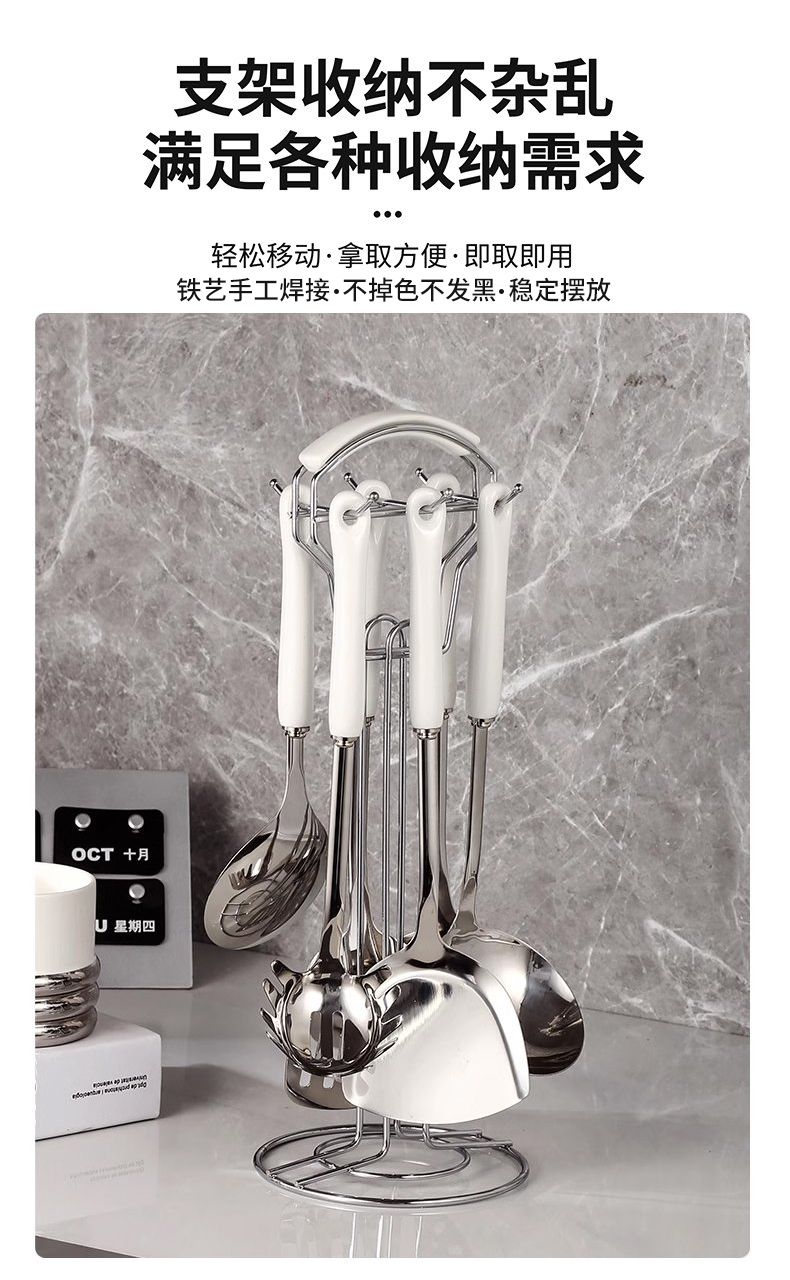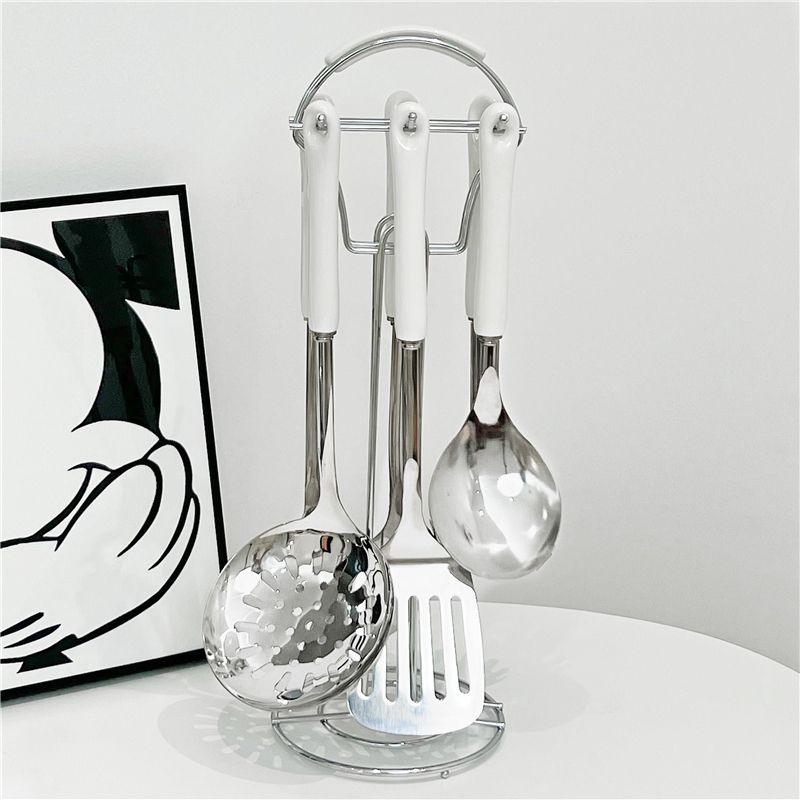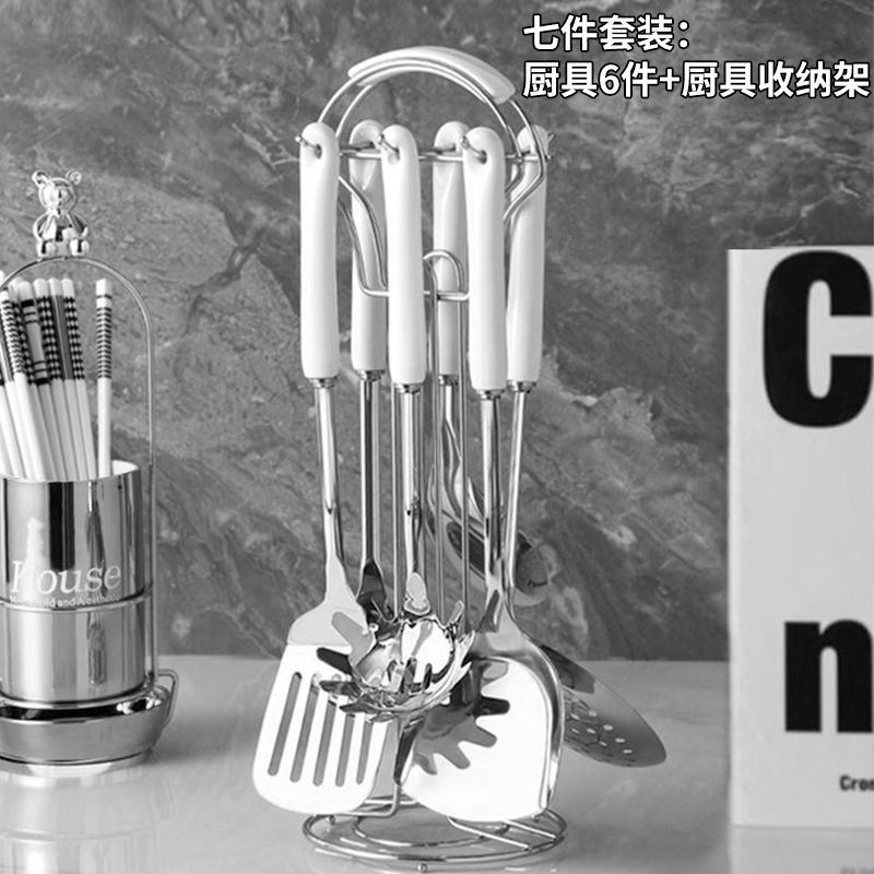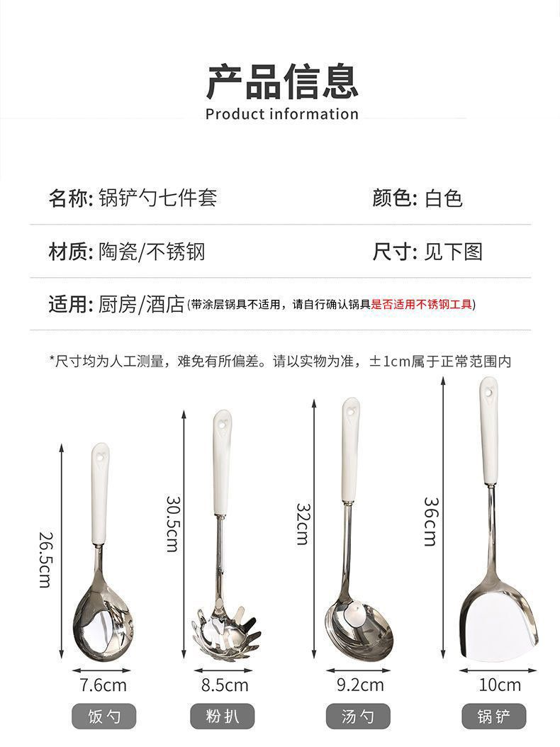 304不锈钢锅铲套装防烫陶瓷柄加厚烹饪炒菜铲勺漏勺家用陶瓷厨具