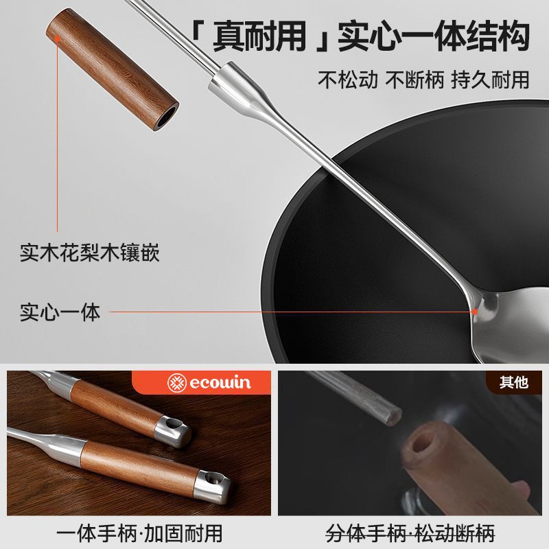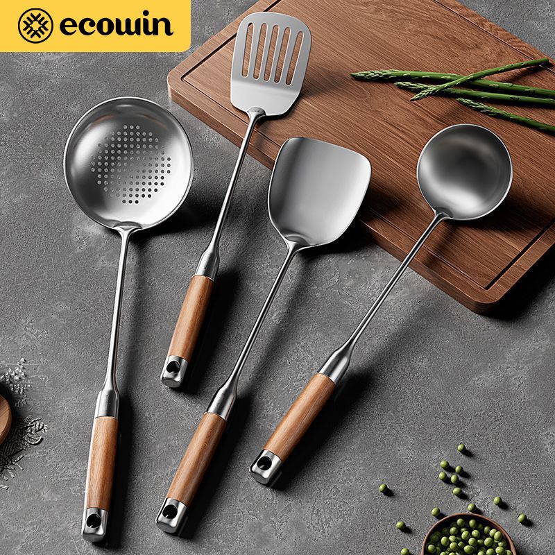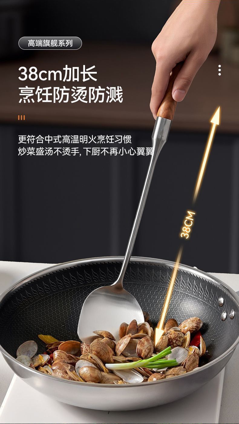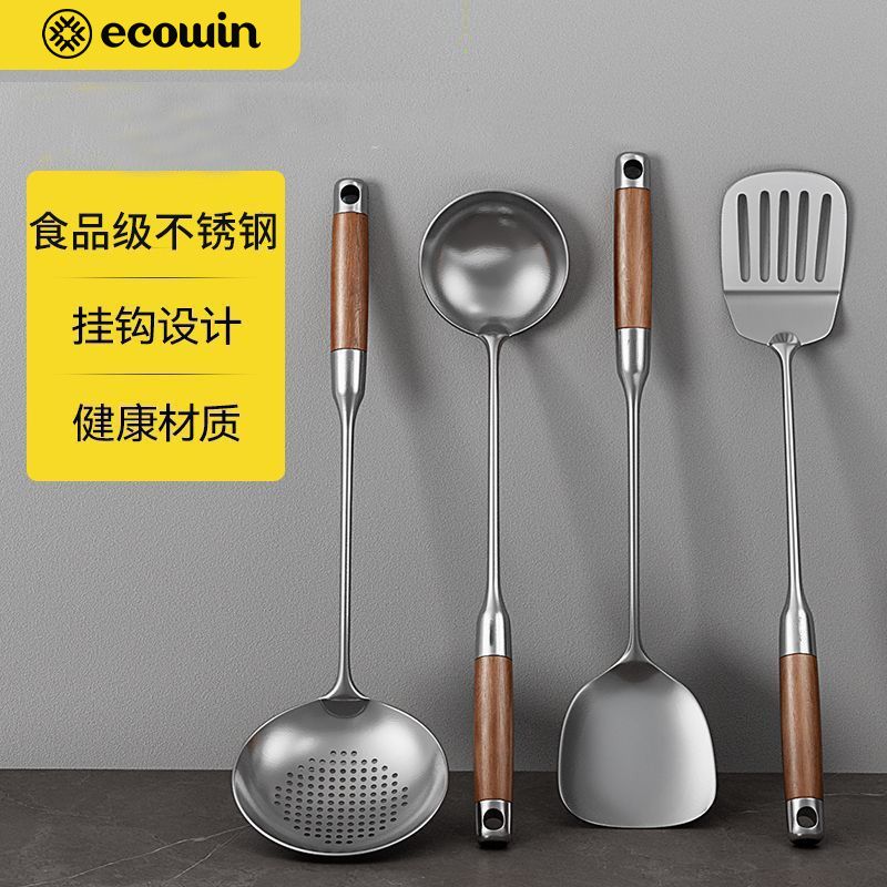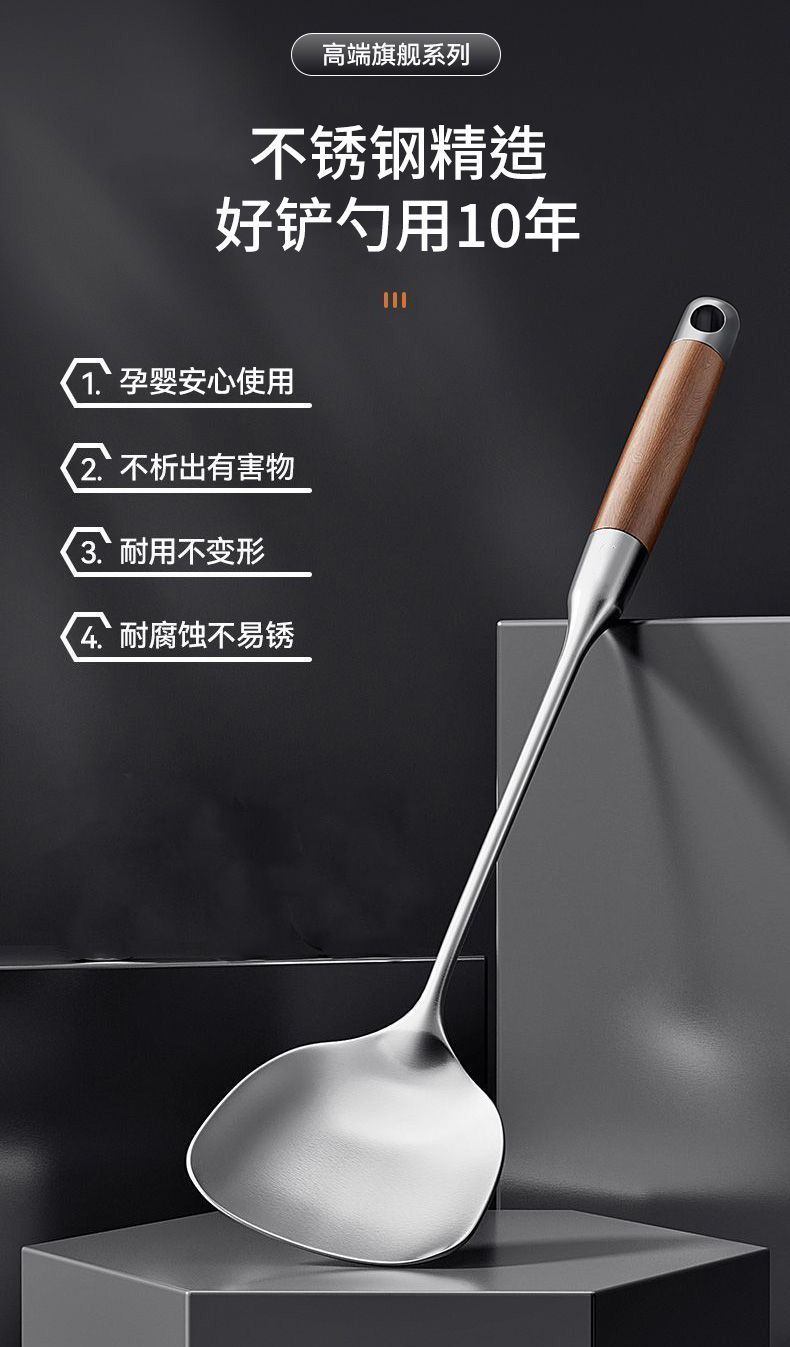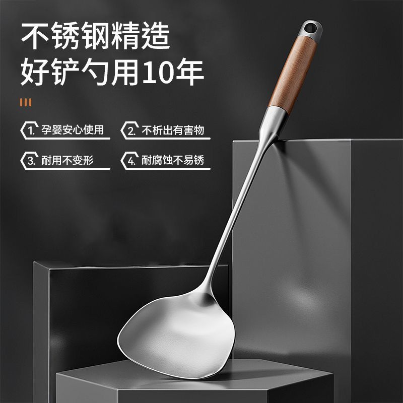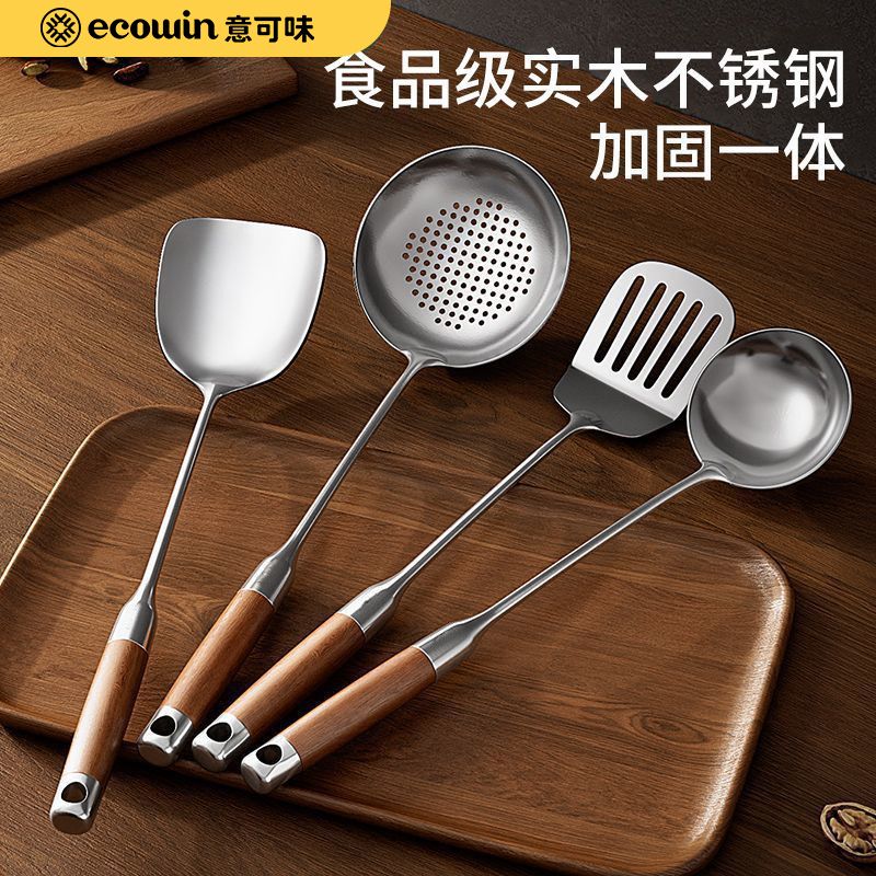 意可味家用锅铲不锈钢原木手柄厨房厨具炒菜铲子汤勺勺子铲勺套餐