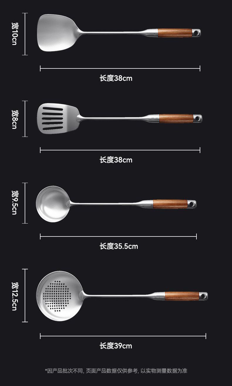 | [spatula + soup spoon + colander + spatula] solid steel/pear flower wooden handle(【锅铲+汤勺+漏勺+煎铲】实心用钢/梨花木柄) | USD $23.18 | 999999 piece available |
