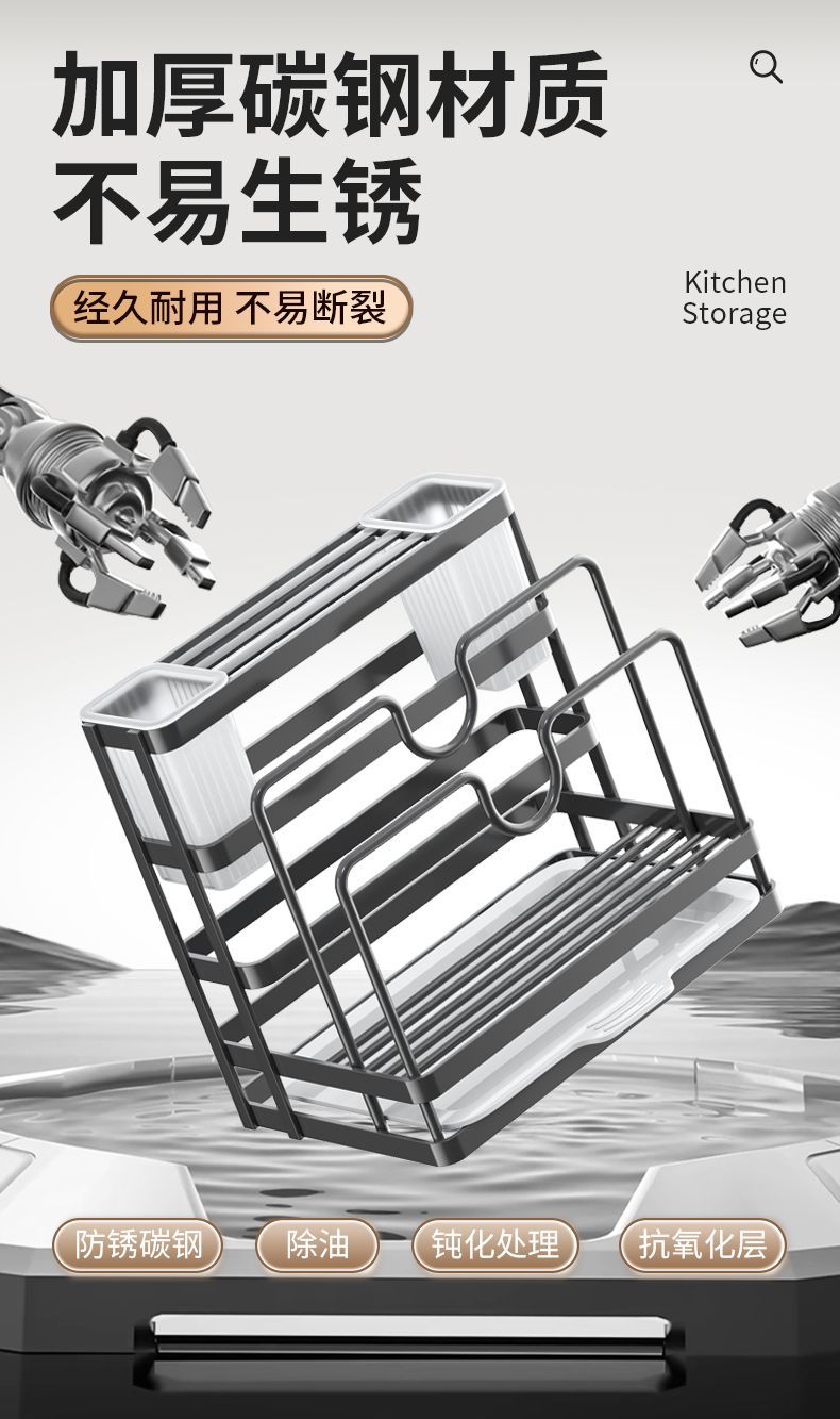 | kitchen storage all-in-one rack [knife holder + pot cover rack + rag rod] xingyao gray(厨房收纳一体架【刀架+锅盖架+抹布杆】星耀灰) | USD $6.12 | 999999 piece available |