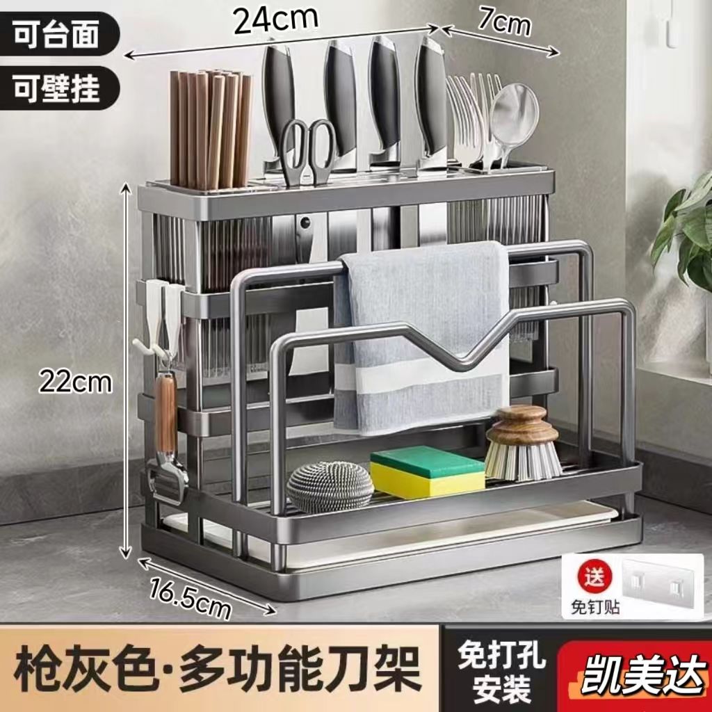 厨房刀架置物架不锈钢台面菜板架菜刀筷笼一体刀具砧板壁挂收纳架