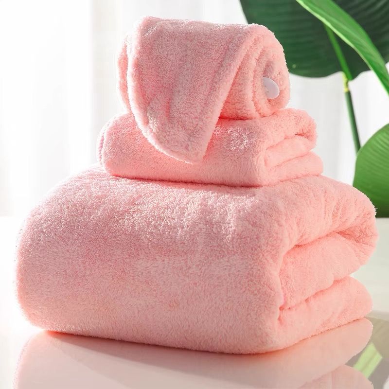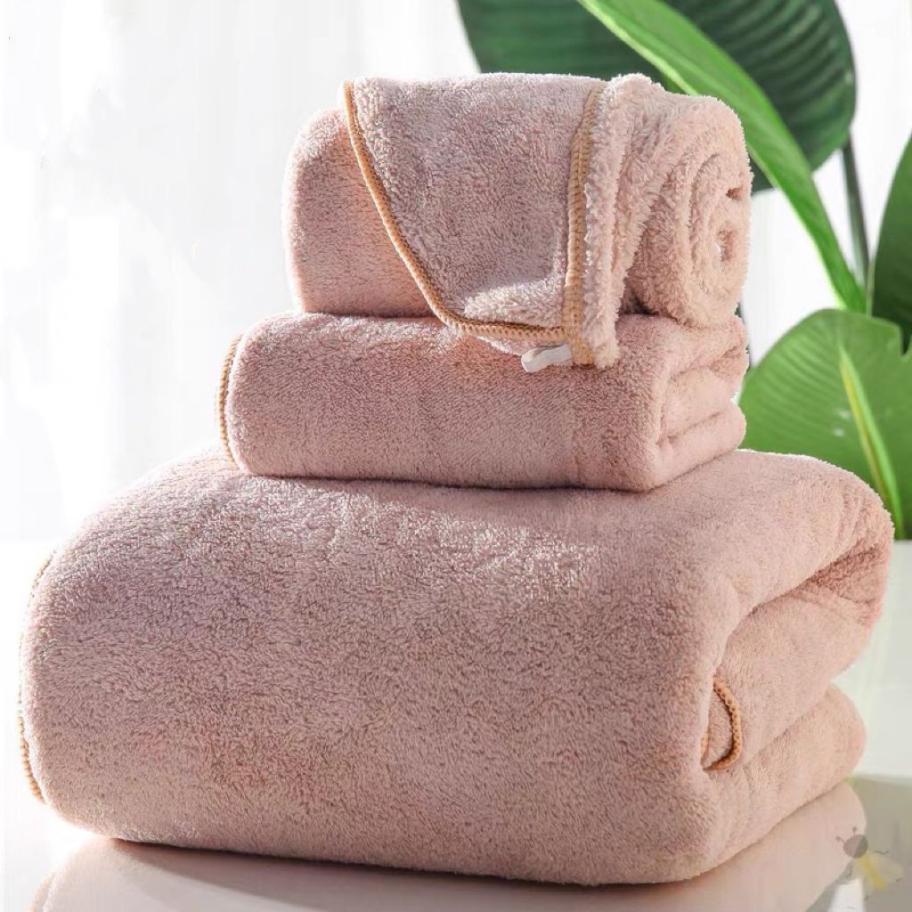 珊瑚绒成人大浴巾三件套吸水加厚洗澡擦身体柔软速干可裹男女批发