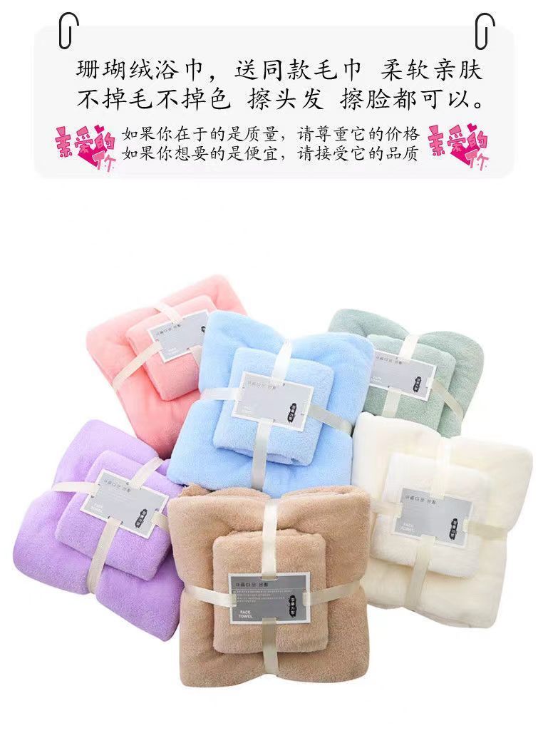 | towel + bath towel + square towel three-piece set(毛巾+浴巾+方巾三件套) | USD $2.68 | 999999 piece available |