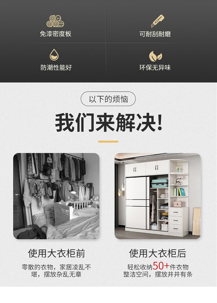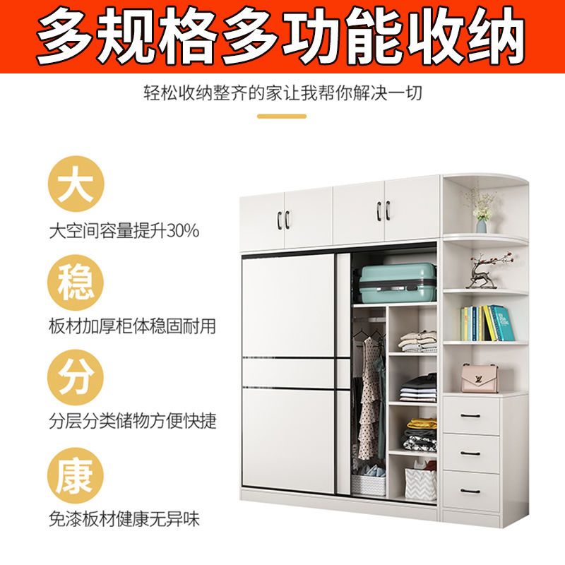 衣柜家用卧室推拉门小户型大衣橱简约现代出租屋收纳柜主卧储物柜