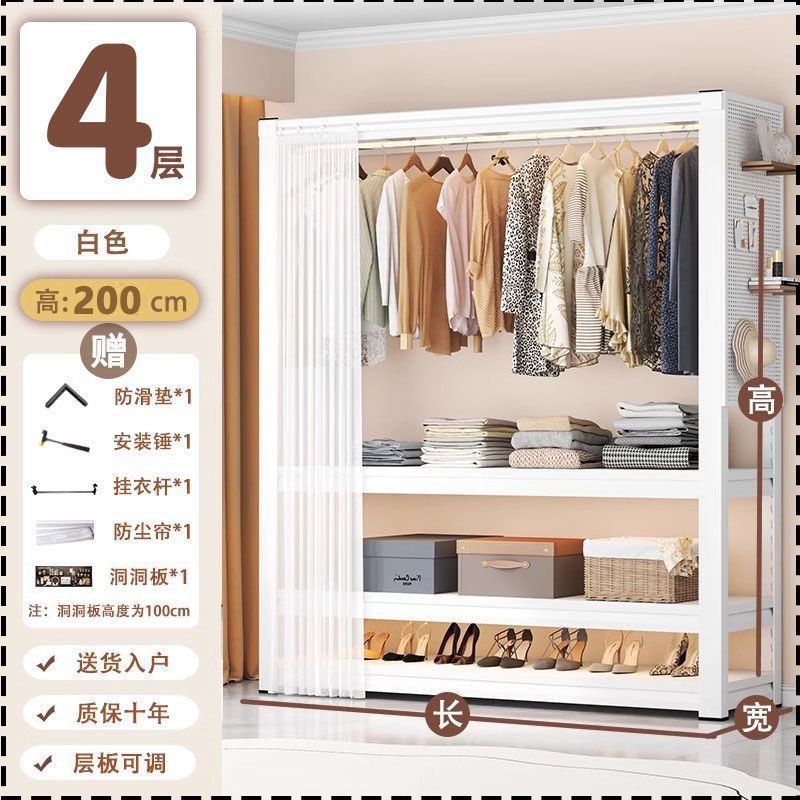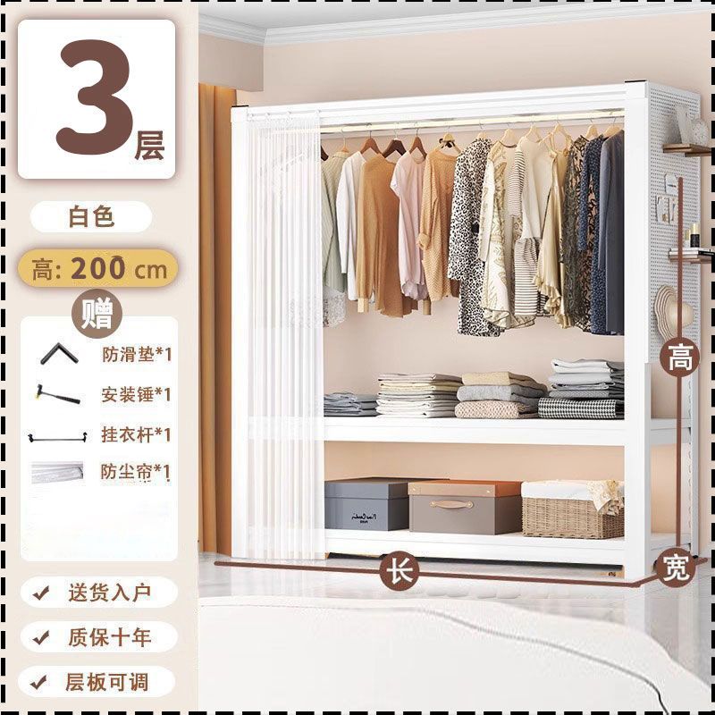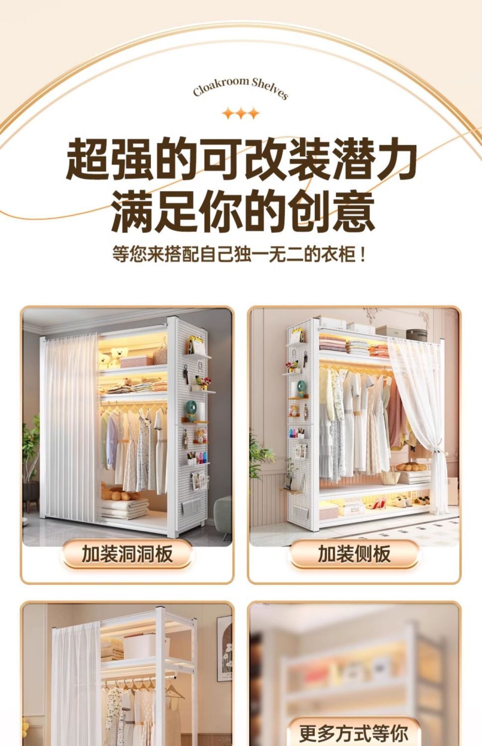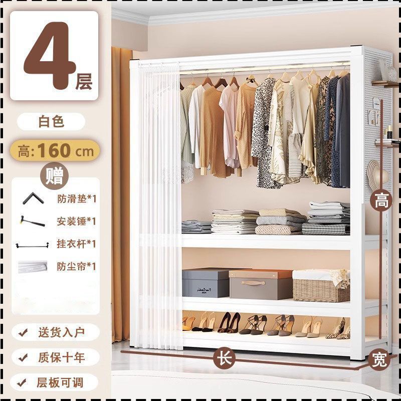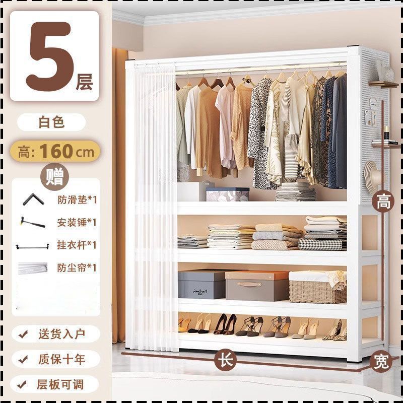 家用简易衣柜置物架衣帽间出租房用挂衣架卧室落地多层钢制收纳架