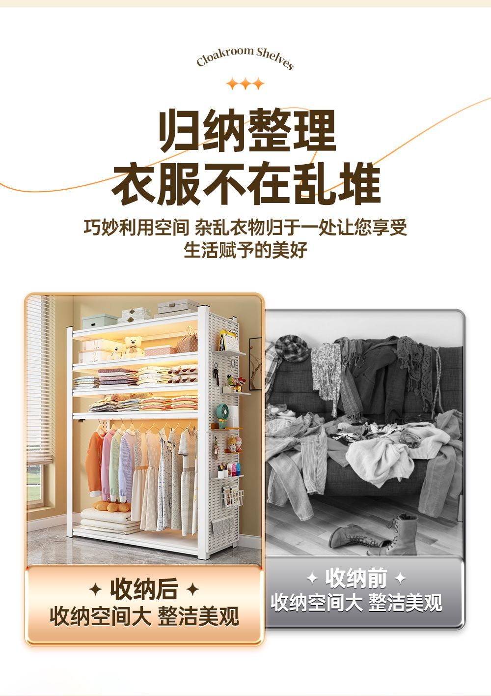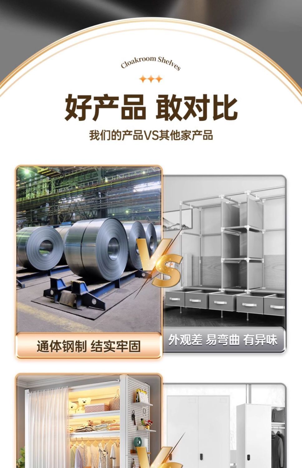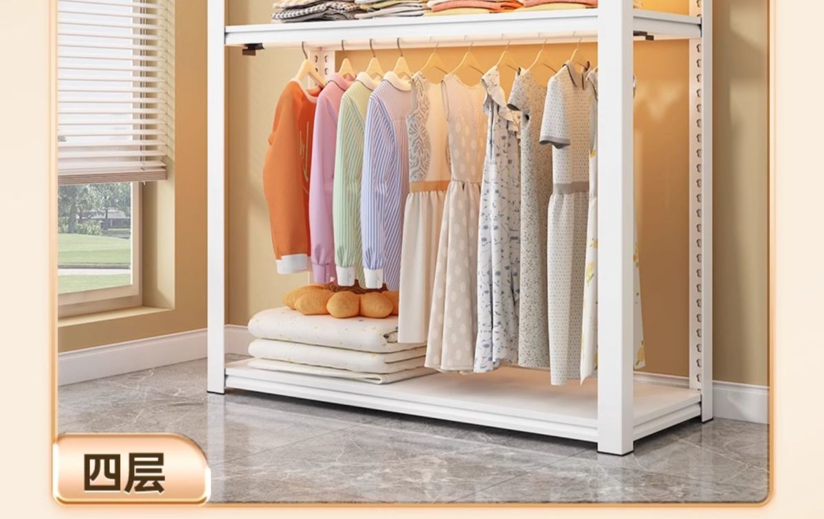 家用简易衣柜置物架衣帽间出租房用挂衣架卧室落地多层钢制收纳架