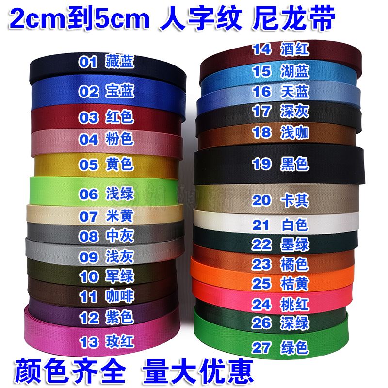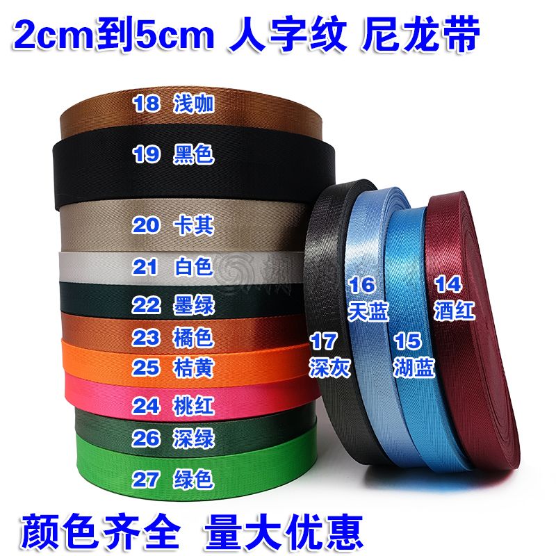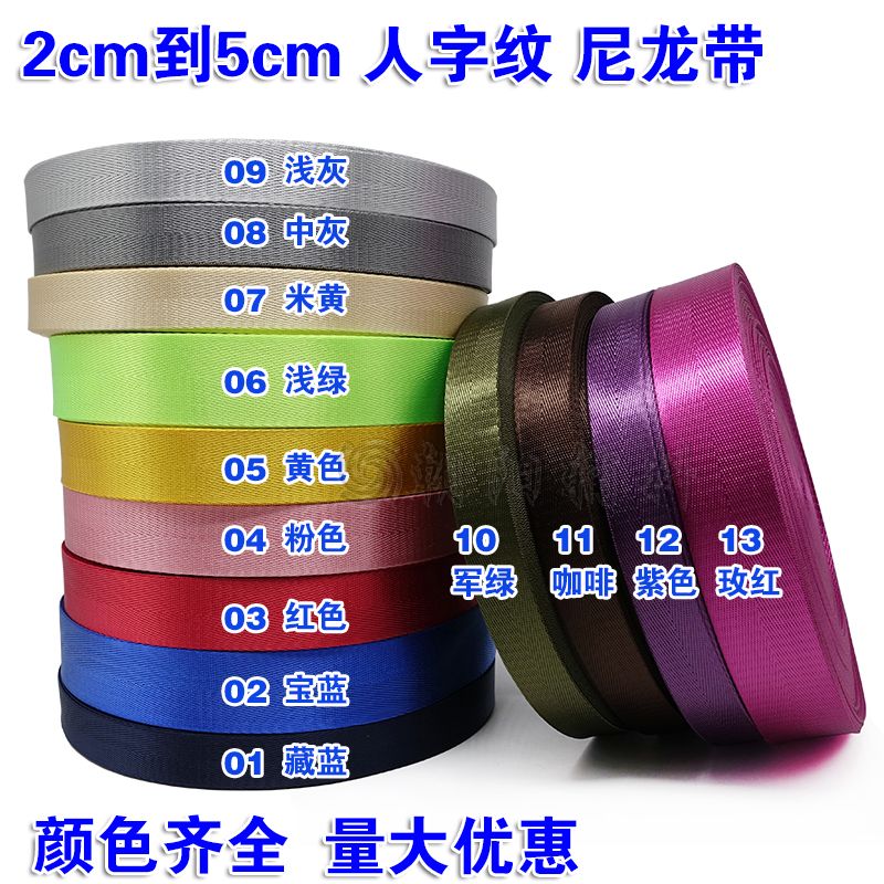 彩色人字纹加厚尼龙织带背包带捆绑带汽车安全带扁带黑白色尼龙带