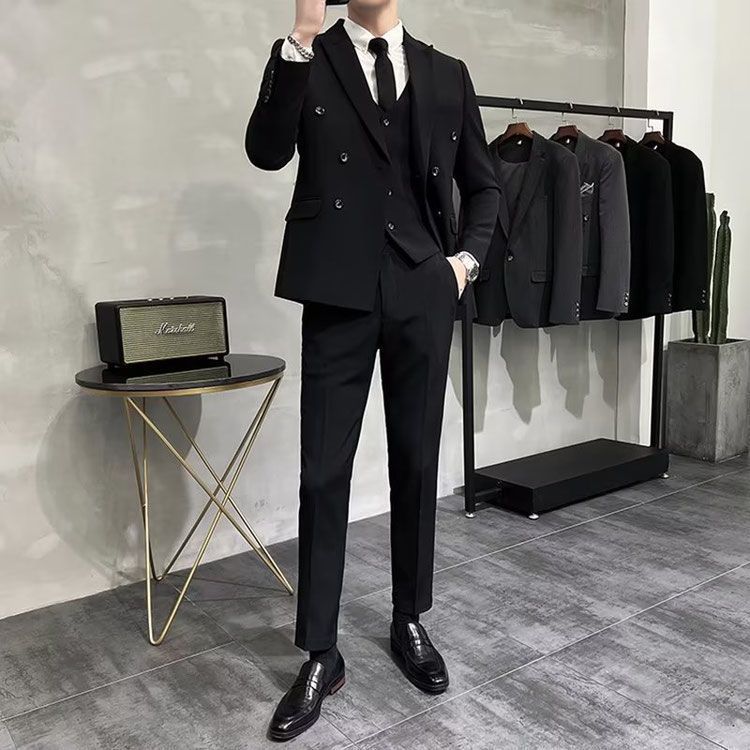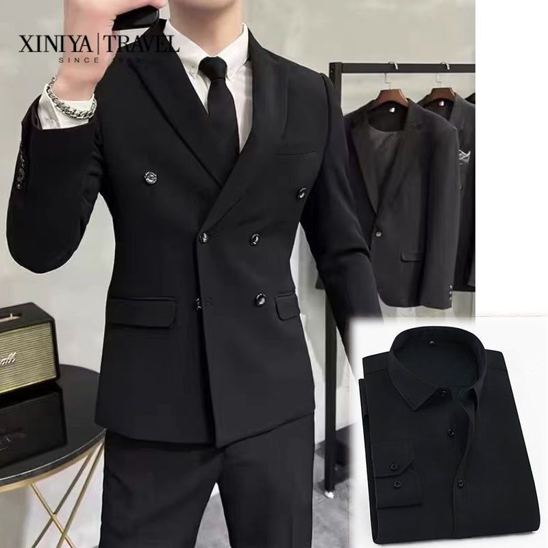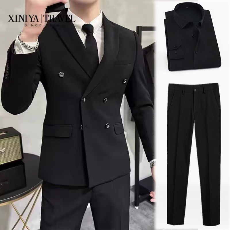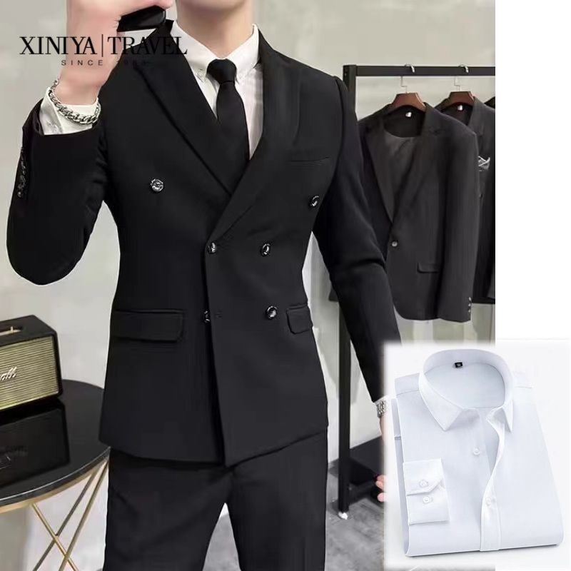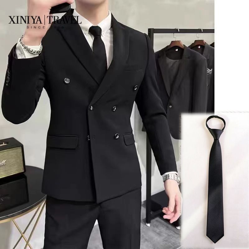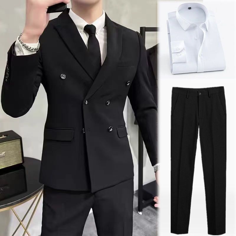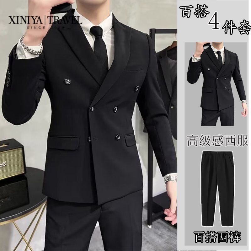 春秋男士网红双排扣西装外套高级感修身西服伴郎婚礼服上衣
