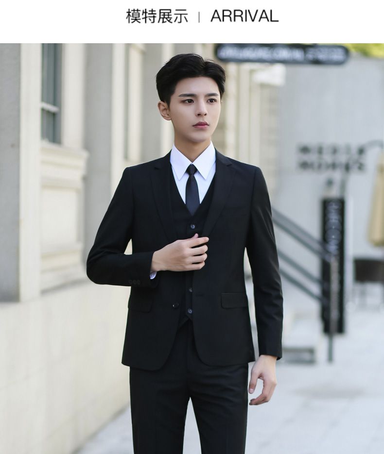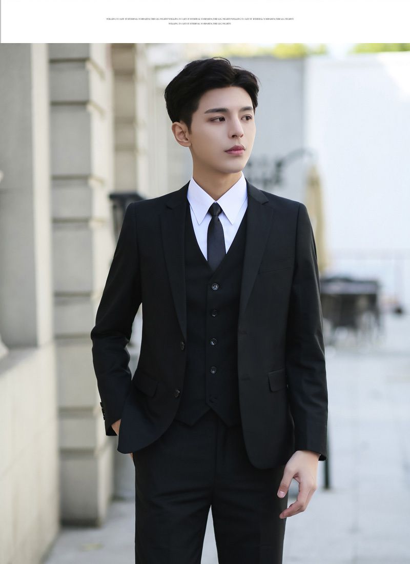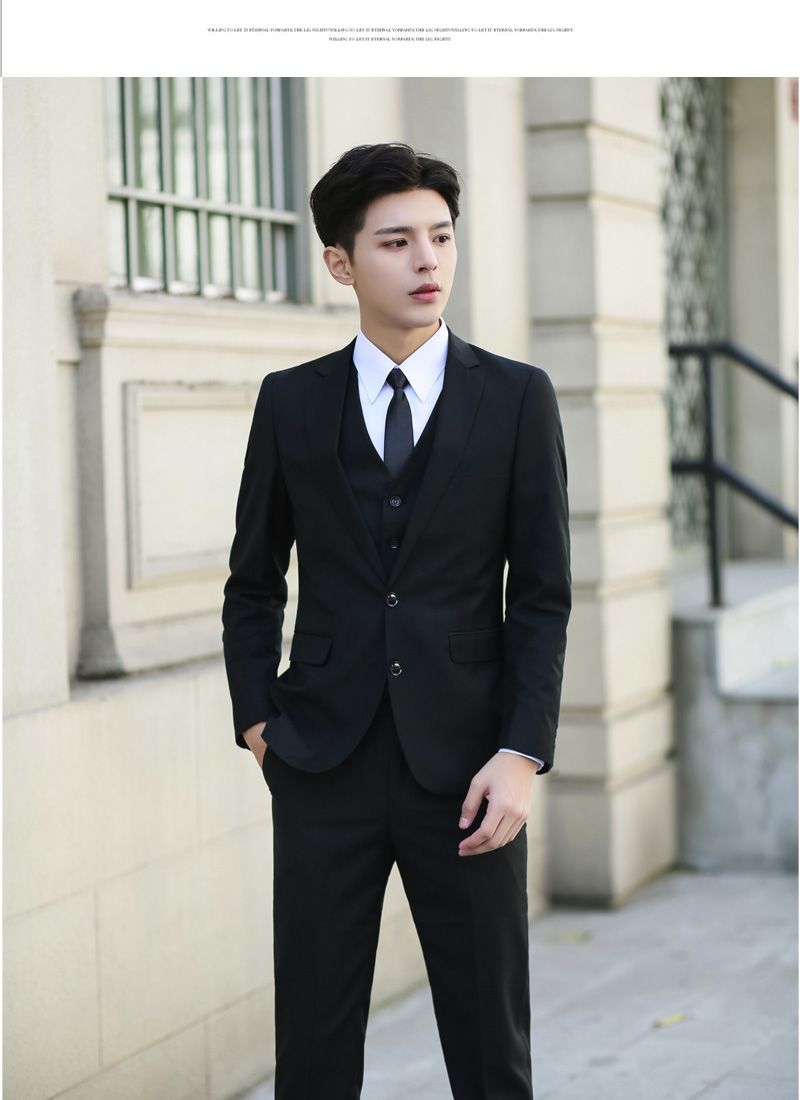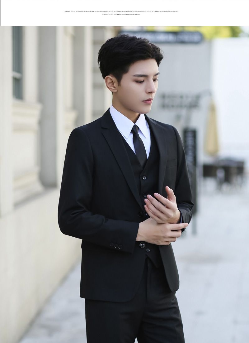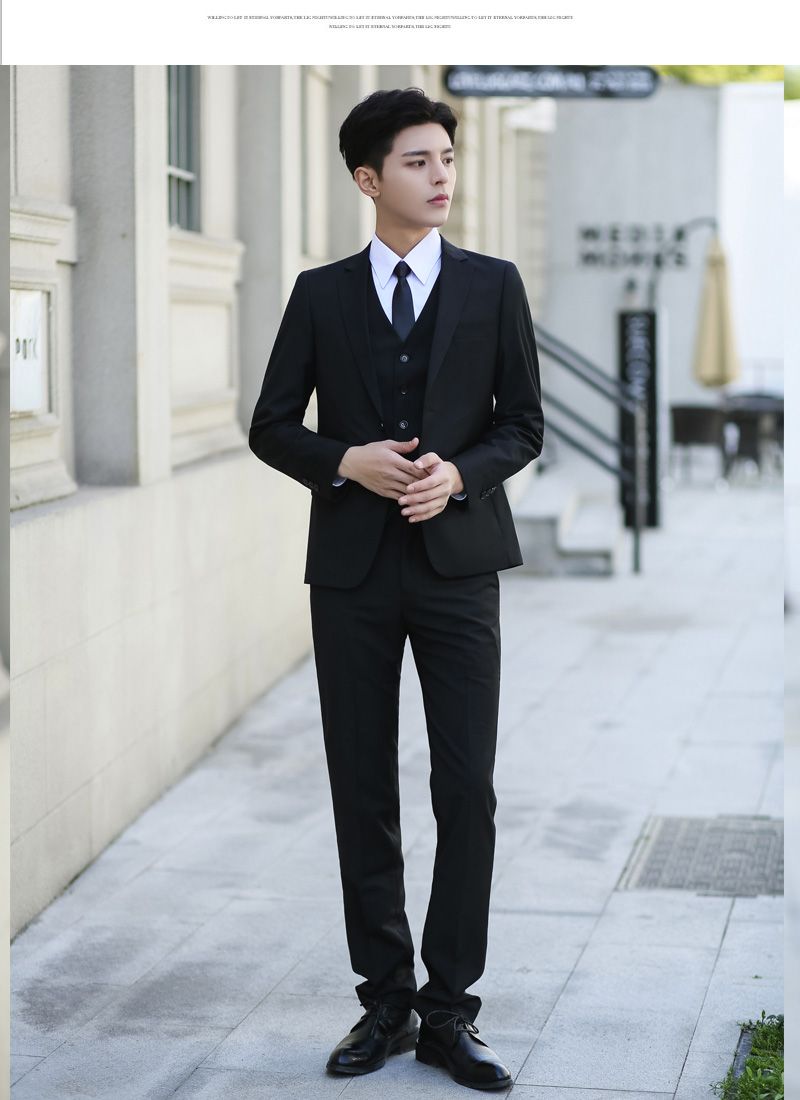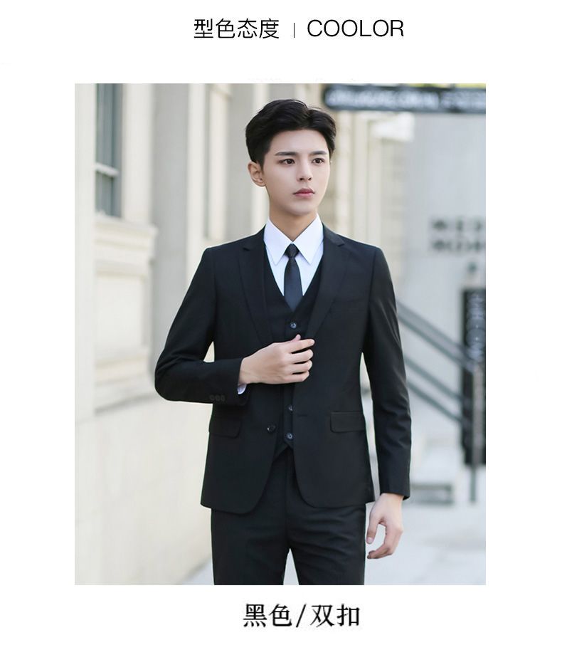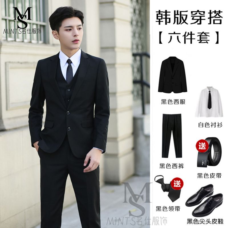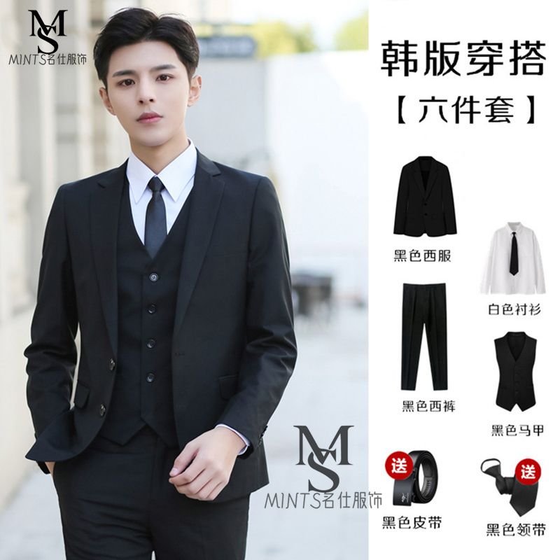 韩版修身黑色西服套装男士面试上班工作服商务帅气小西装一整套
