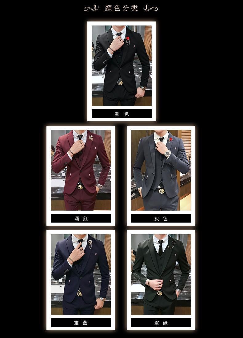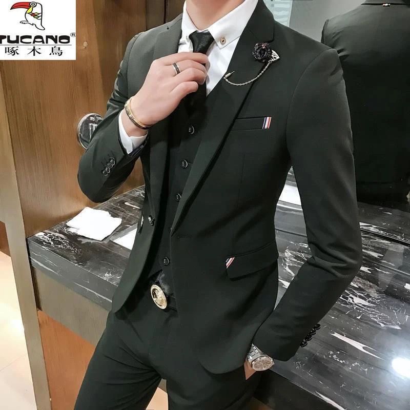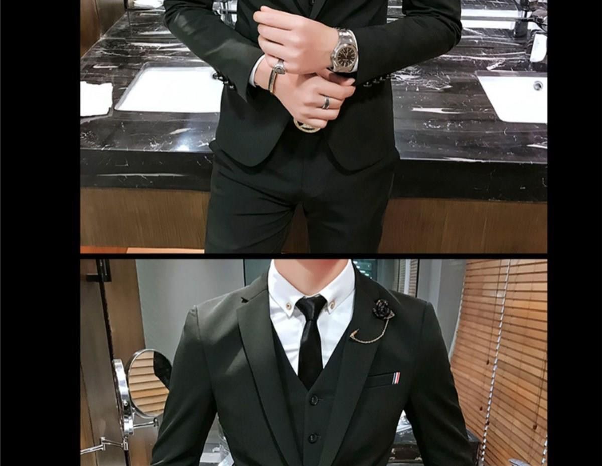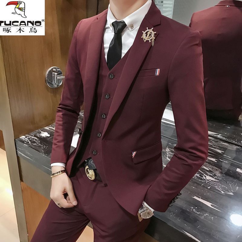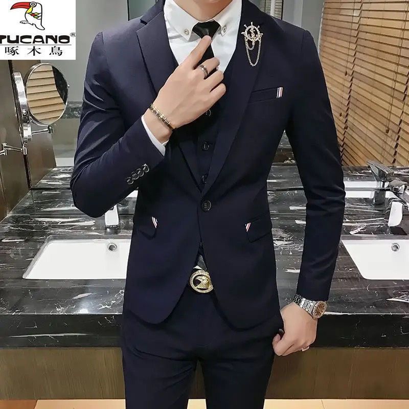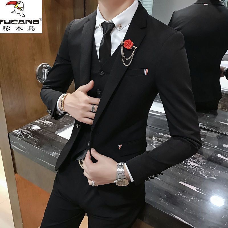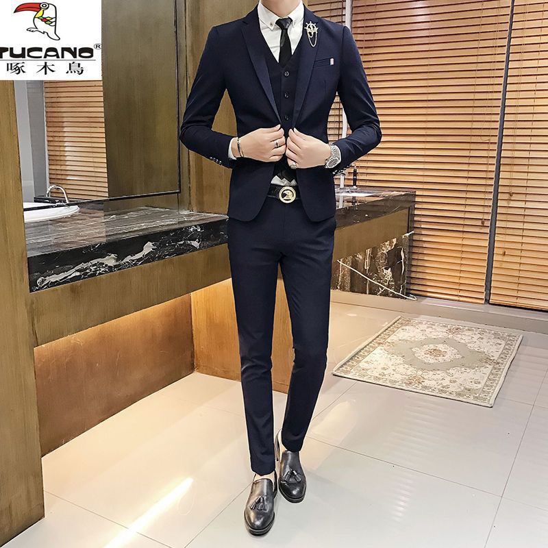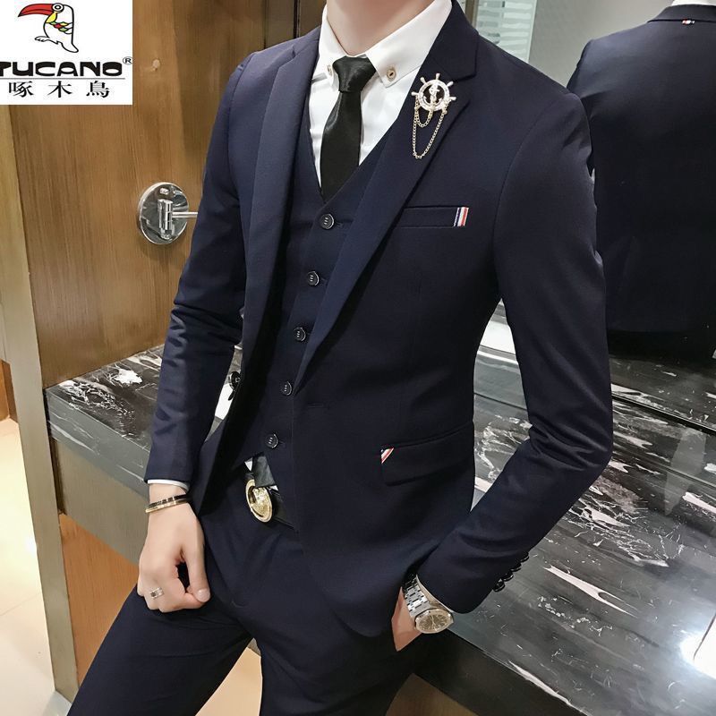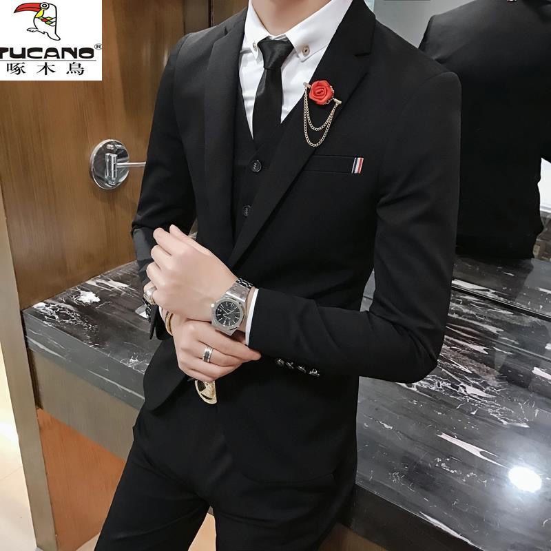 啄木鸟西服套装男三件套韩版修身商务正装休闲小西装新郎结婚礼【