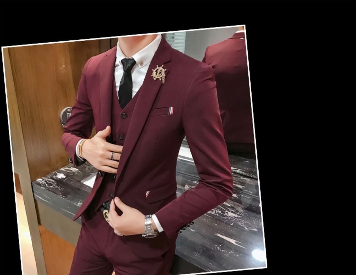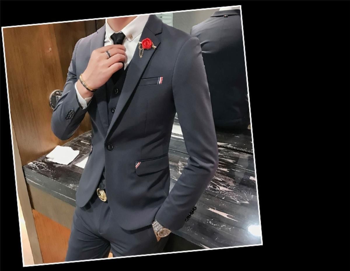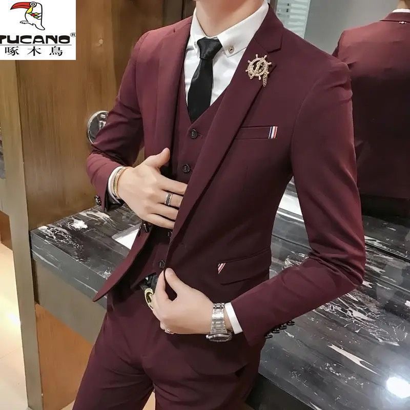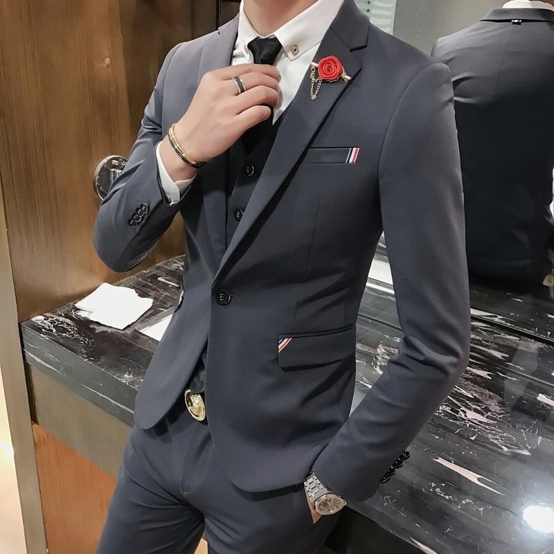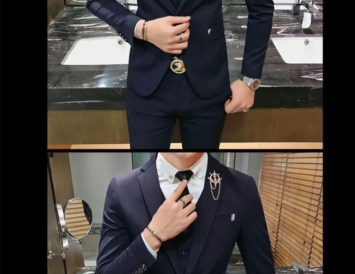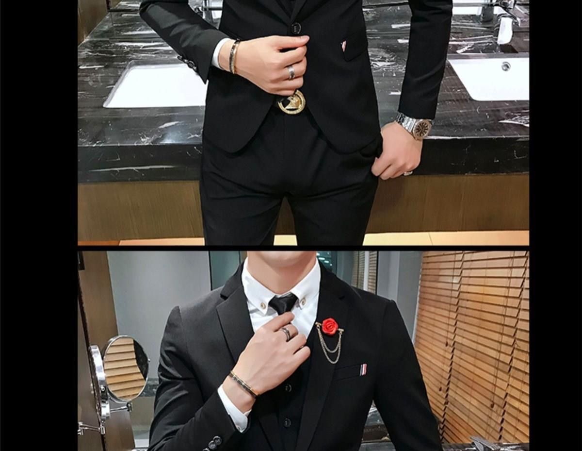 啄木鸟西服套装男三件套韩版修身商务正装休闲小西装新郎结婚礼【