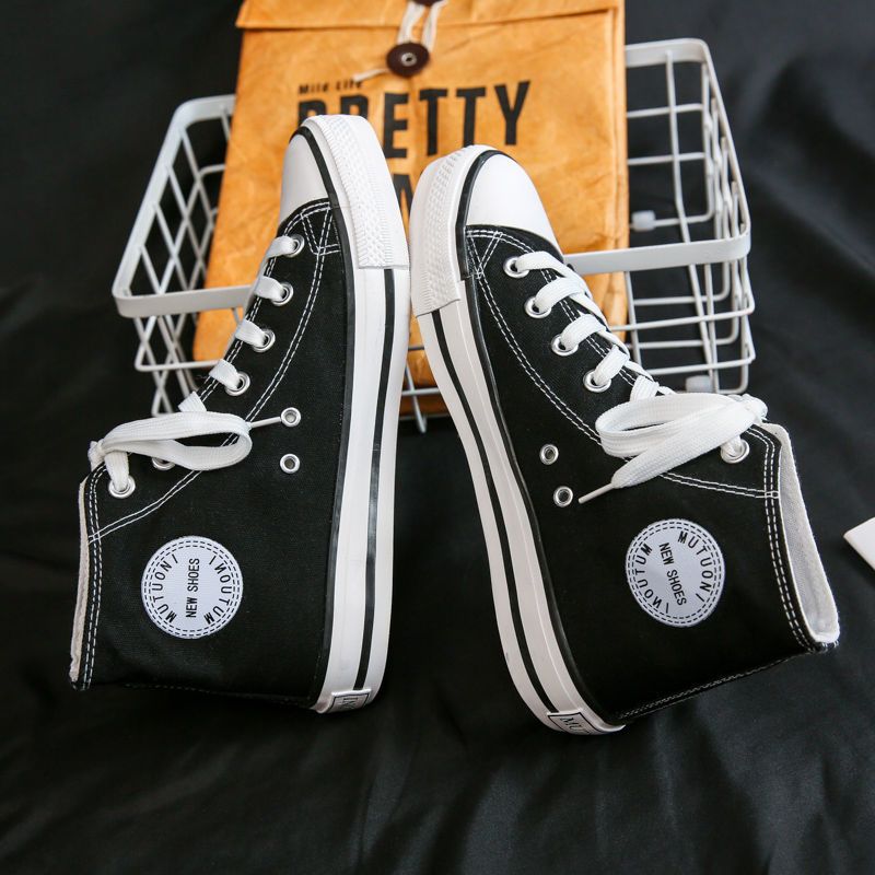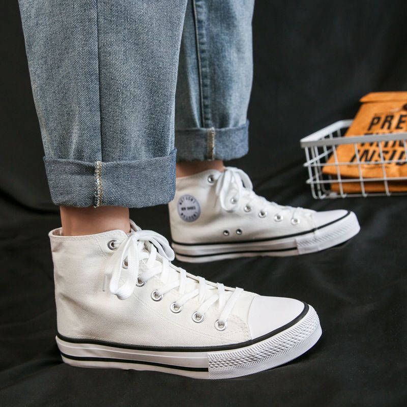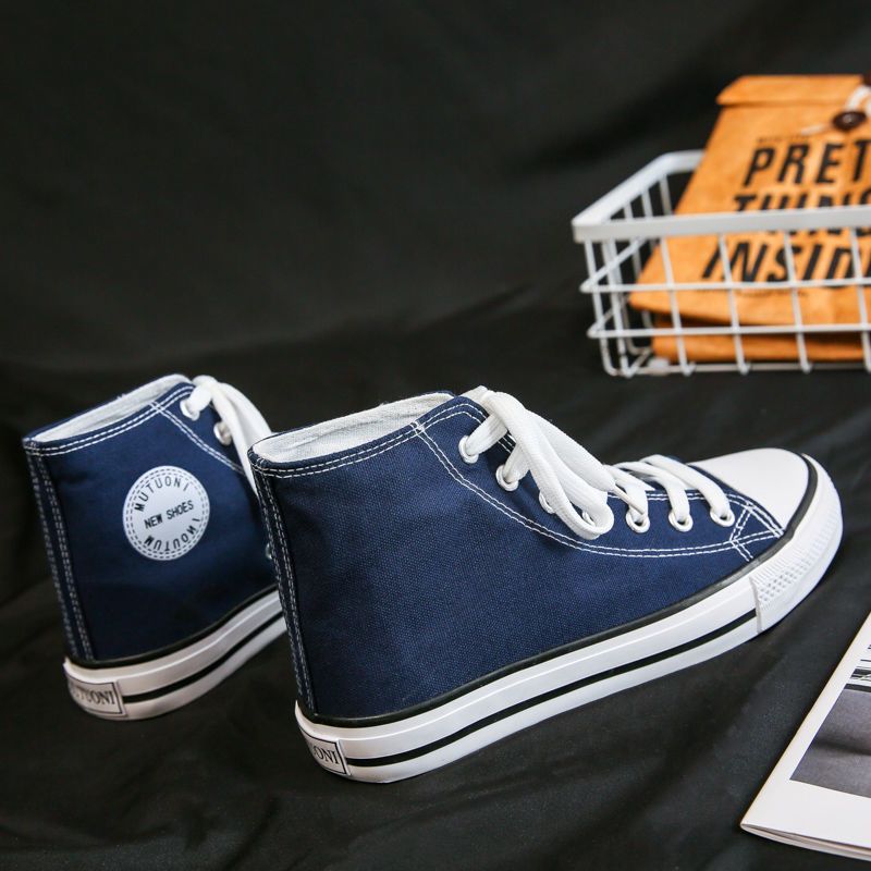 帆布鞋男高帮学生韩版潮鞋百搭日系小白鞋潮流布鞋情侣鞋子男板鞋