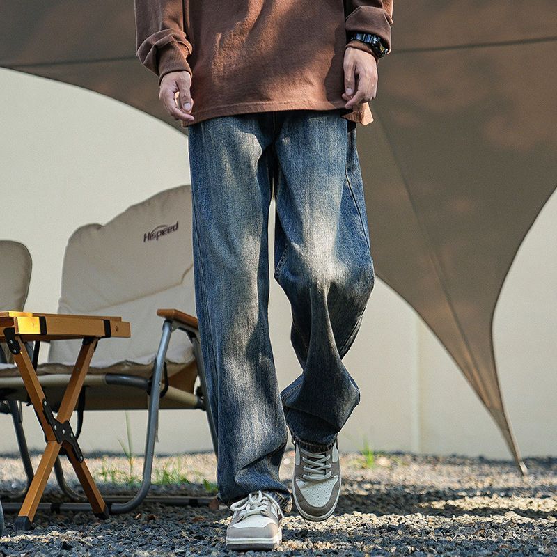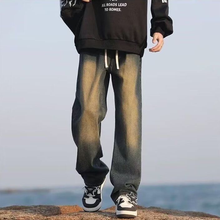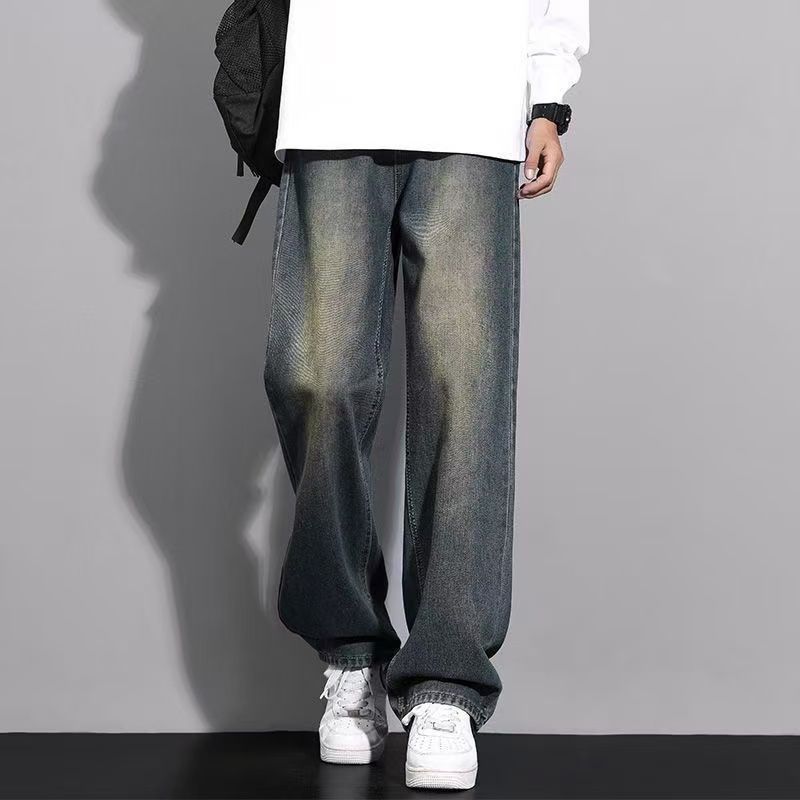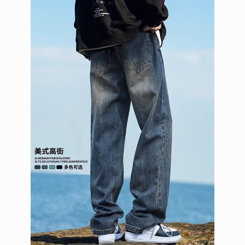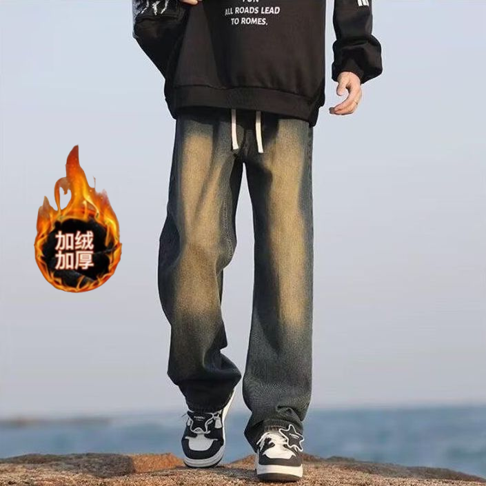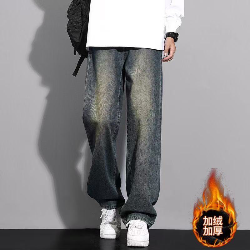 2024秋冬季加厚新款加绒阔腿牛仔裤男宽松直筒男生加绒阔腿牛仔裤