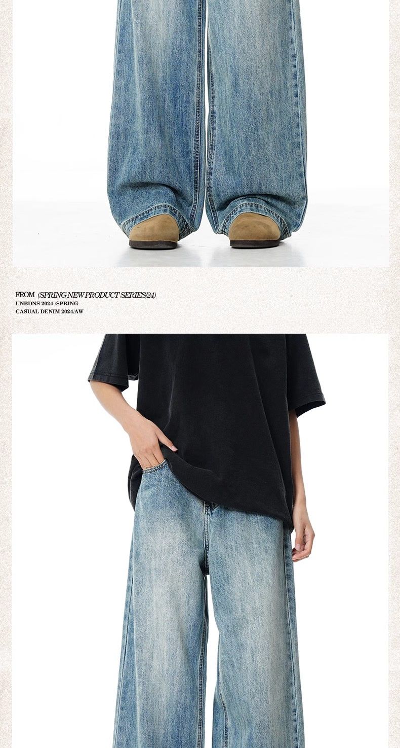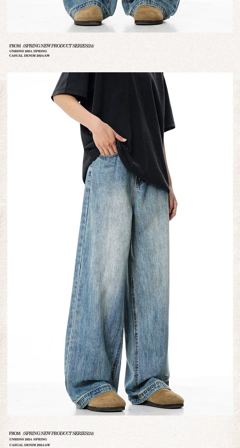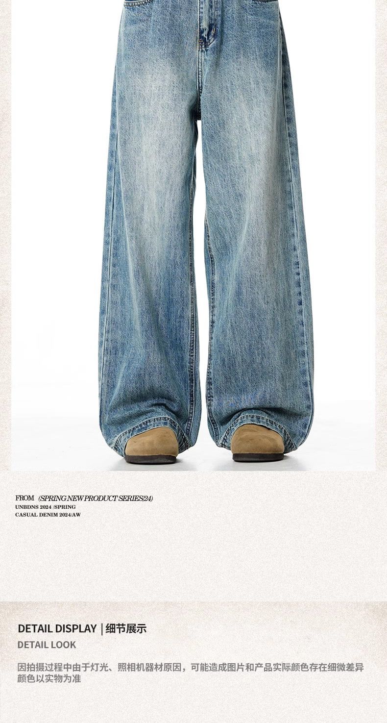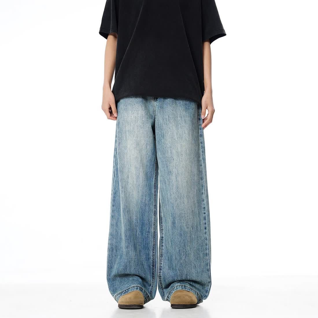 Verborgen浅蓝色宽松牛仔裤美式高街水洗直筒阔腿cleanfit长裤子