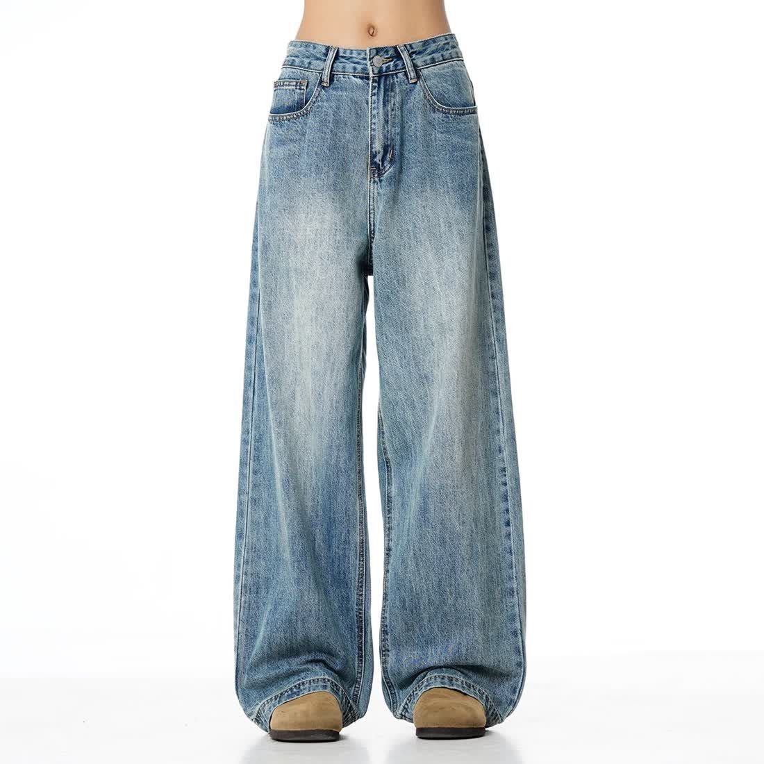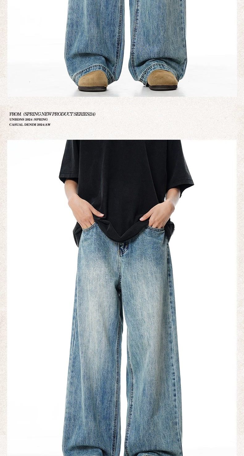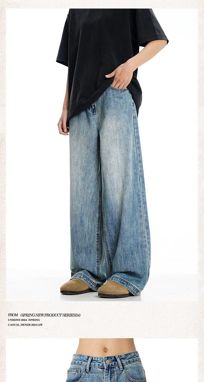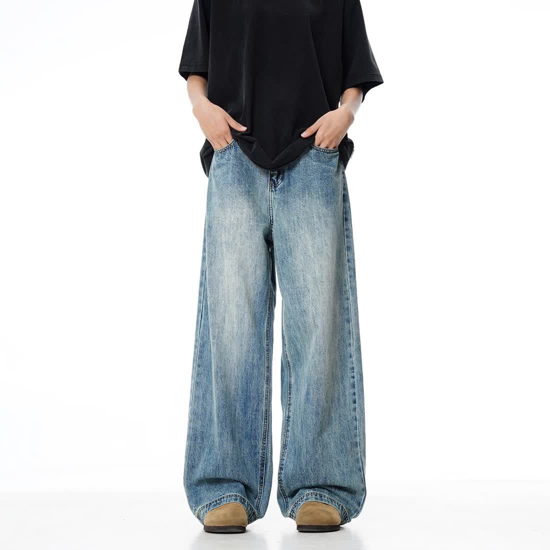 Verborgen浅蓝色宽松牛仔裤美式高街水洗直筒阔腿cleanfit长裤子