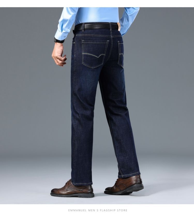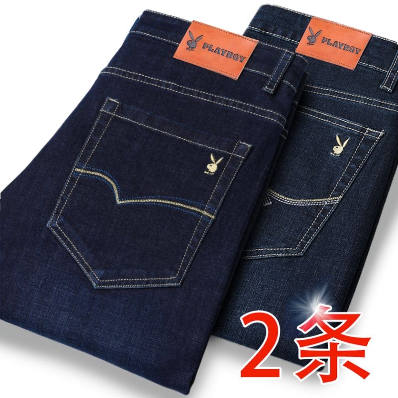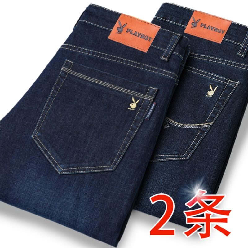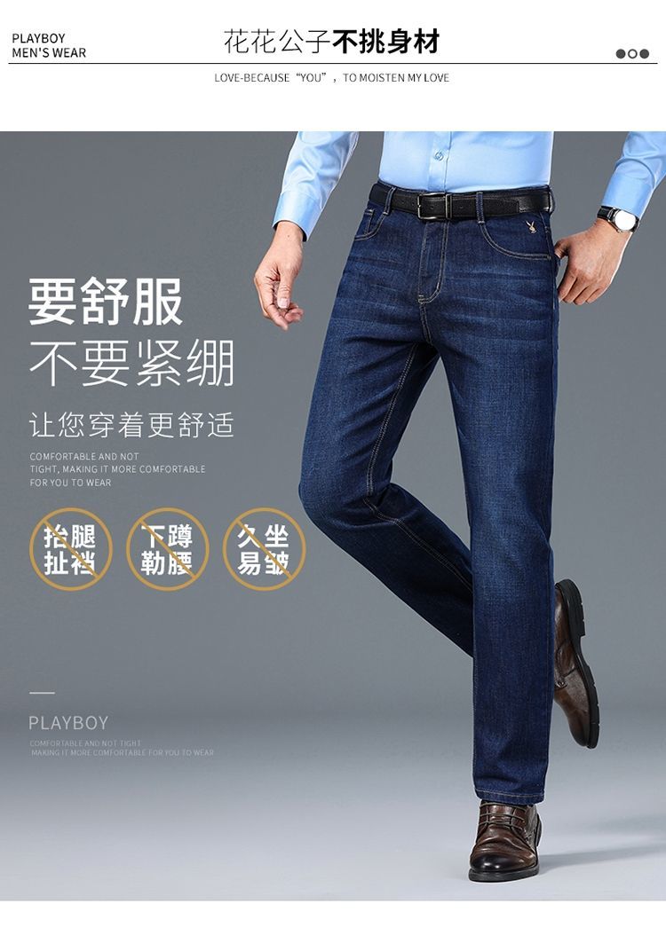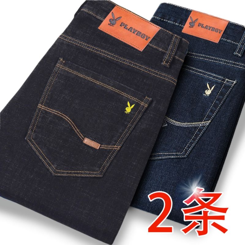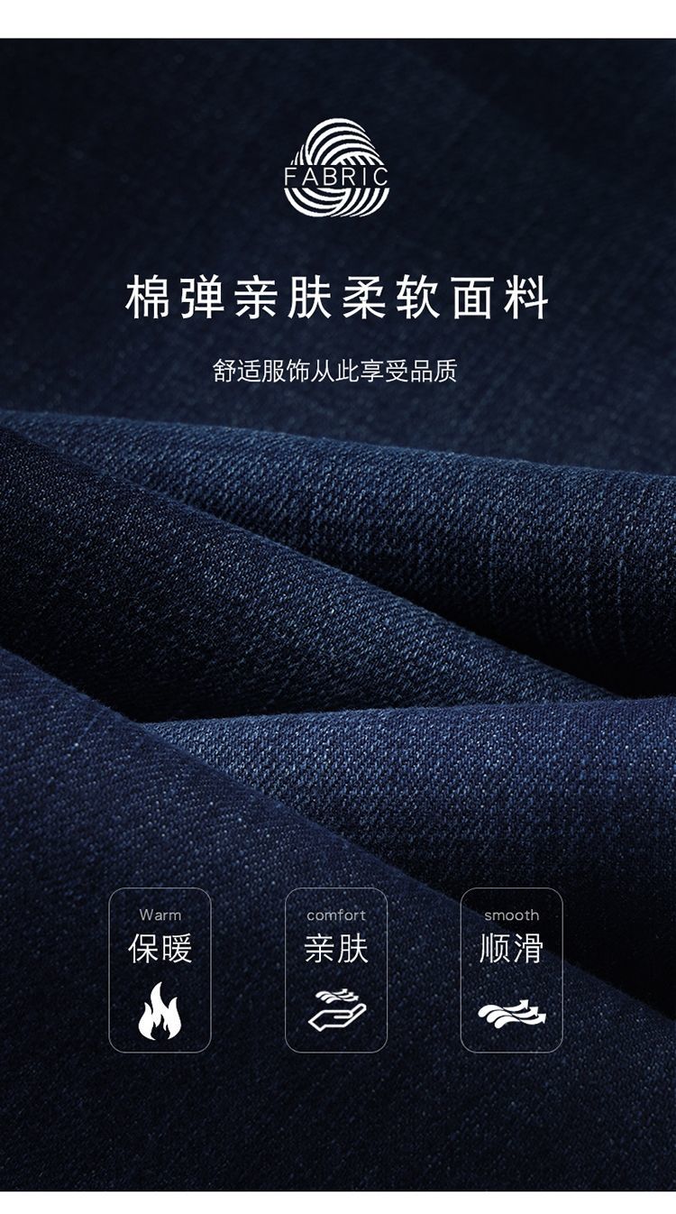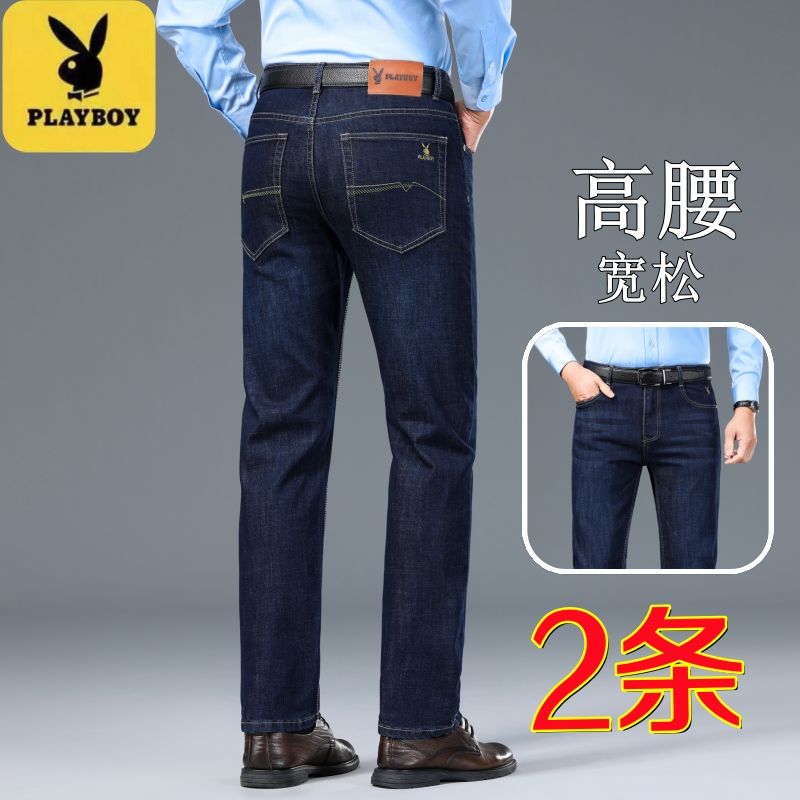 花花公子男士牛仔秋冬厚款宽松直筒弹力高腰中青年大码男加绒裤子