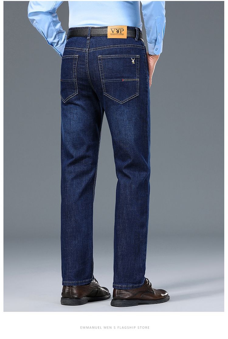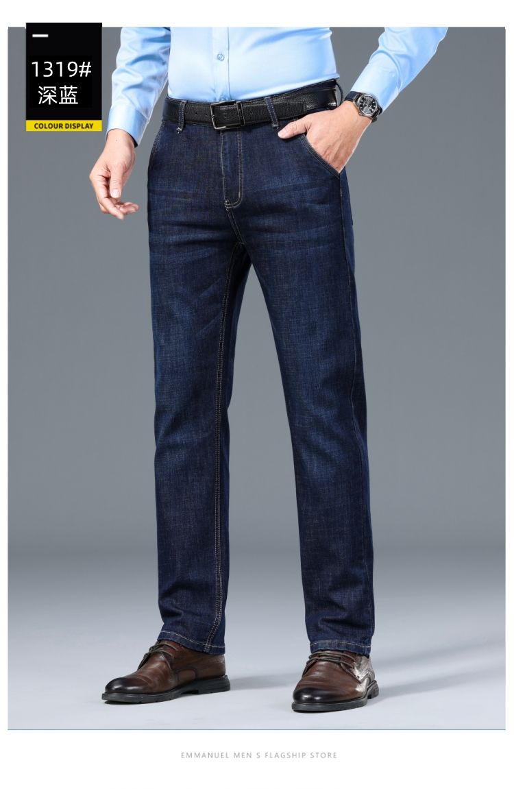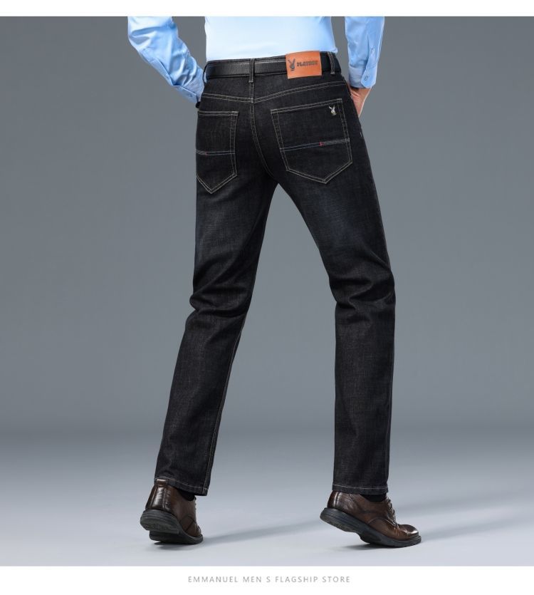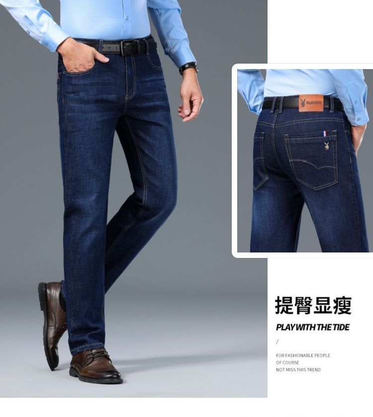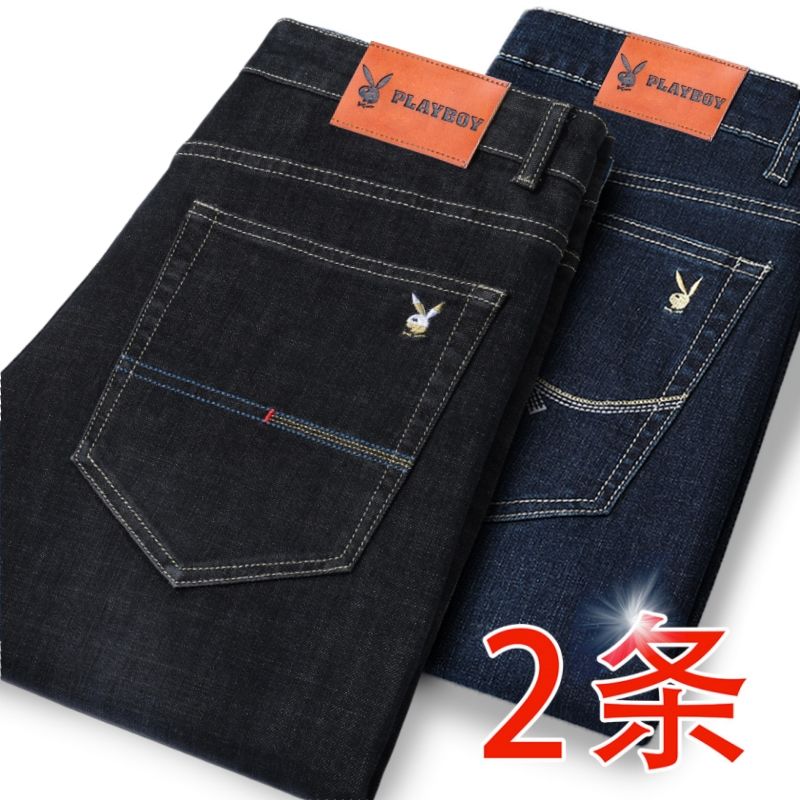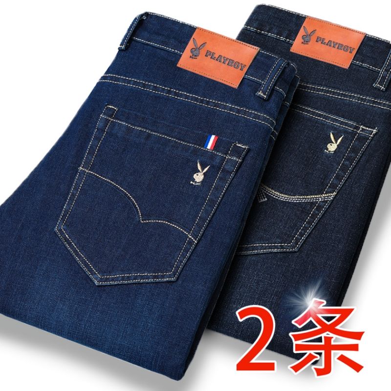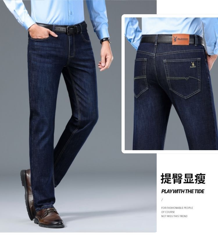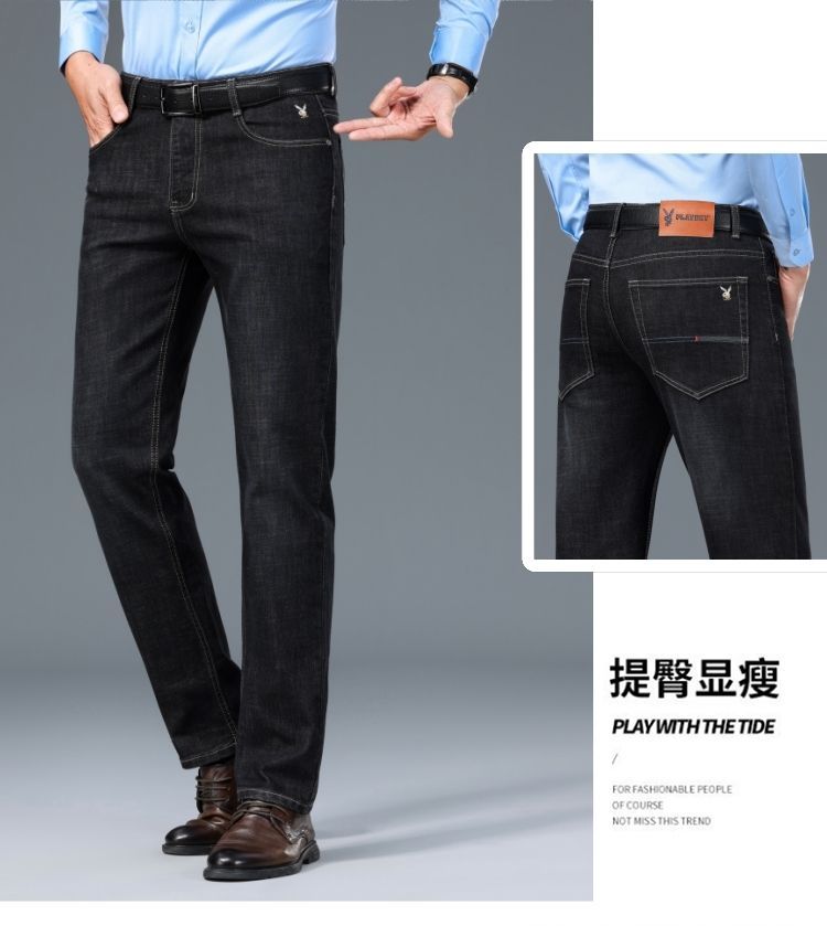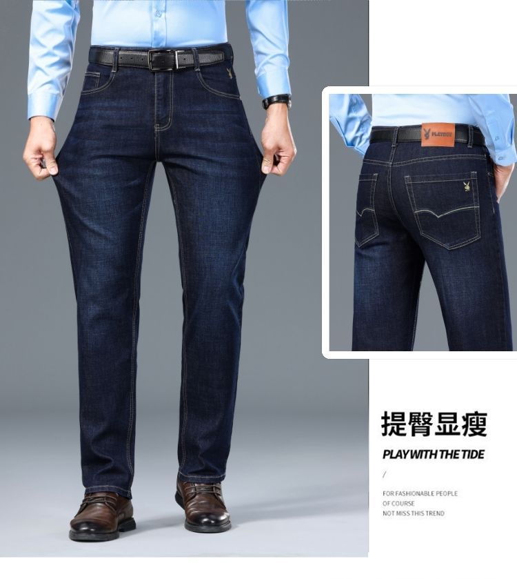 花花公子男士牛仔秋冬厚款宽松直筒弹力高腰中青年大码男加绒裤子