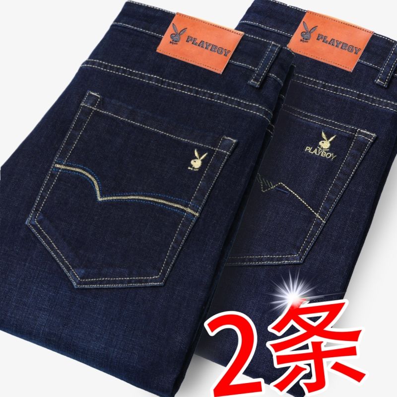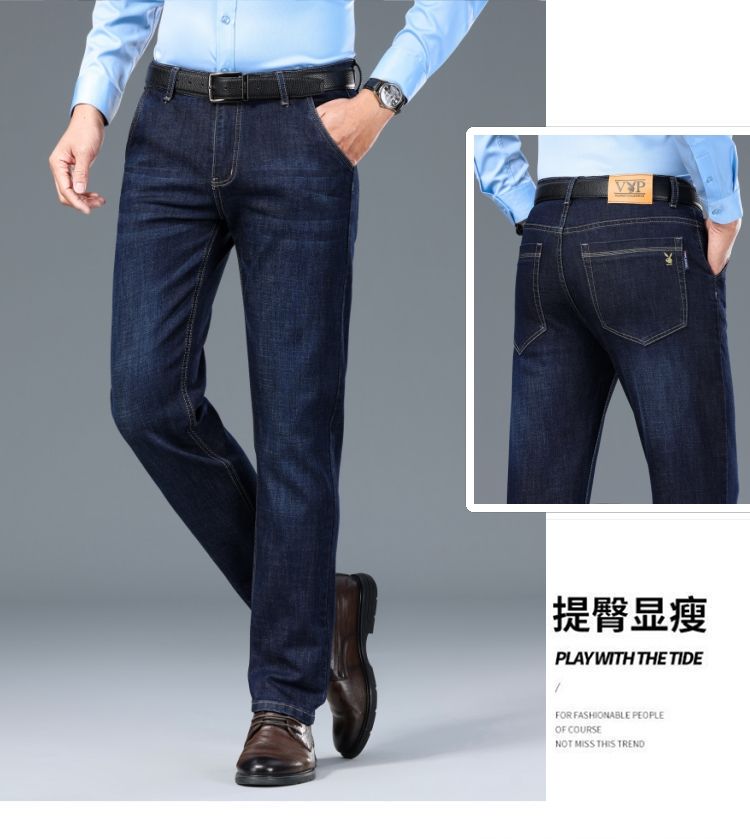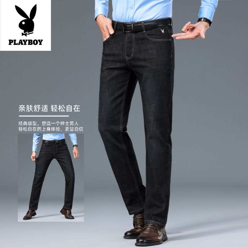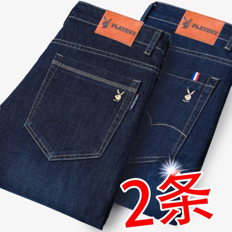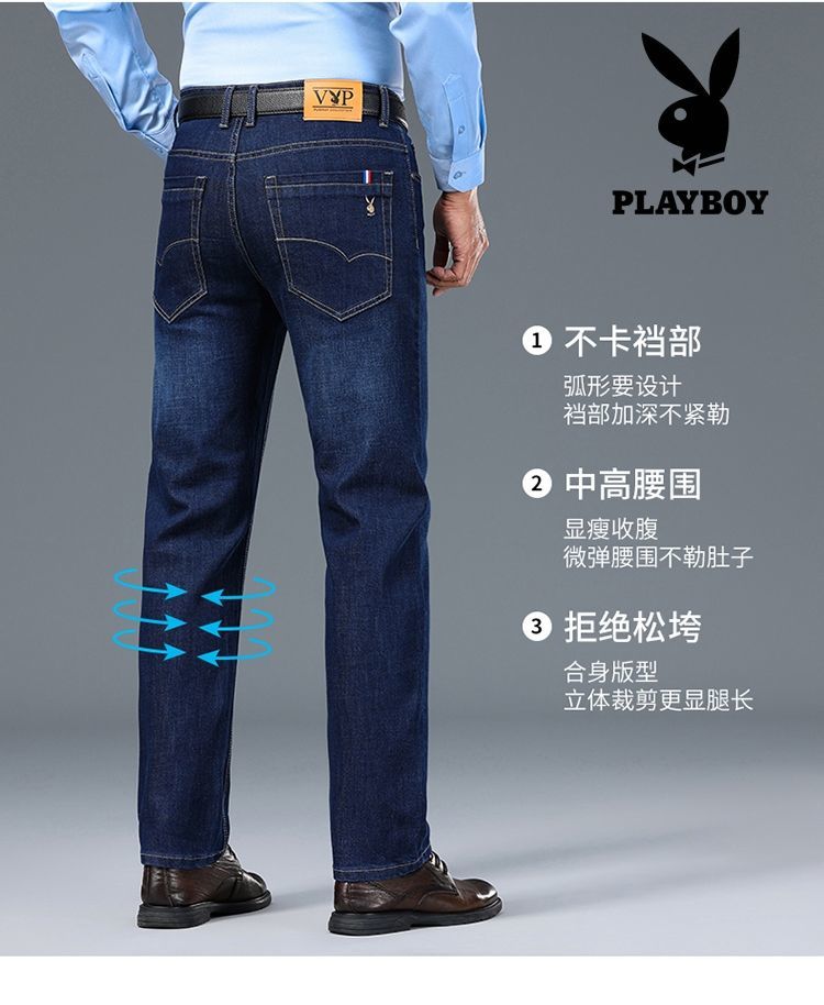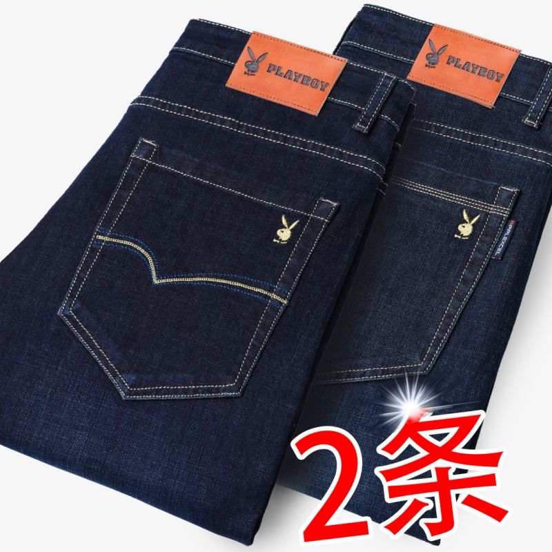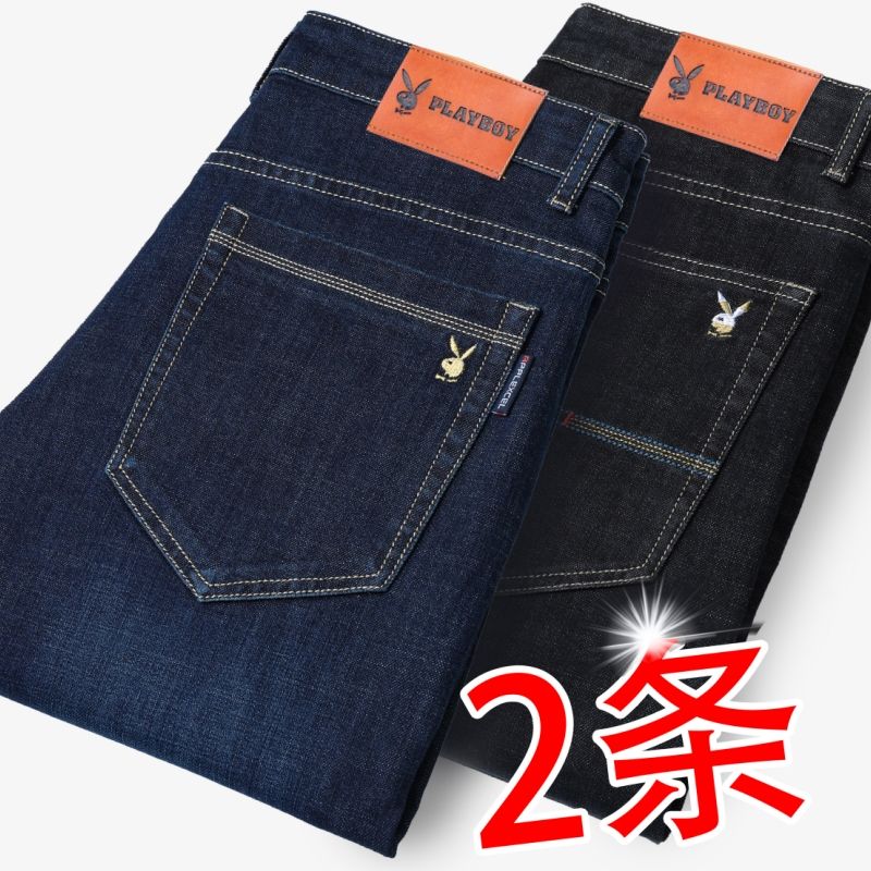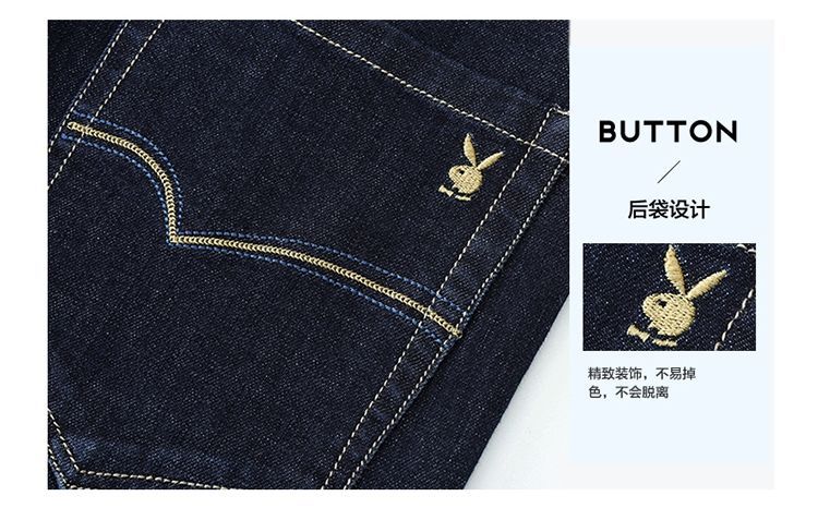 花花公子男士牛仔秋冬厚款宽松直筒弹力高腰中青年大码男加绒裤子