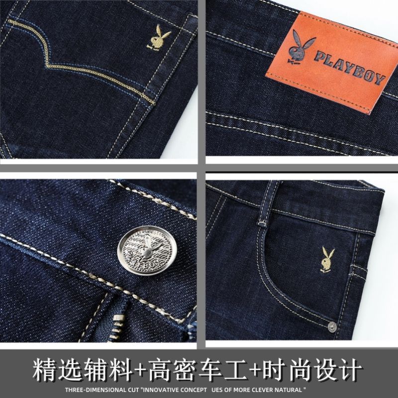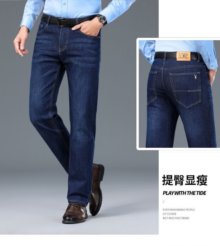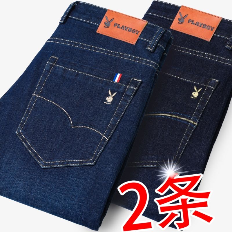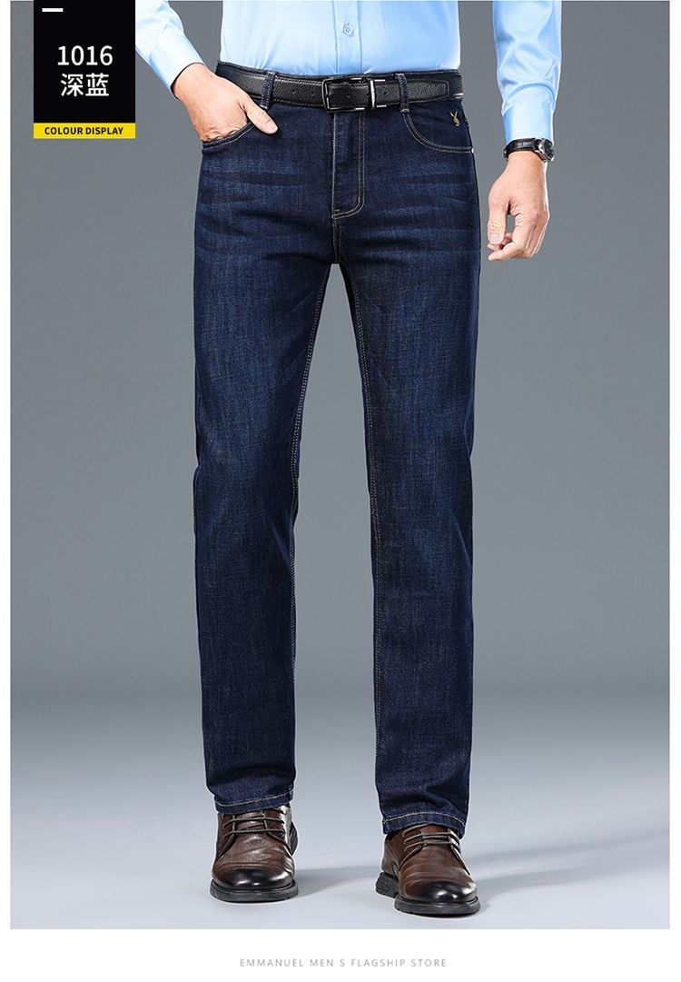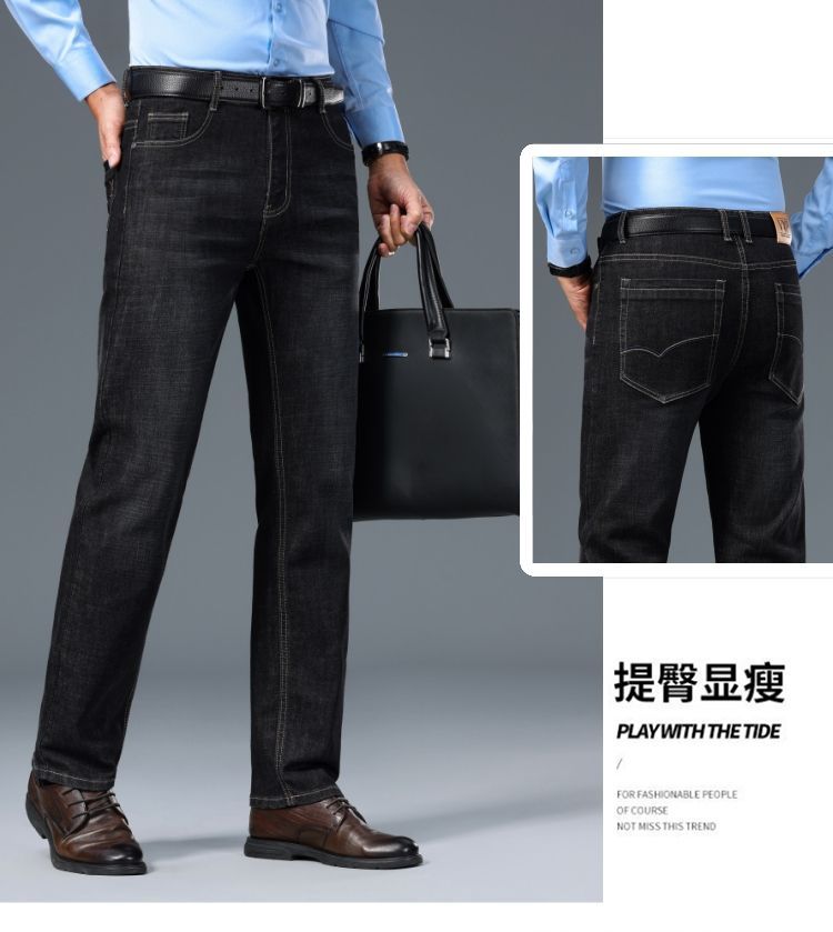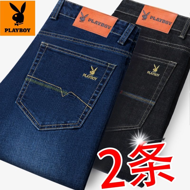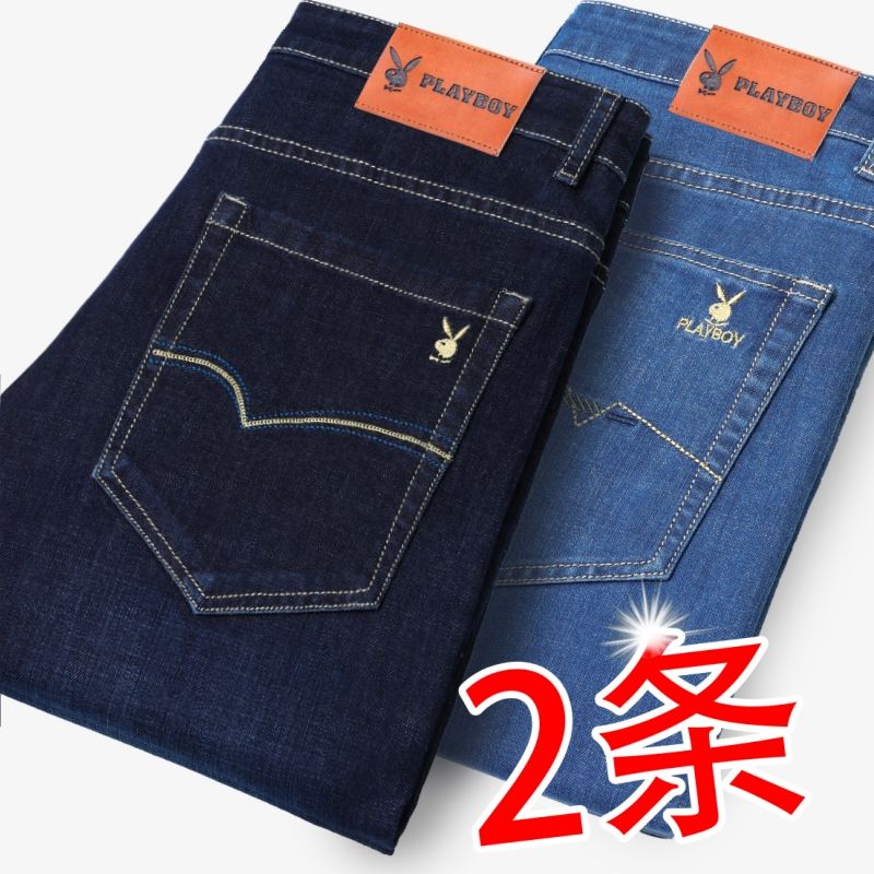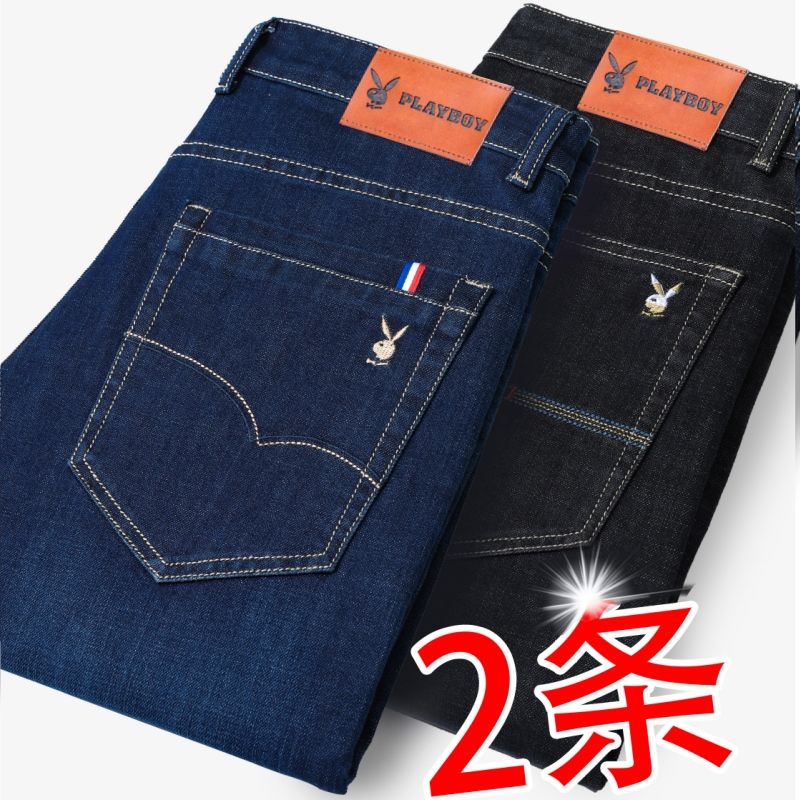 花花公子男士牛仔秋冬厚款宽松直筒弹力高腰中青年大码男加绒裤子