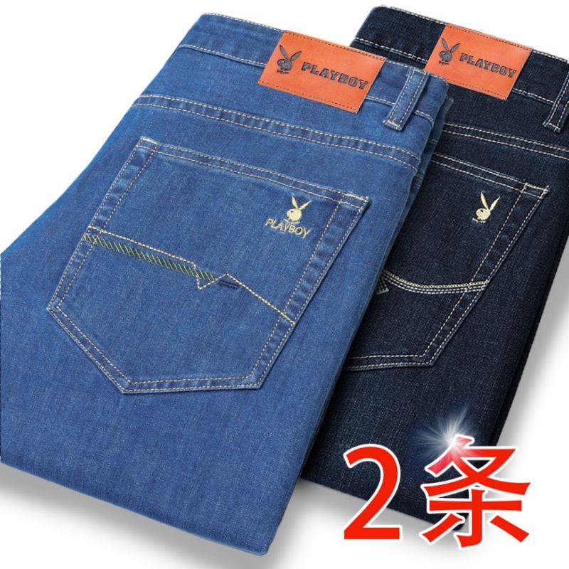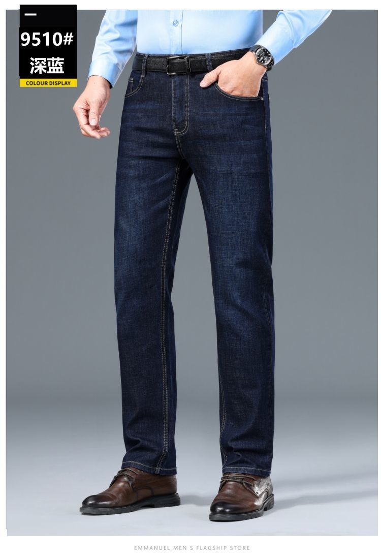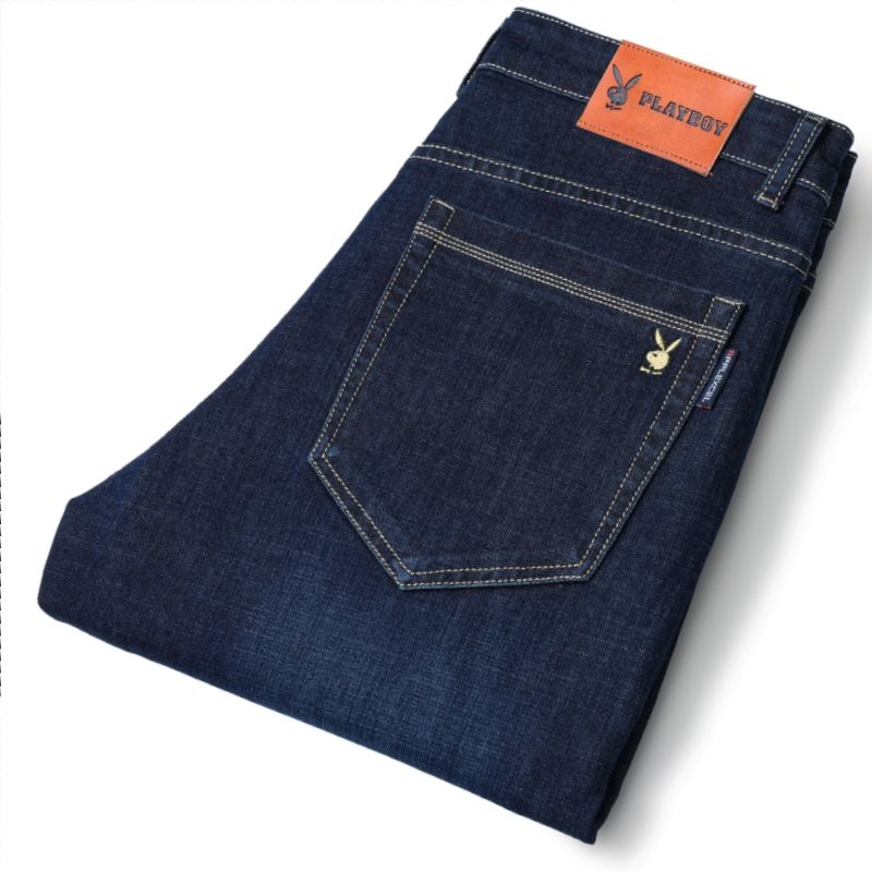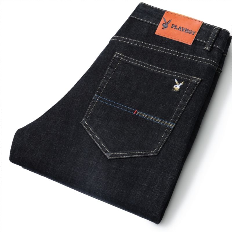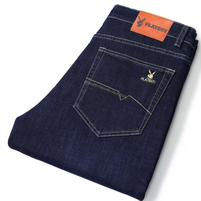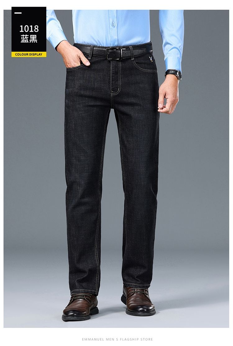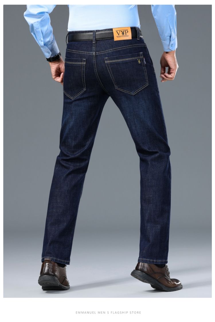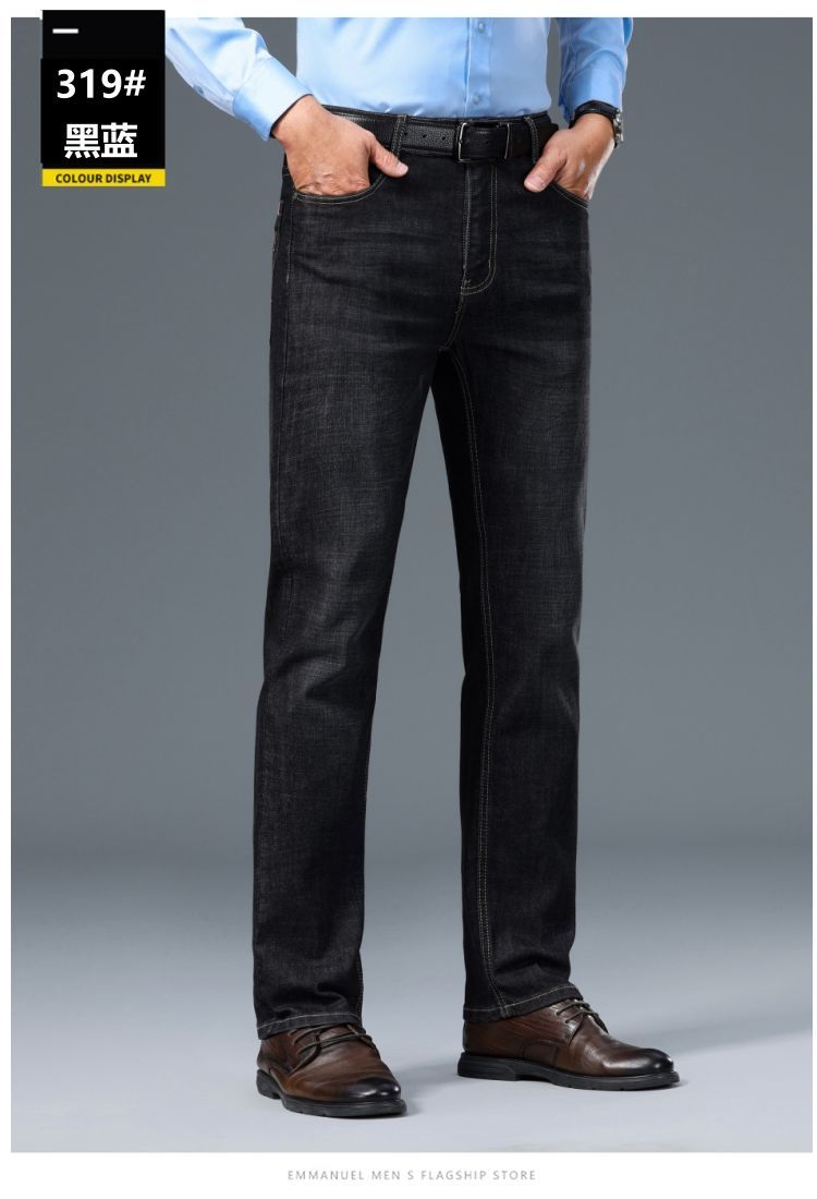 花花公子男士牛仔秋冬厚款宽松直筒弹力高腰中青年大码男加绒裤子
