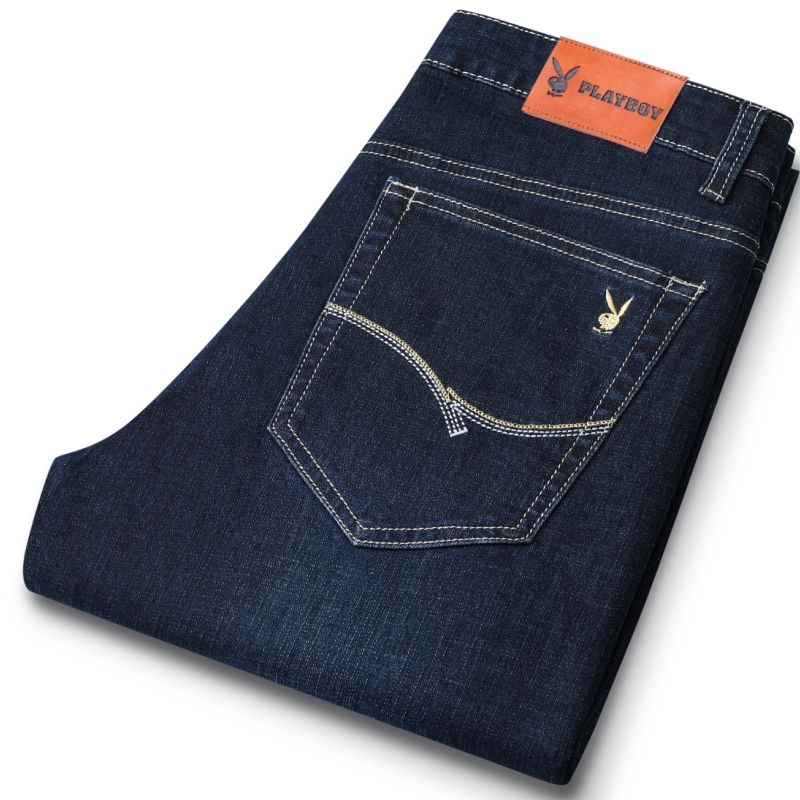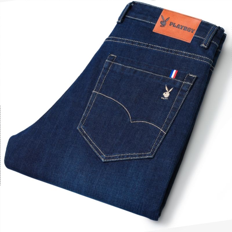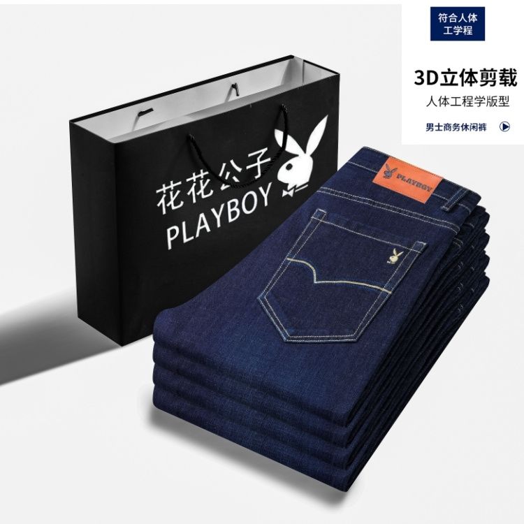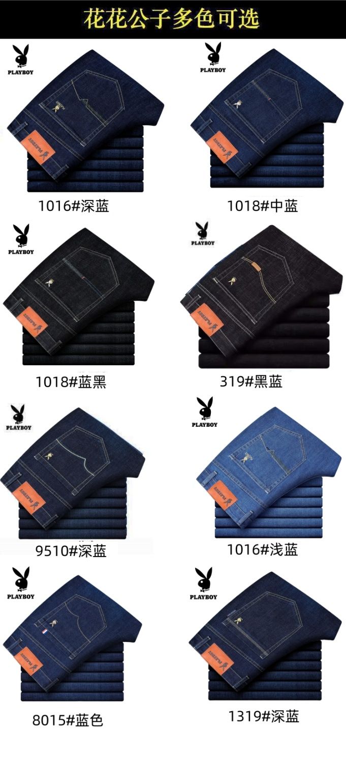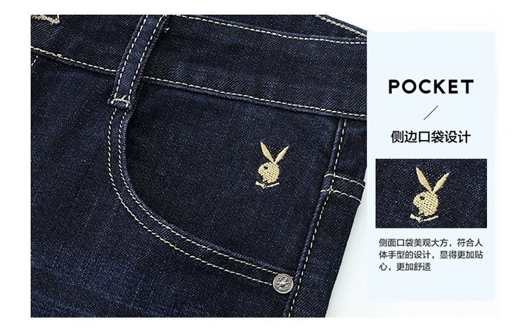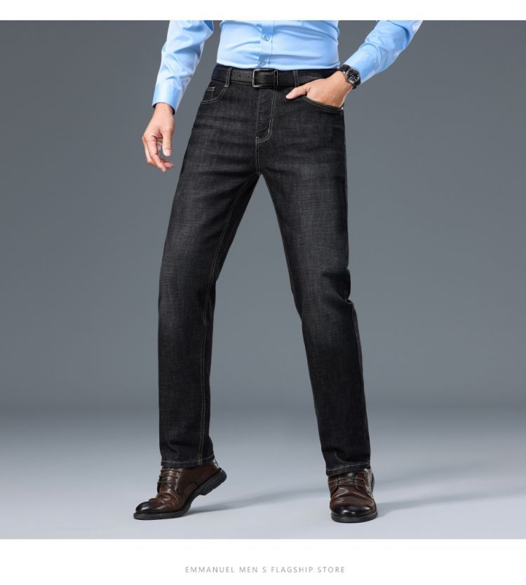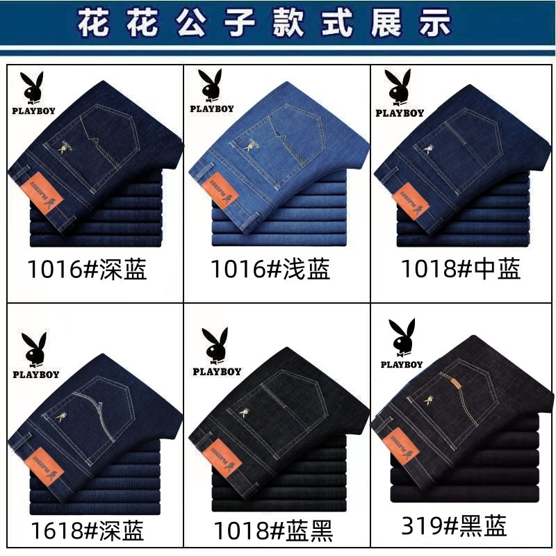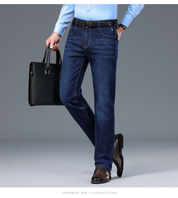 花花公子男士牛仔秋冬厚款宽松直筒弹力高腰中青年大码男加绒裤子