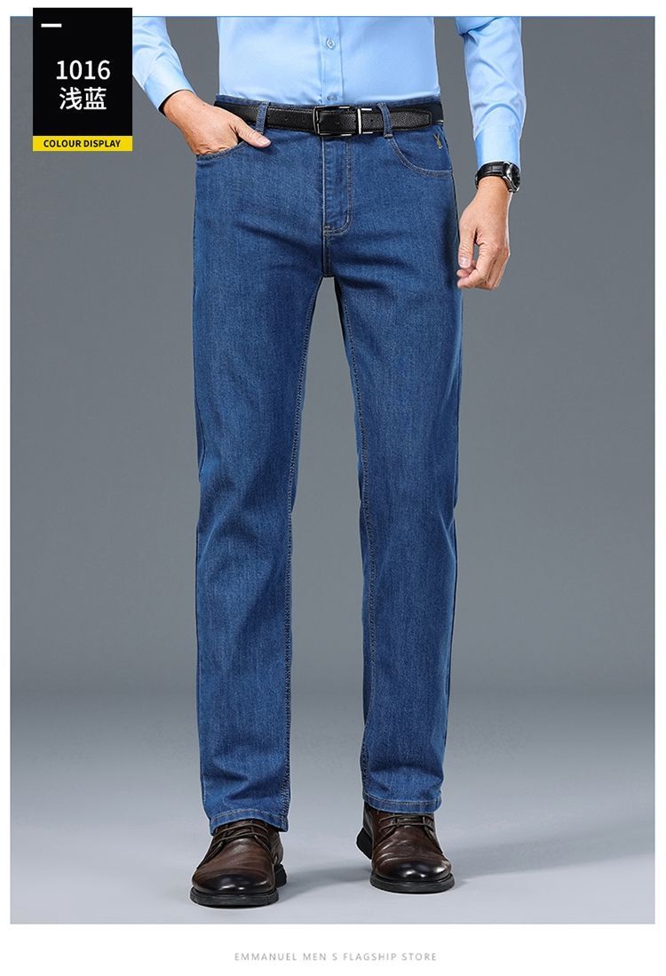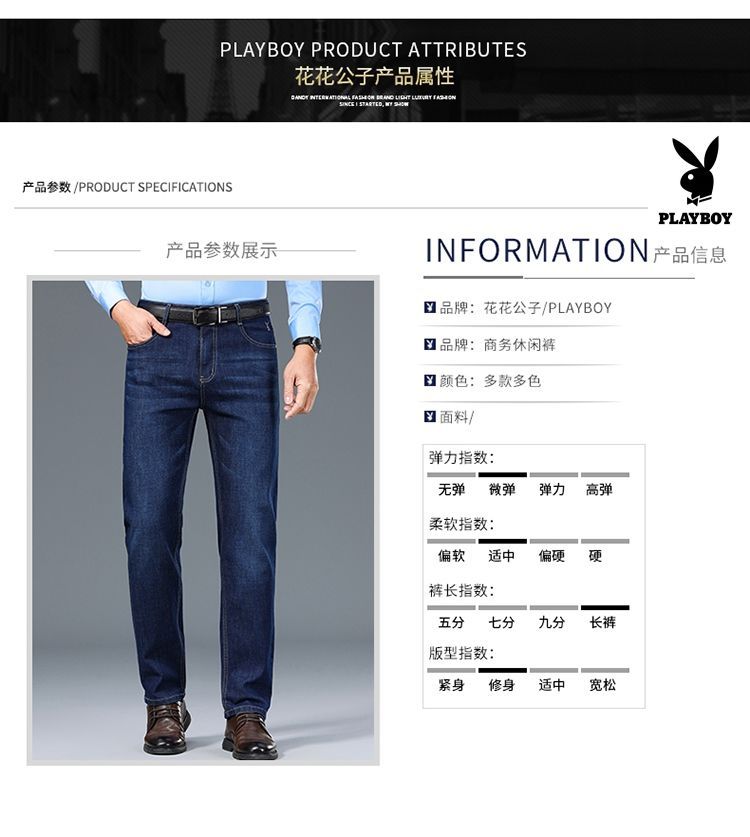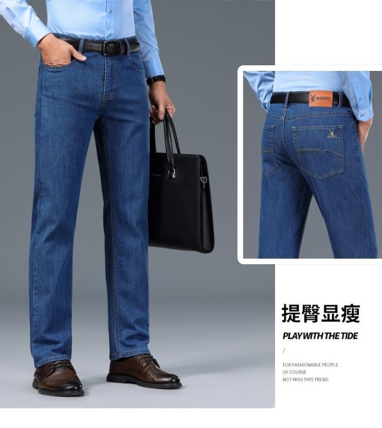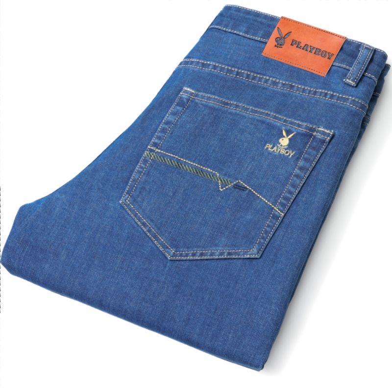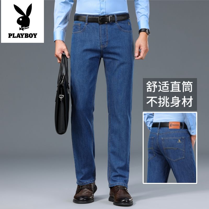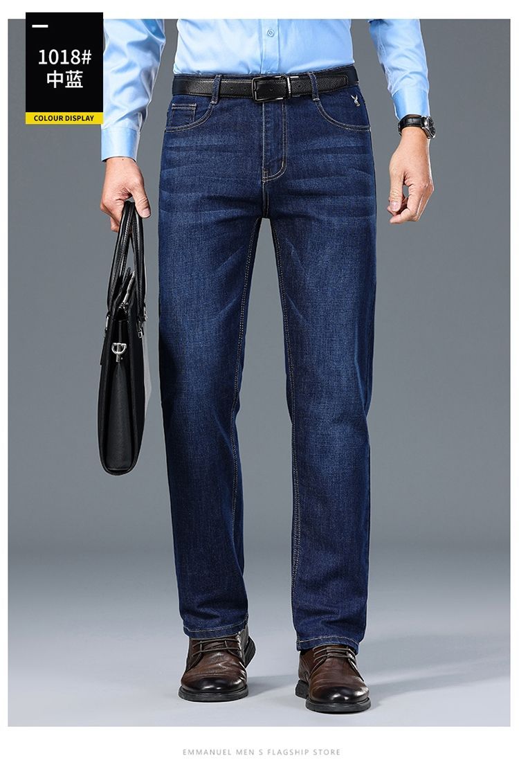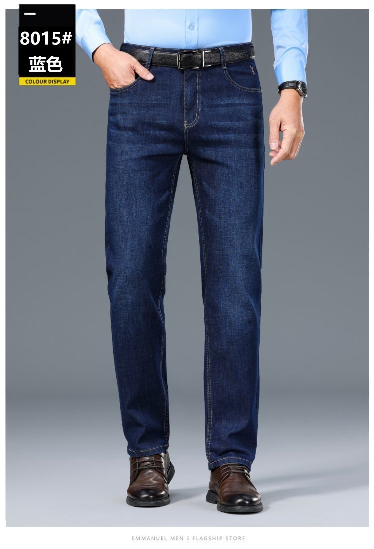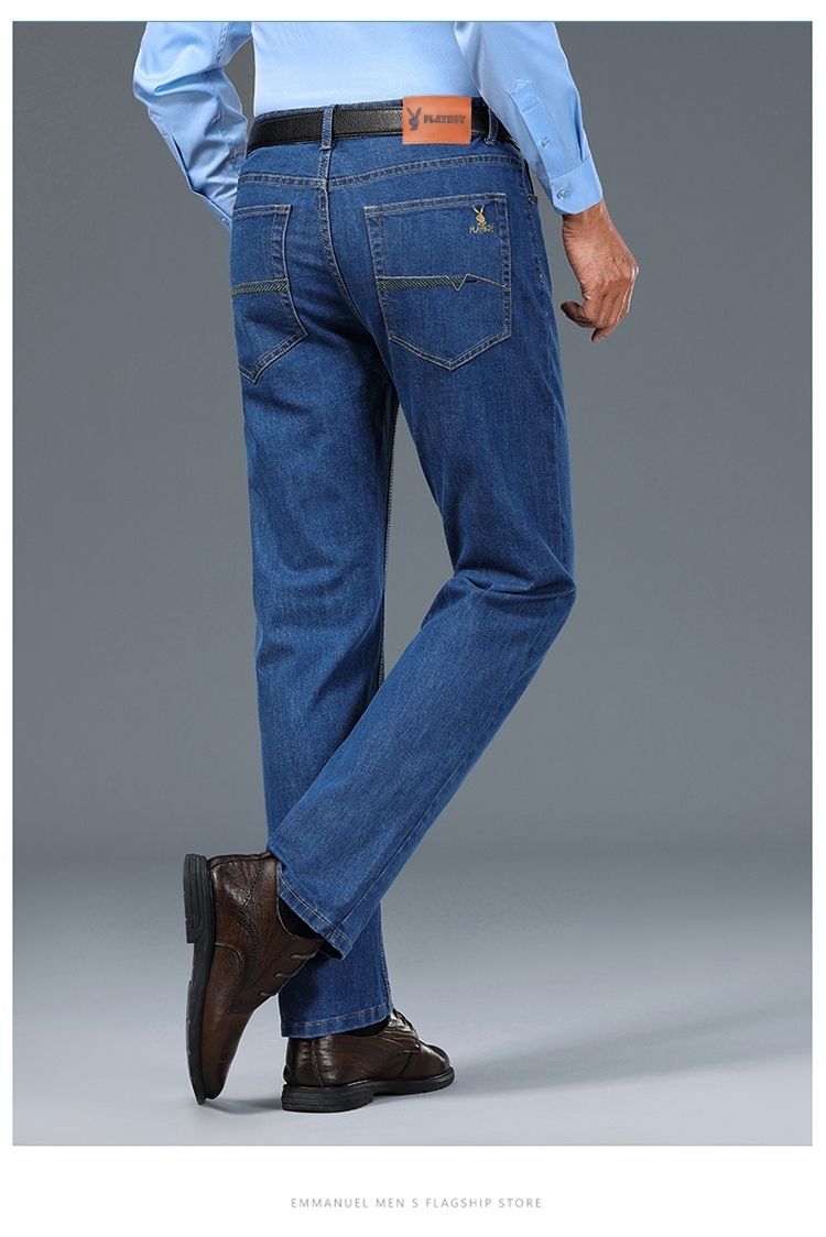 花花公子男士牛仔秋冬厚款宽松直筒弹力高腰中青年大码男加绒裤子