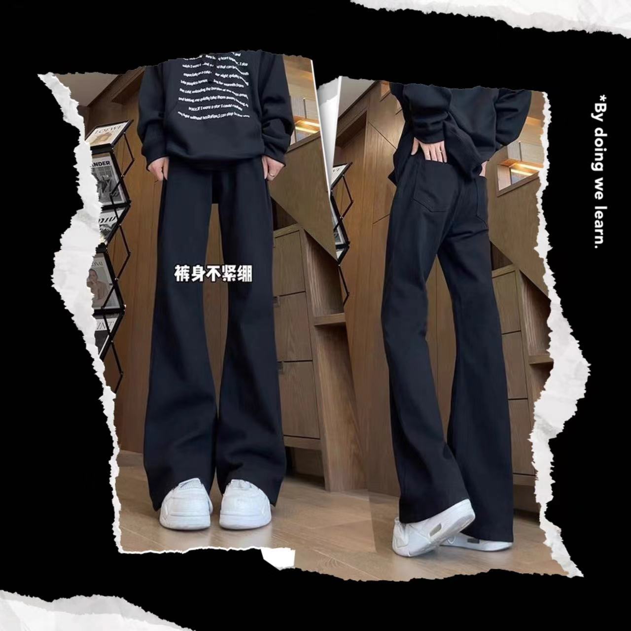 黑色弯刀微喇牛仔裤美式vibe裤子高个子显瘦微喇裤