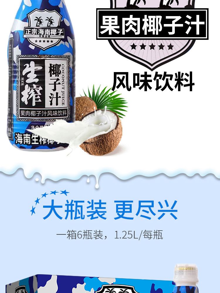 【年货搭档】海南正宗生榨椰子汁1.25L整箱6大瓶椰奶婚宴酒席必备
