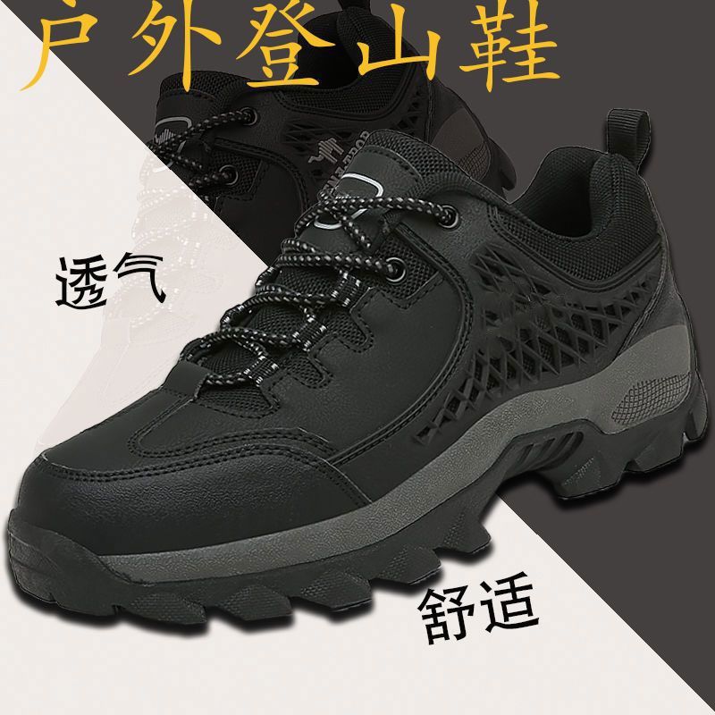 登山鞋男防滑耐脏耐磨厚底户外透气徒步鞋轻便软底爸爸鞋春夏新款