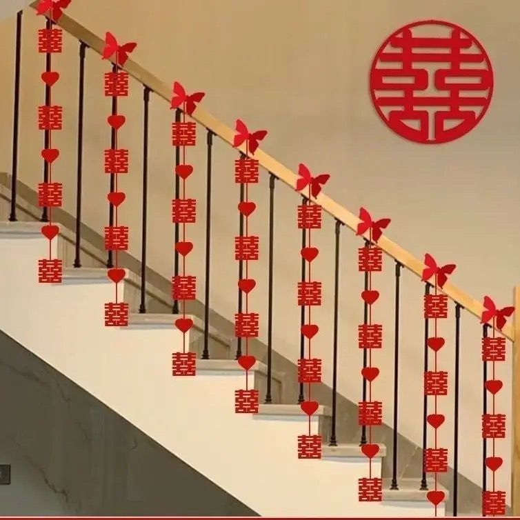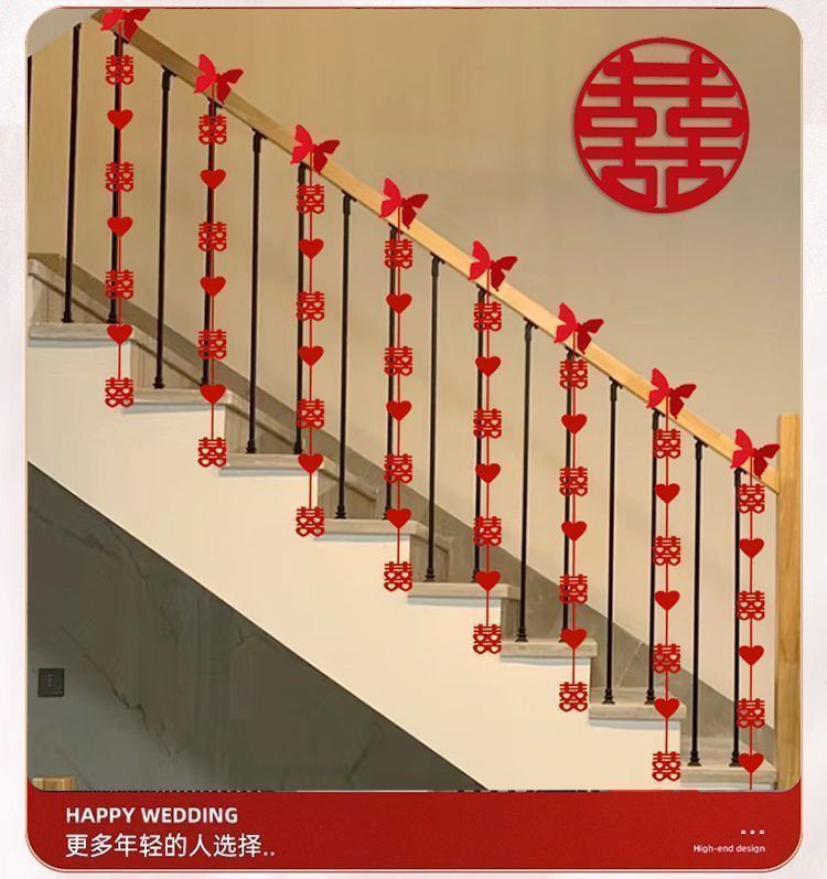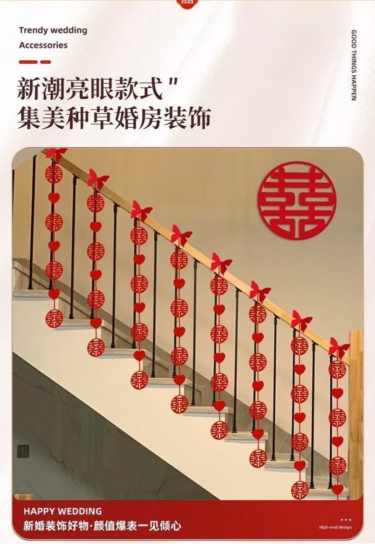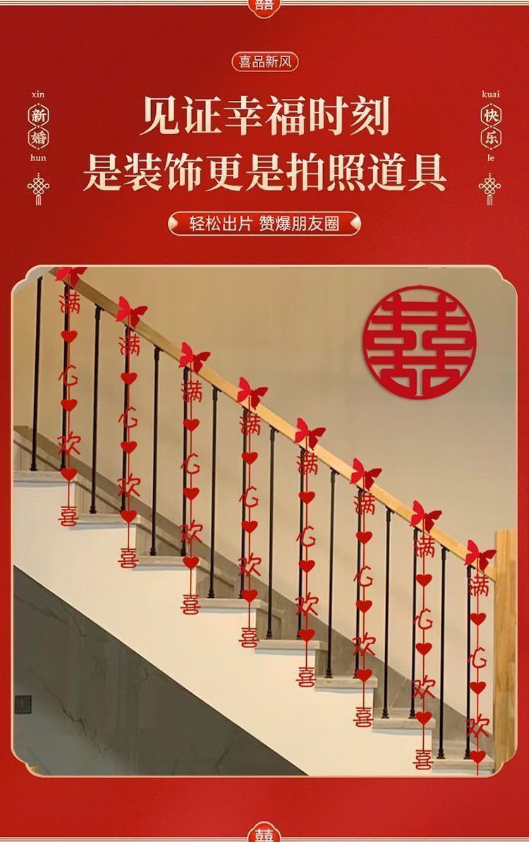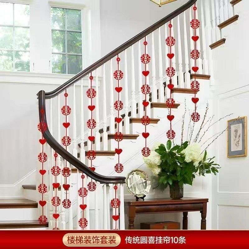 结婚楼梯扶手装饰婚礼彩带拉花婚庆用品气球喜字拉花套装婚房布置