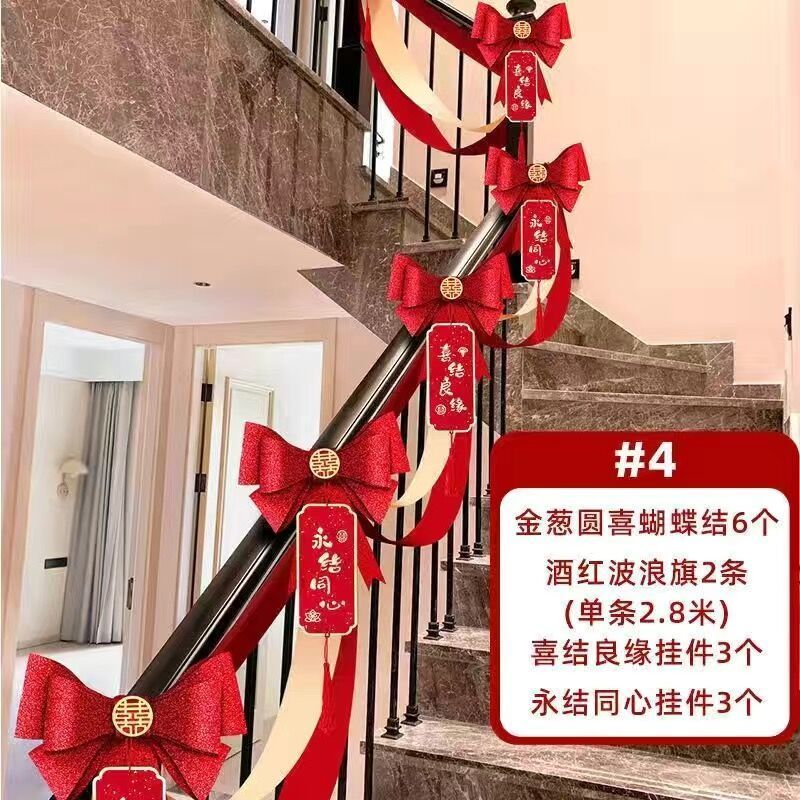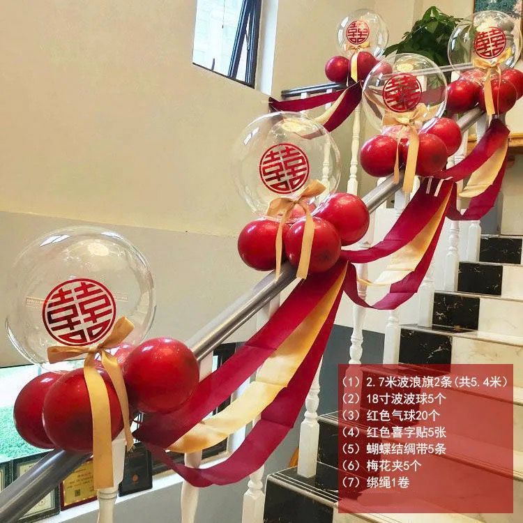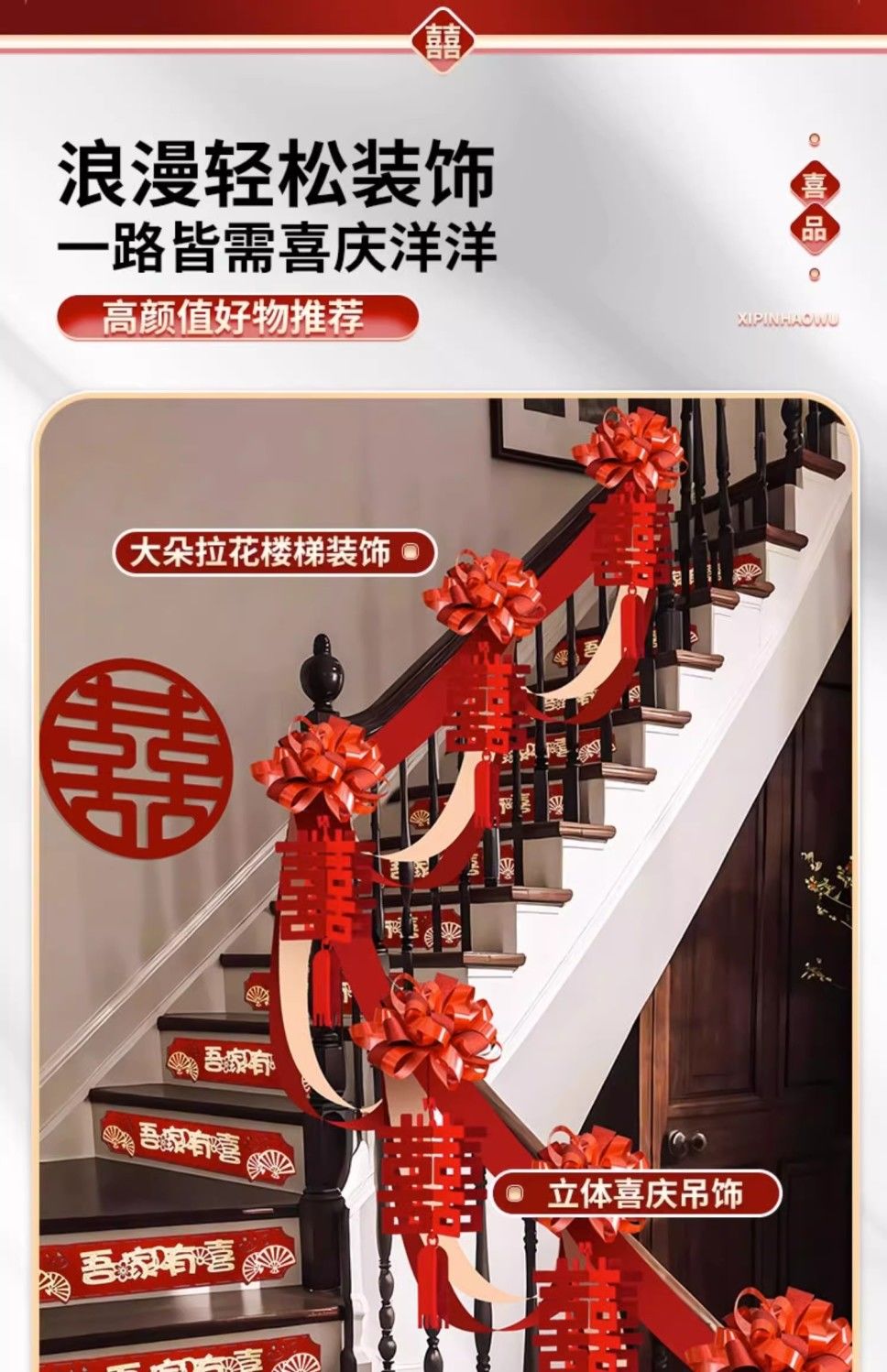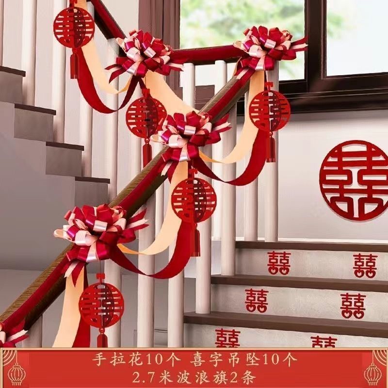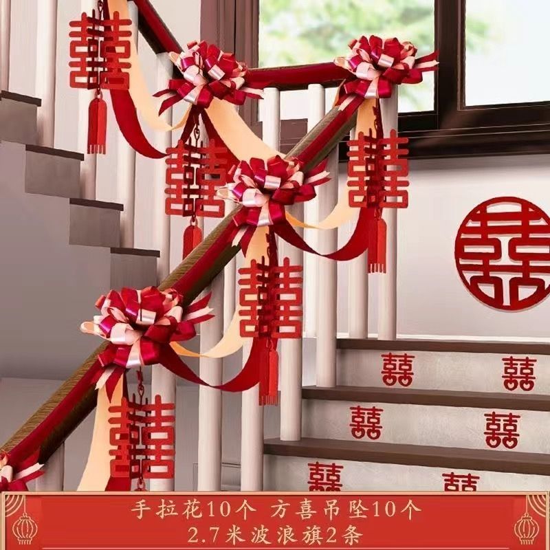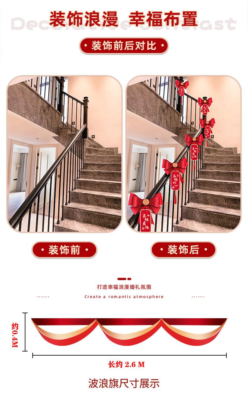 结婚楼梯拉花彩带套餐 婚房客厅扶手栏杆波浪旗气球婚房装饰布置