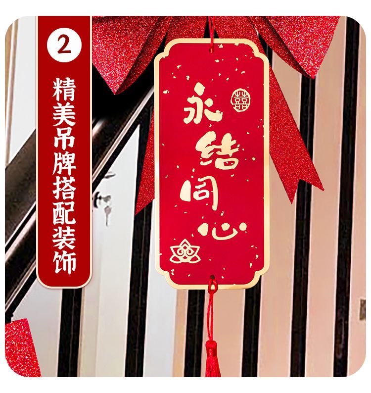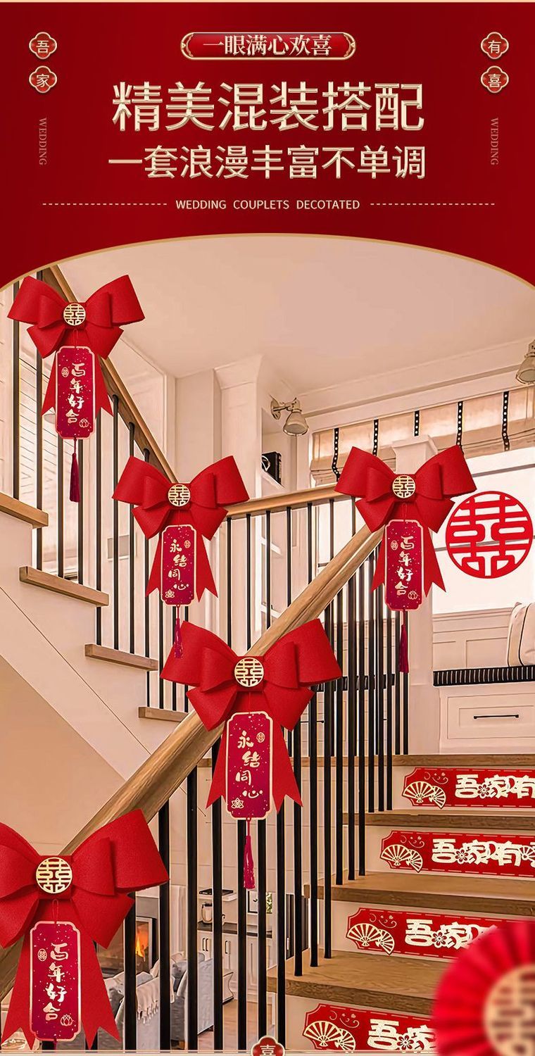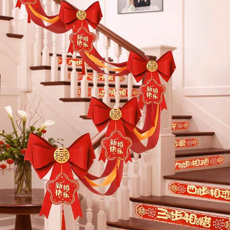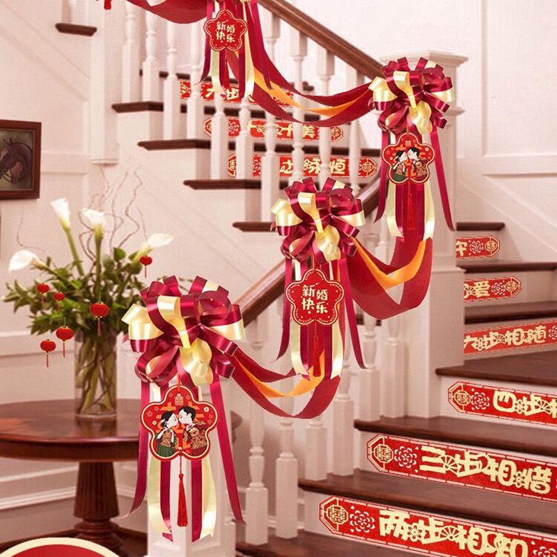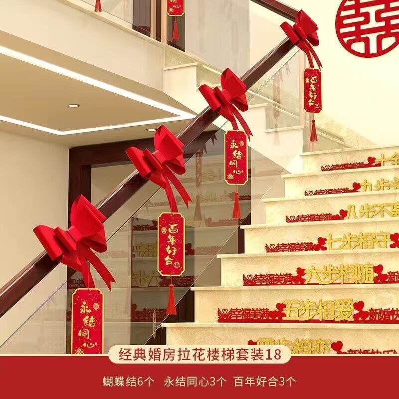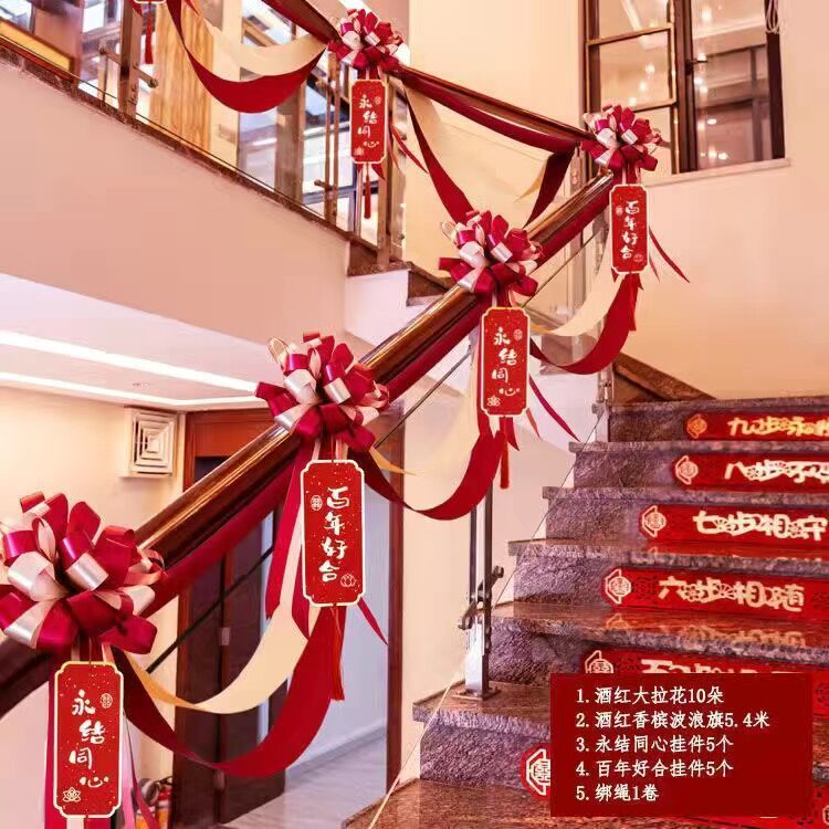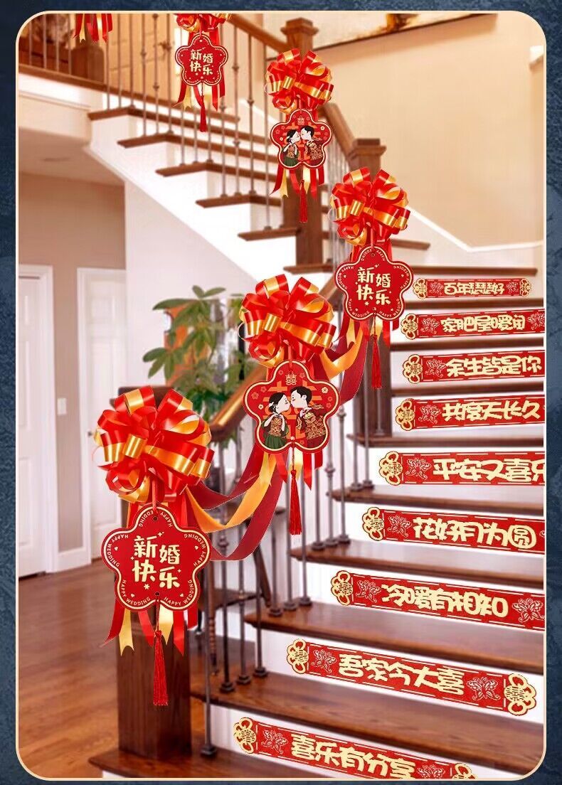 结婚楼梯拉花彩带套餐 婚房客厅扶手栏杆波浪旗气球婚房装饰布置