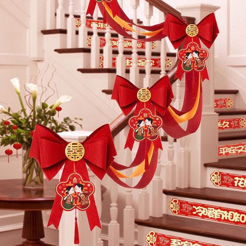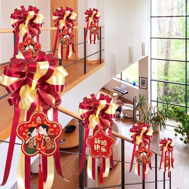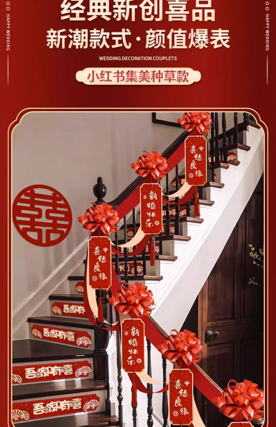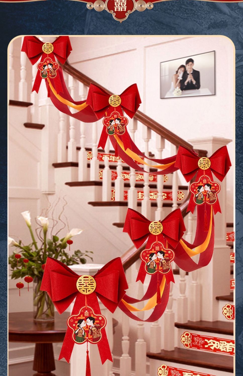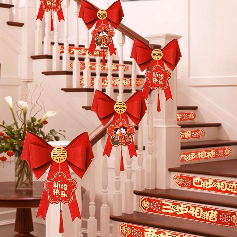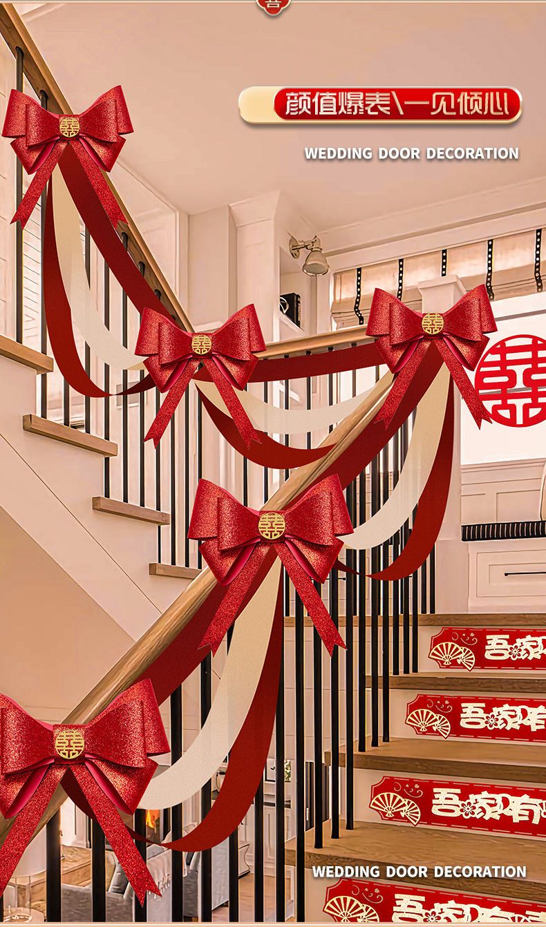 结婚楼梯拉花彩带套餐 婚房客厅扶手栏杆波浪旗气球婚房装饰布置