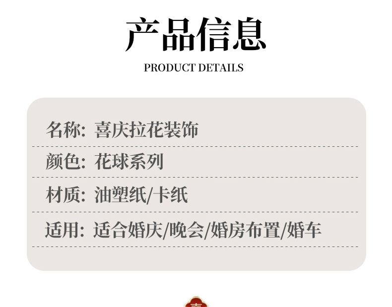 | 5.4 meter wave +10 flowers + wedding 5 happy knot 5(5.4米波+花10朵+新婚5喜结5) | USD $4.36 | 999999 piece available |