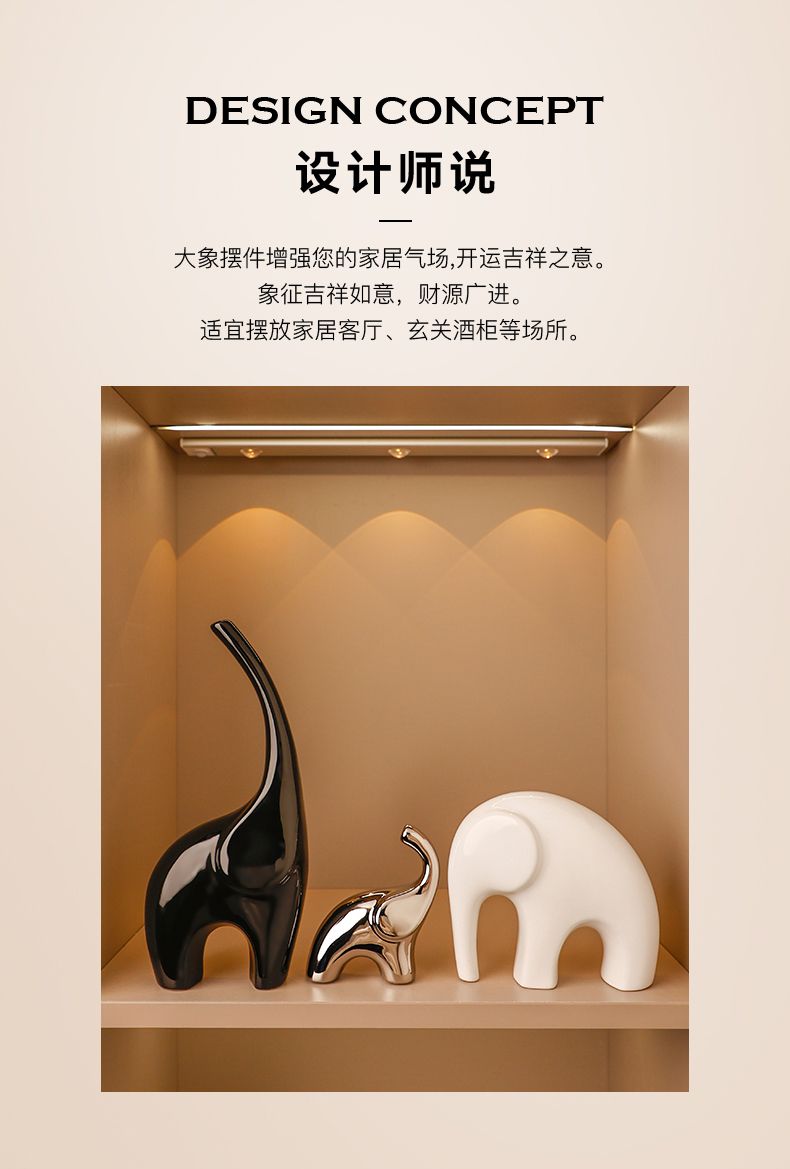 大象摆件轻奢高档家居电视柜酒柜装饰工艺品客厅现代办公室高级感