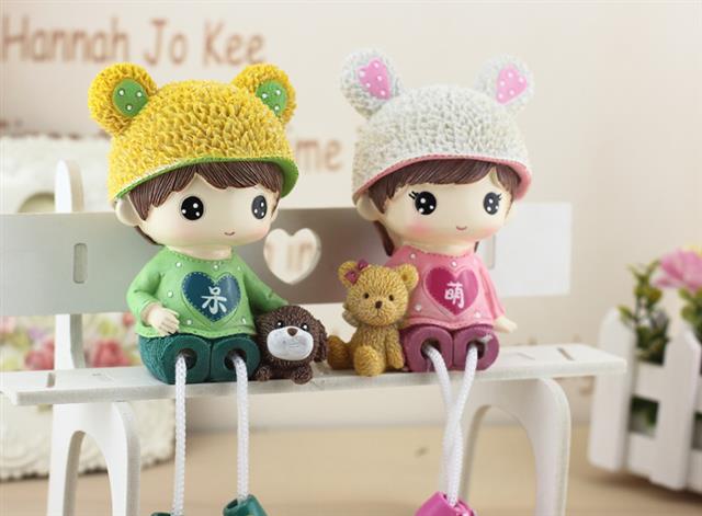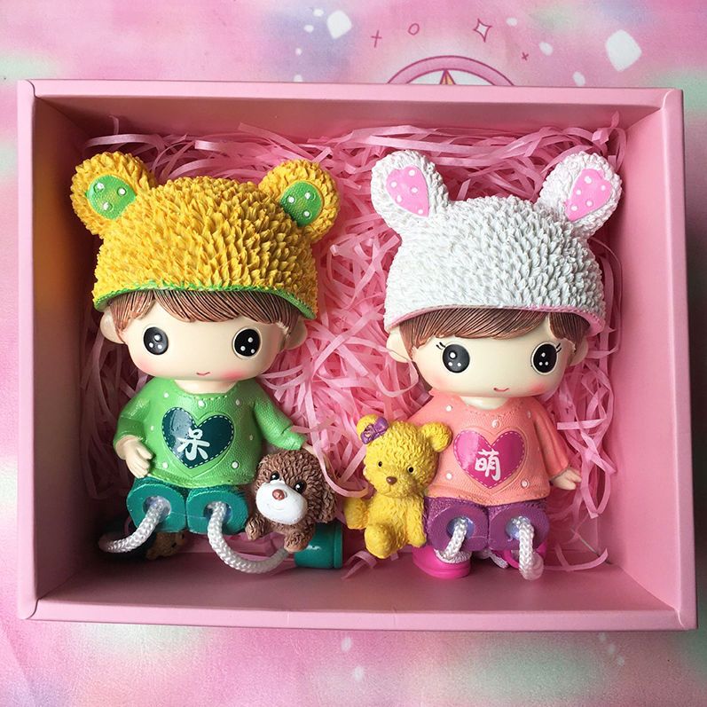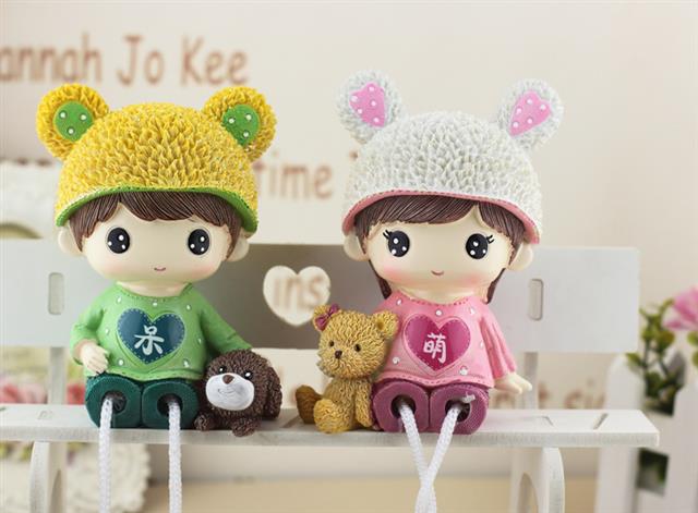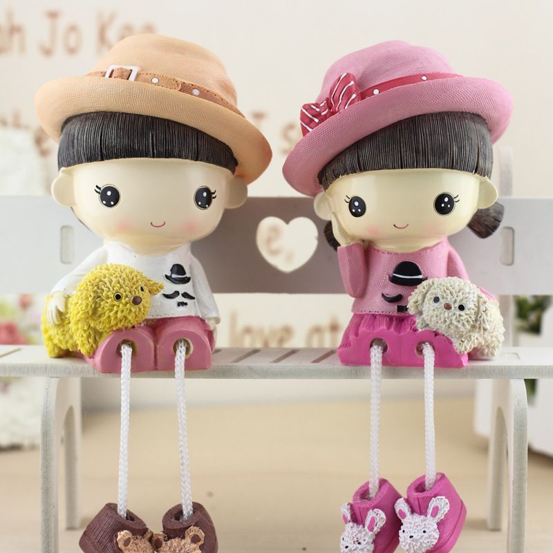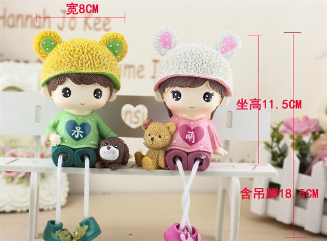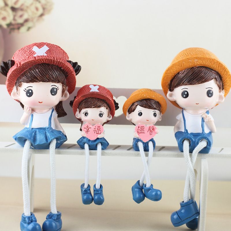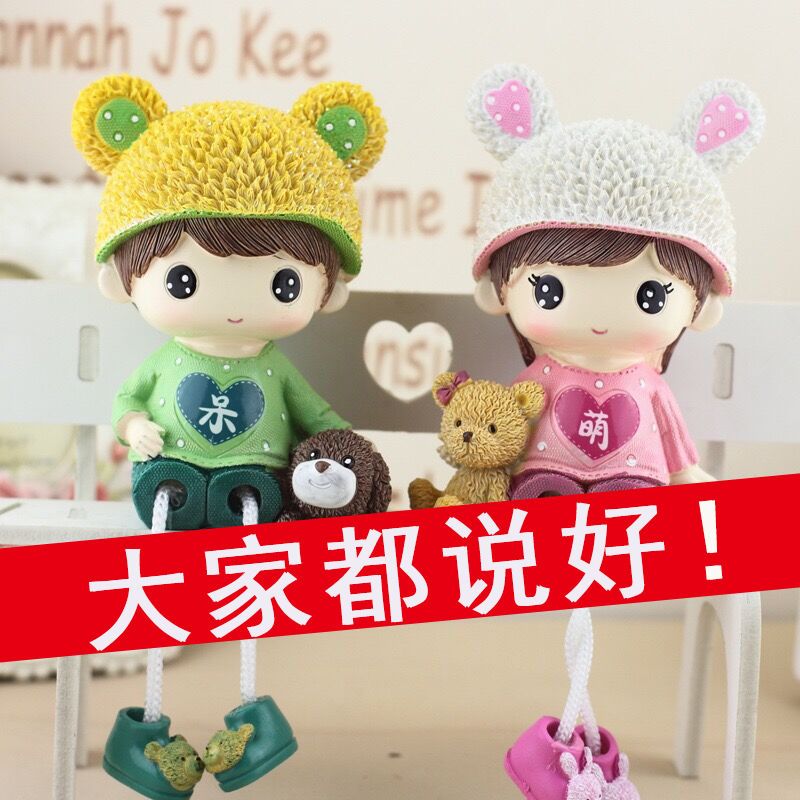 新年礼物网红家居桌面小摆件客厅酒柜房间装饰呆萌情侣吊脚娃娃
