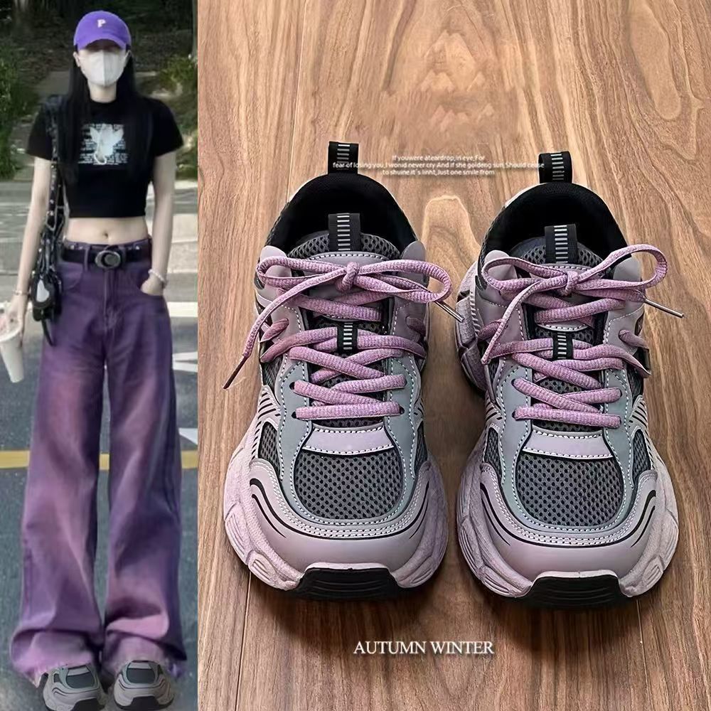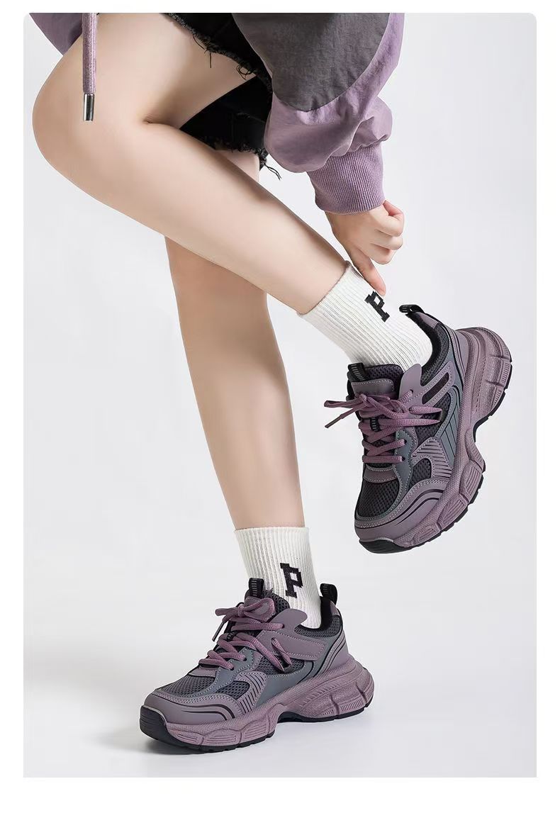 SHESRIM冬季新款运动休闲鞋百搭橡胶女鞋低帮学生老爹鞋厚底防滑