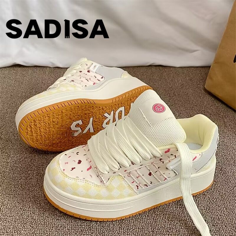 SADISA可爱厚底增高面包鞋ins学院风小个子女鞋2024新款休闲板鞋