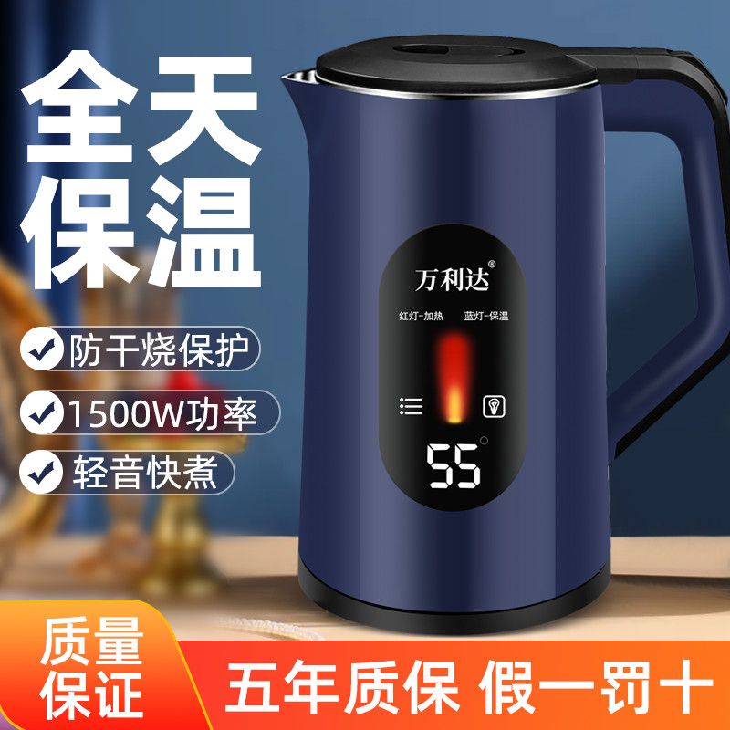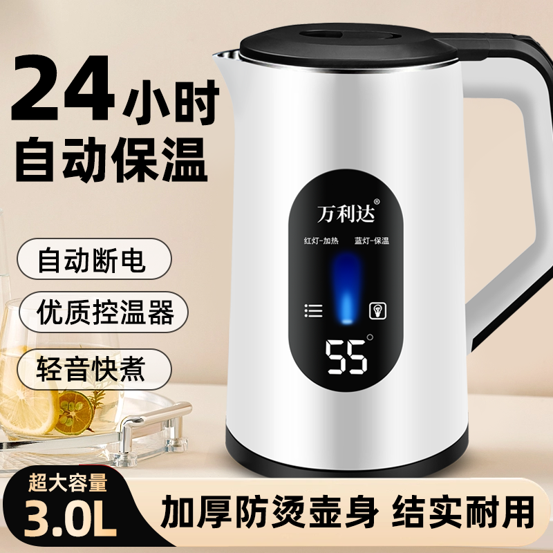 万利达电热水壶烧水壶家用耐用加长线双层保温3升大容量电水壶【2