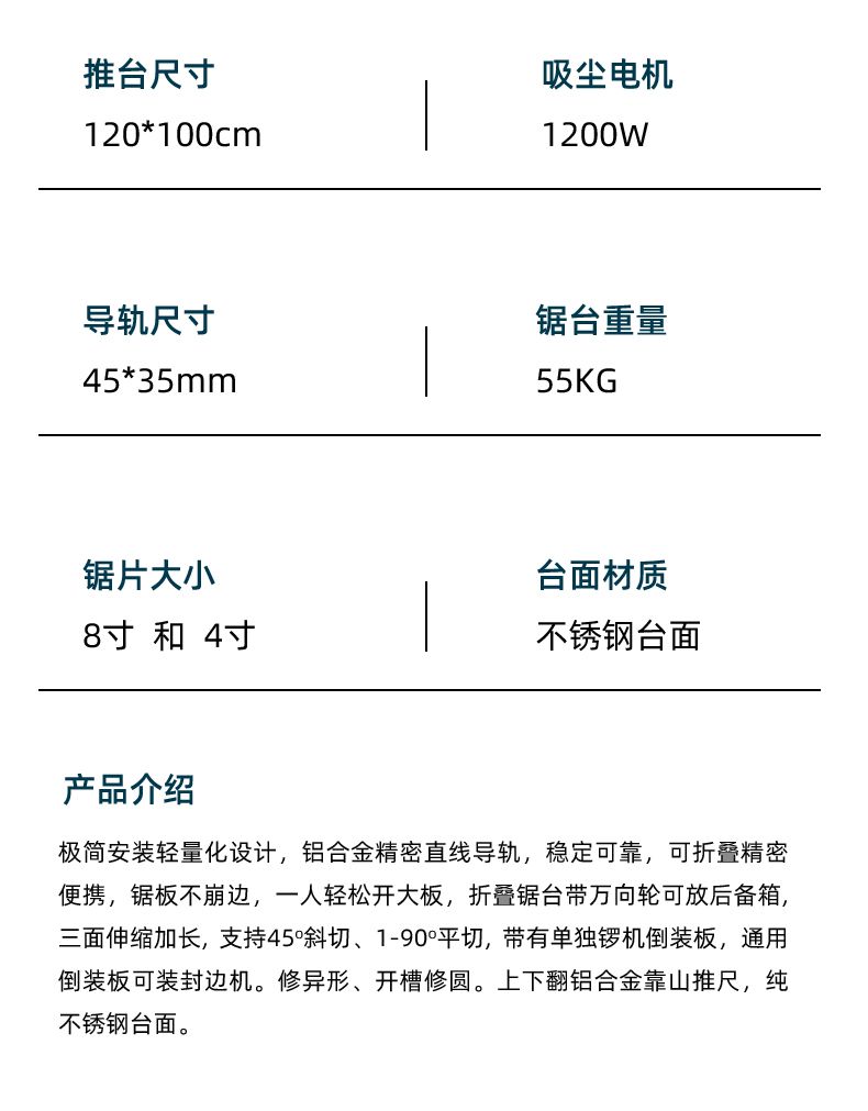 | widened table precision double invisible square rail + brushless mother saw(加宽台面精密双隐形方轨+无刷子母锯) | USD $595.1 | 999999 piece available |