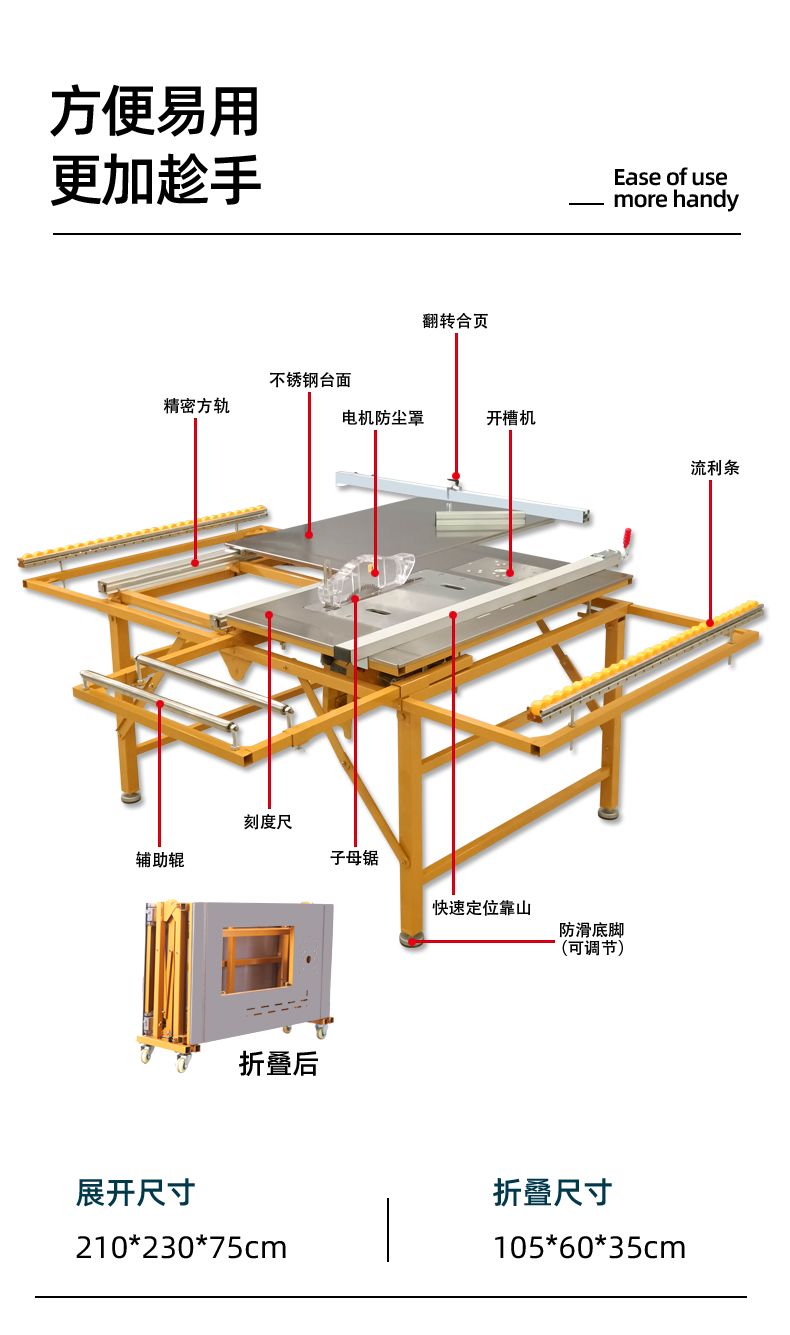 北宸木工推台锯精密无尘子母锯推拉锯多功能家装不锈钢折叠工作台
