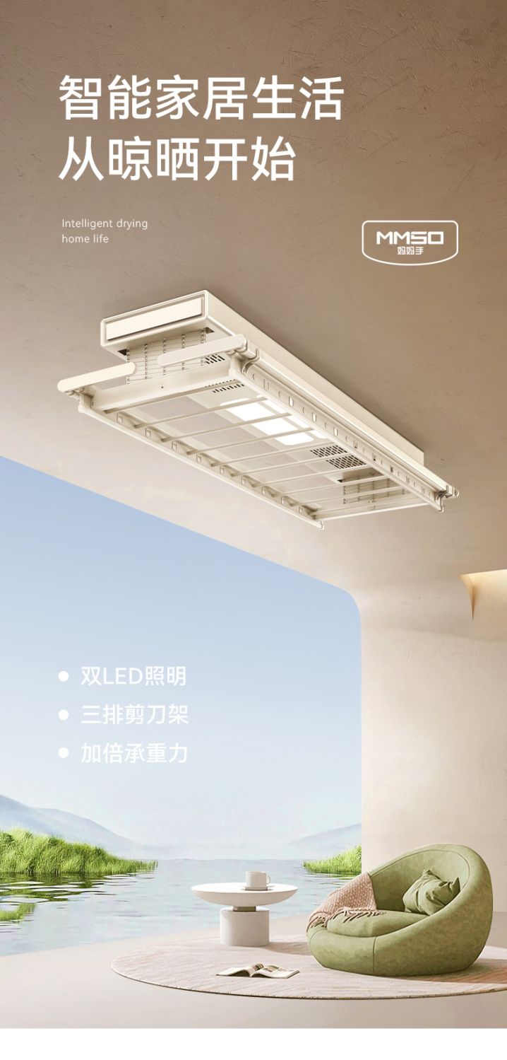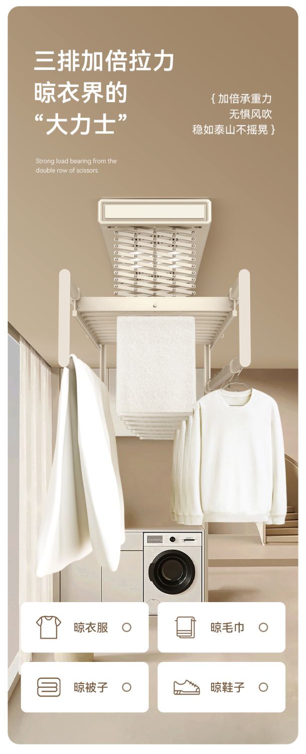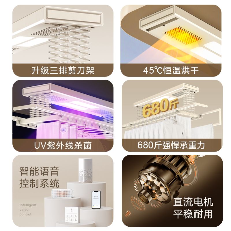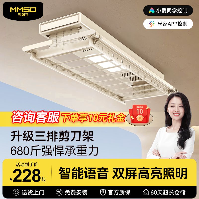 妈妈手智能电动晾衣架语音遥控自动升降家用阳台烘干三剪刀晒衣杆