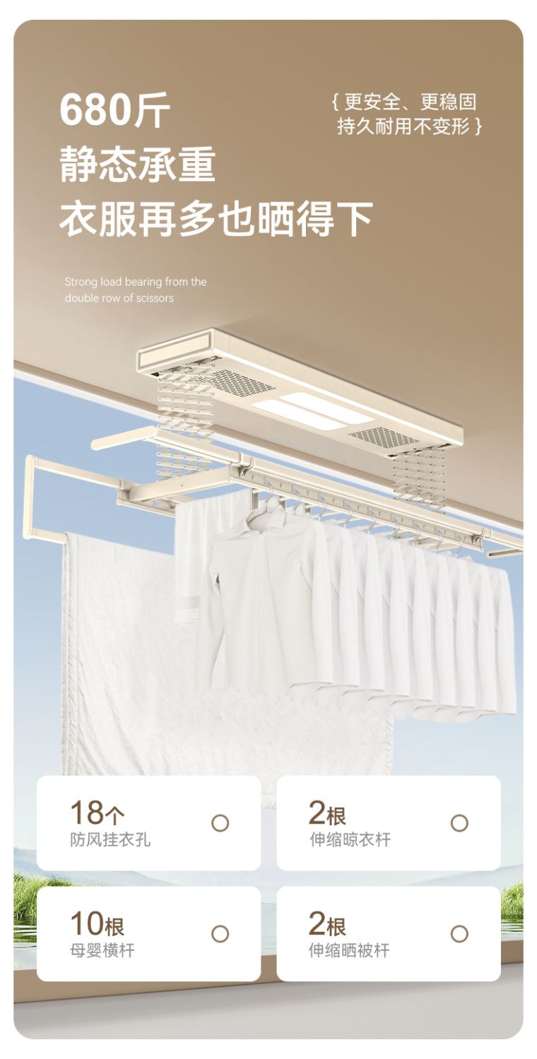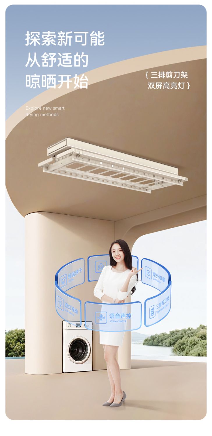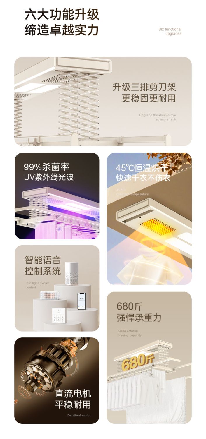 妈妈手智能电动晾衣架语音遥控自动升降家用阳台烘干三剪刀晒衣杆