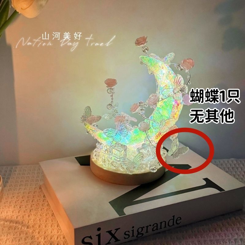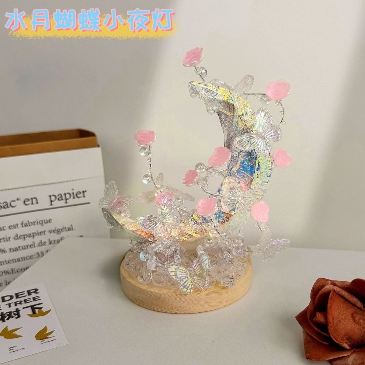 水月蝴蝶小夜灯手工diy材料幻彩送女友 闺蜜情侣创意设计生日礼物