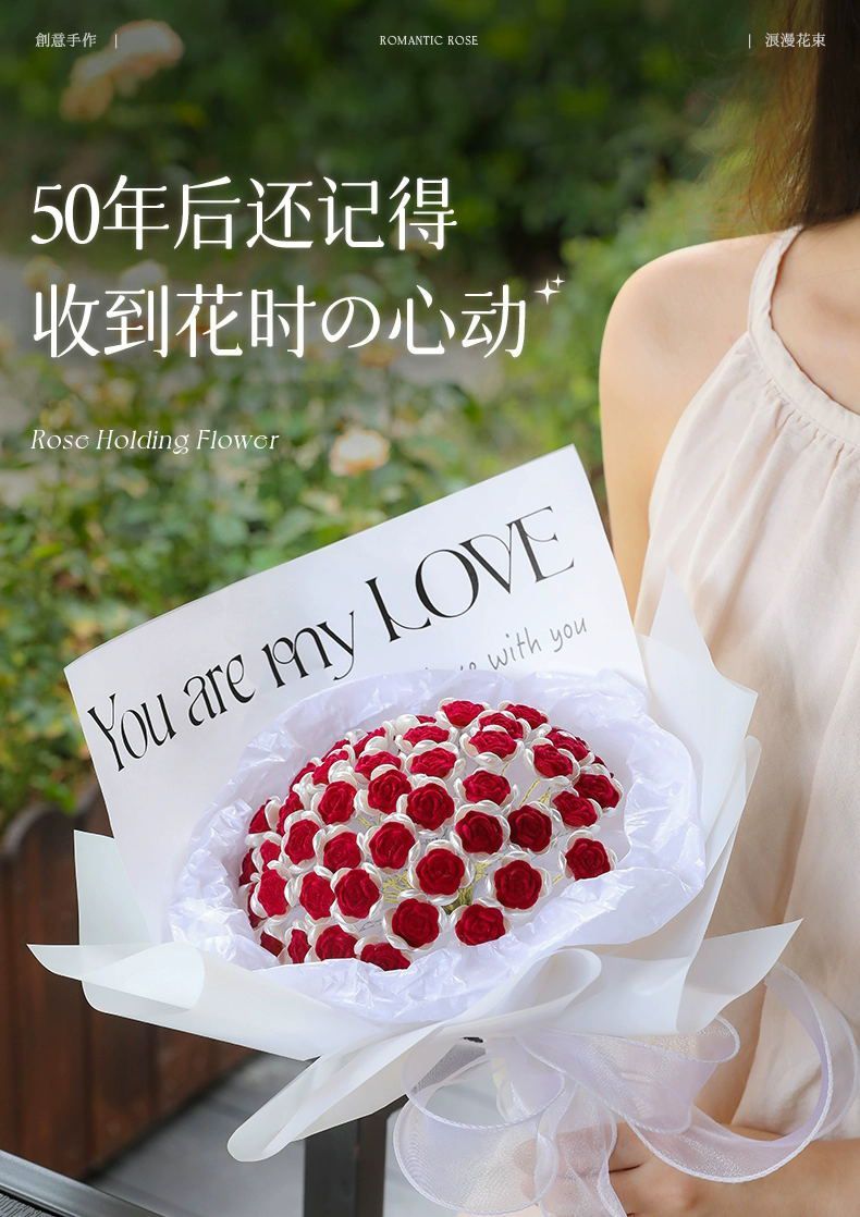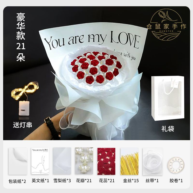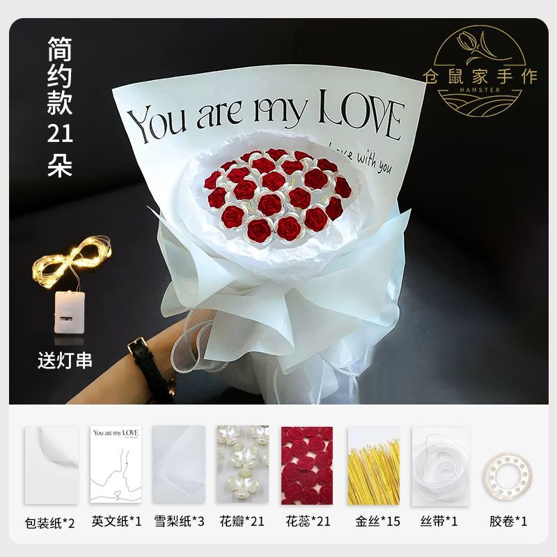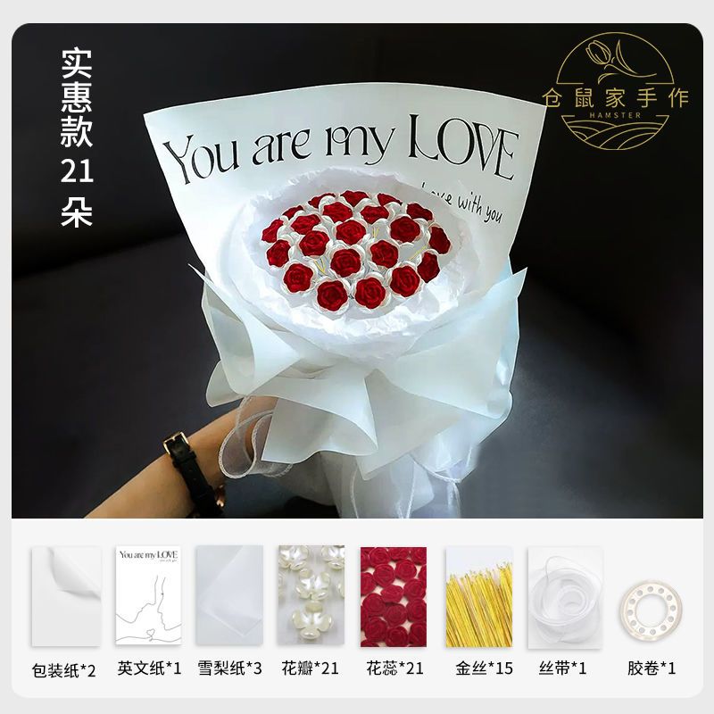 玫瑰仿真永生花手工DIY花束手捧花材料生日情人节送女生闺蜜礼品
